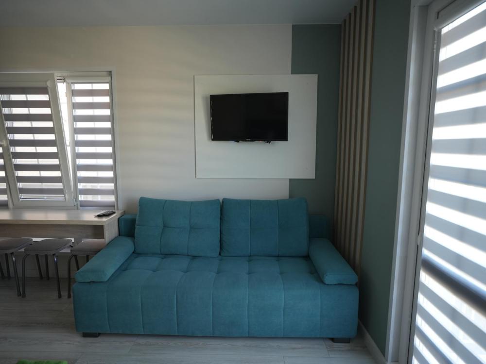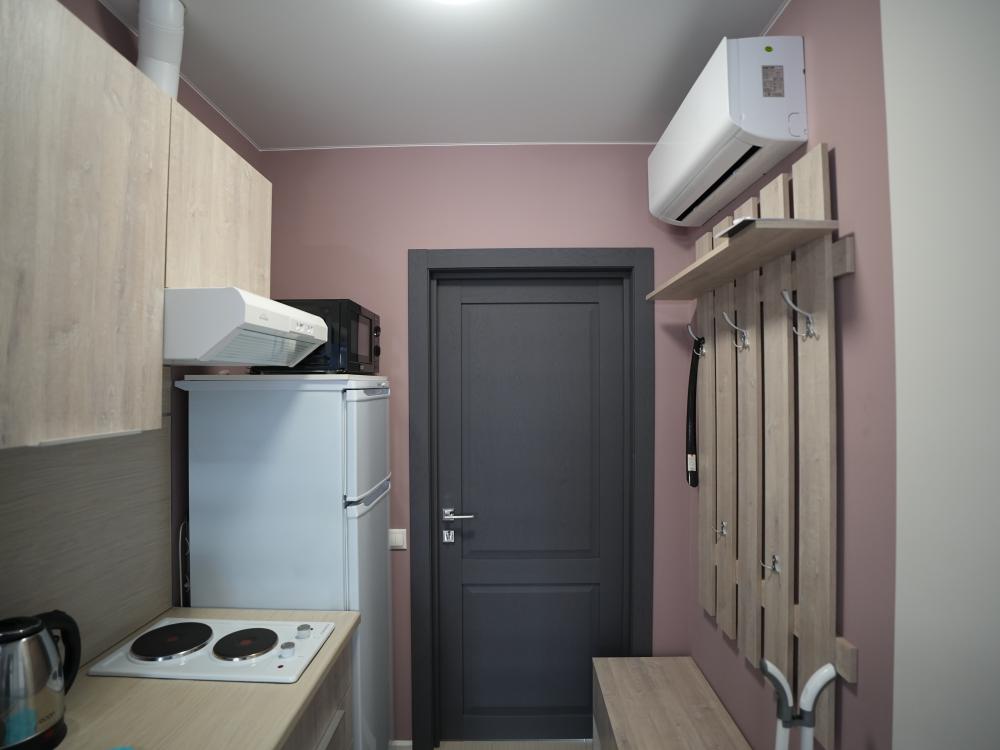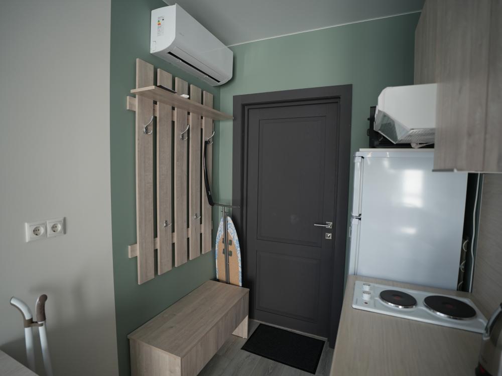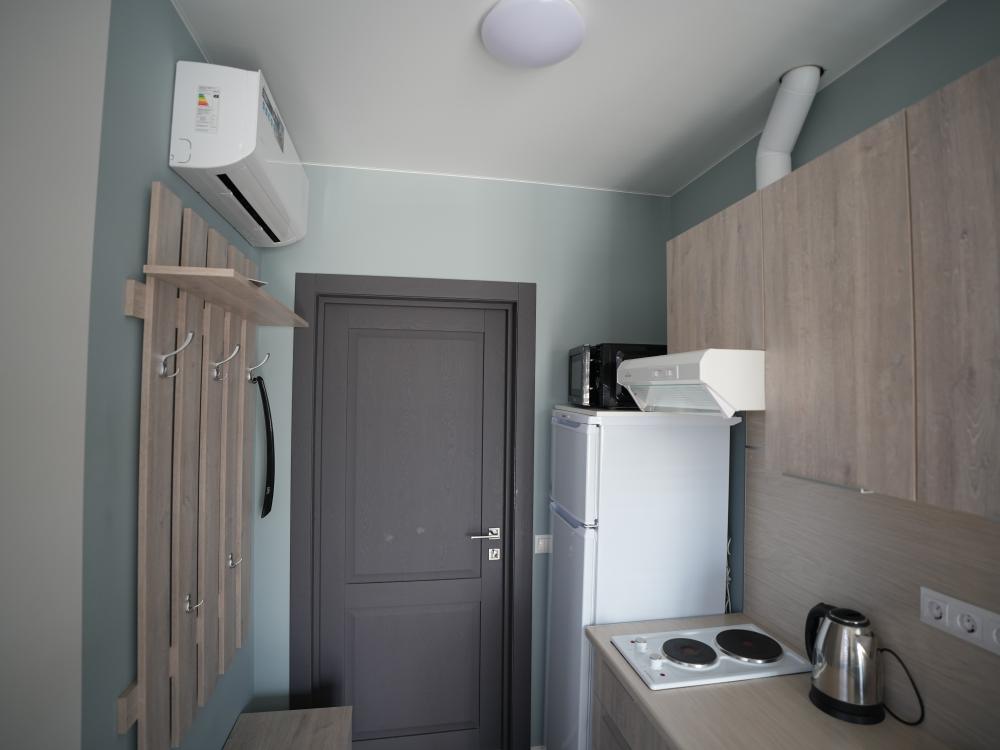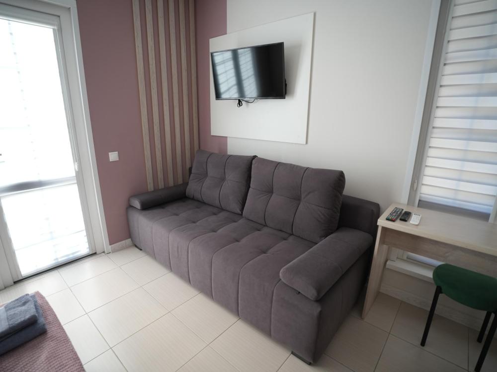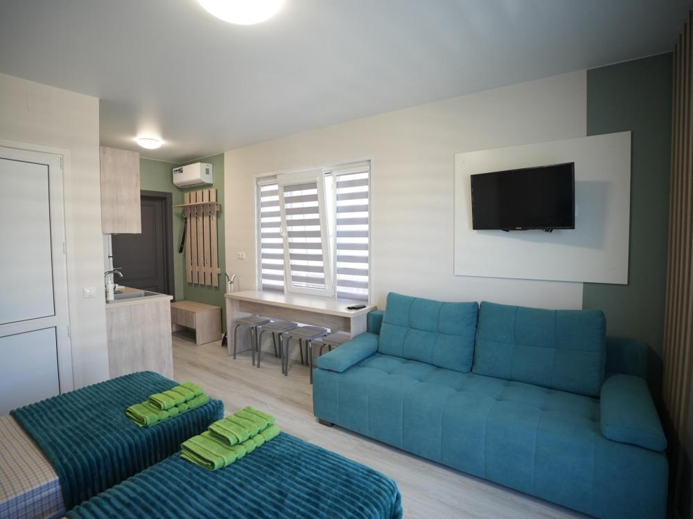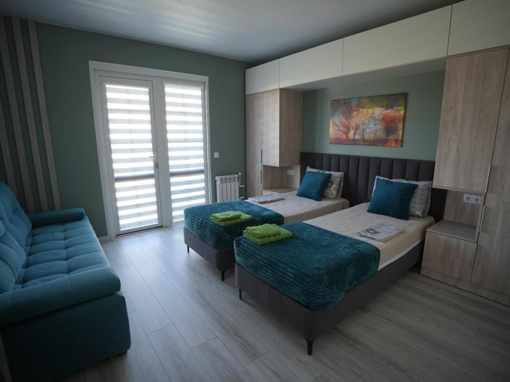 Данный номер находится на первом этаже. Новая мебель, диваны, кровати, кондиционер, ортопедические матрасы, свежее постельное белье, полотенца, утюг, фен, бесплатный Wi-Fi, телевизор, микроволновая печь, холодильник. В каждом гостевом номере есть мини-кухня.