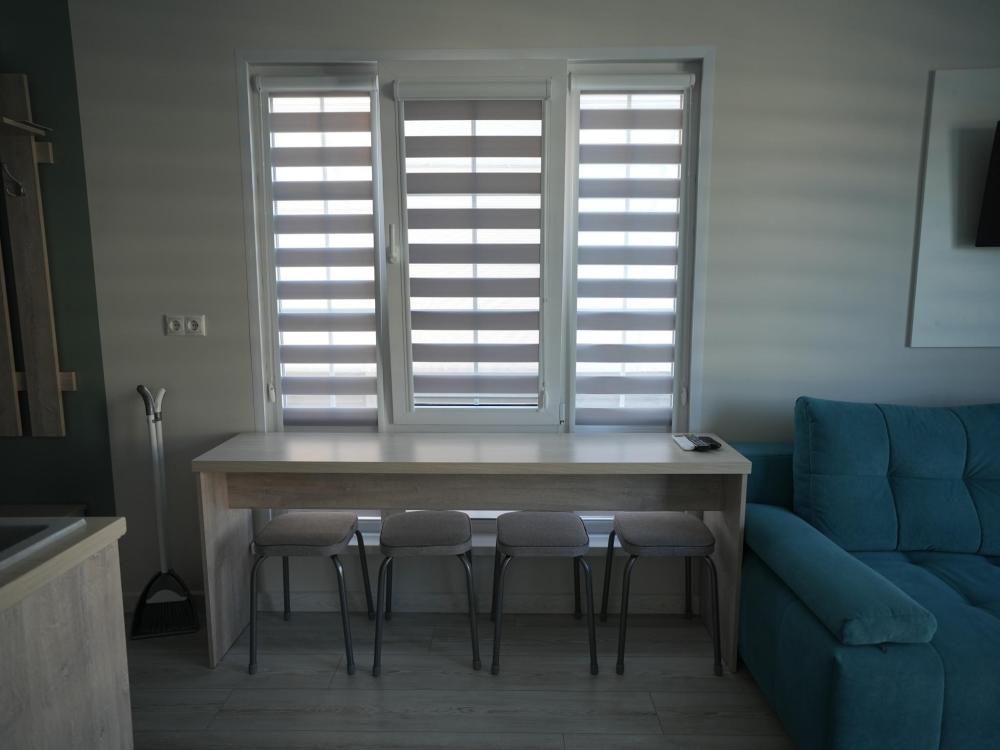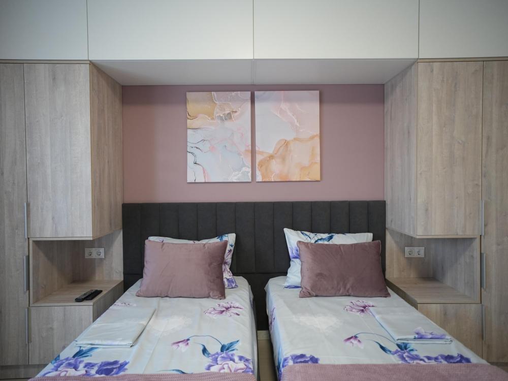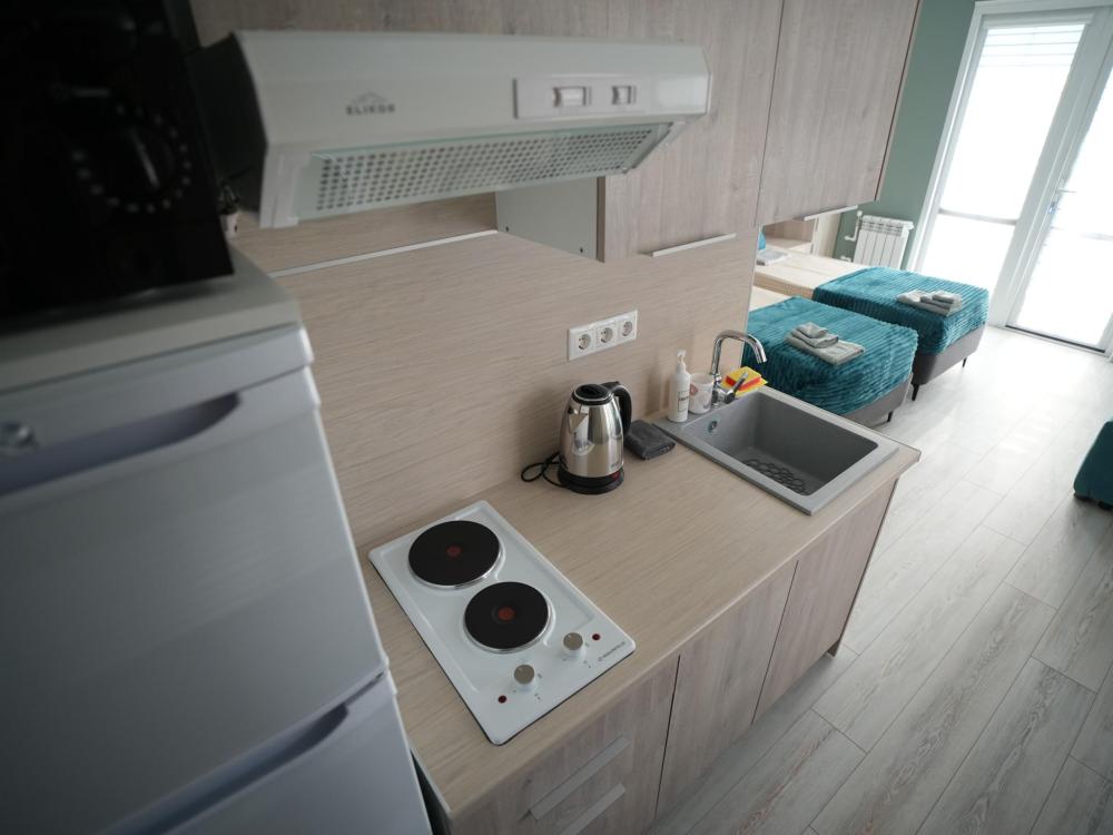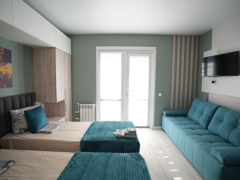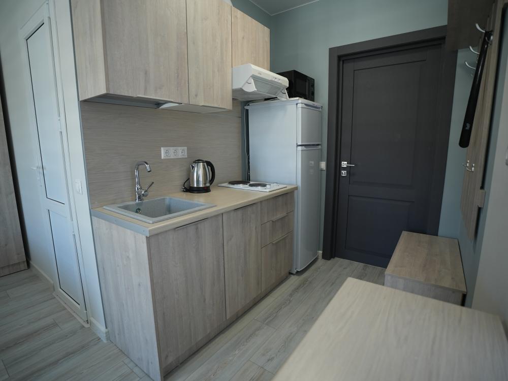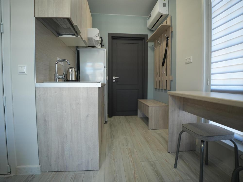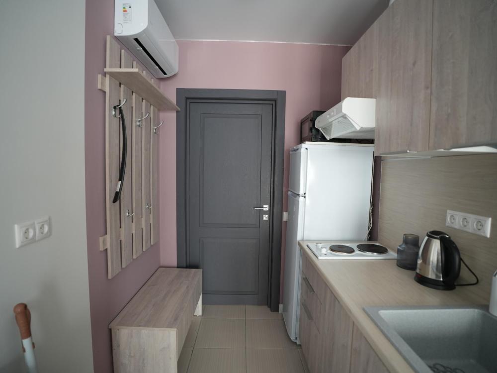 Данный номер находится на первом этаже. Новая мебель, диваны, кровати, кондиционер, ортопедические матрасы, свежее постельное белье, полотенца, утюг, фен, бесплатный Wi-Fi, телевизор, микроволновая печь, холодильник. В каждом гостевом номере есть мини-кухня.