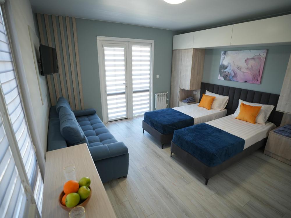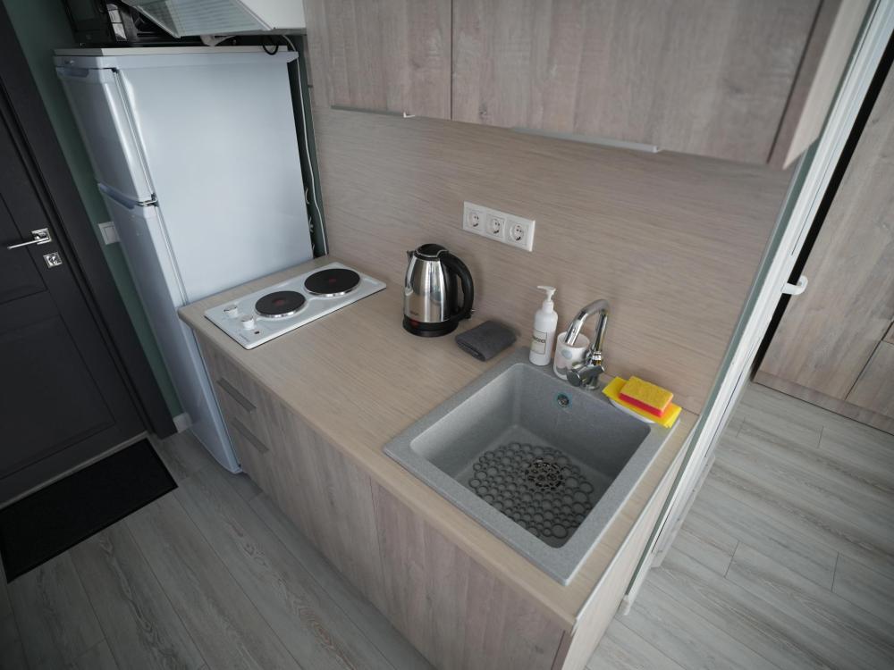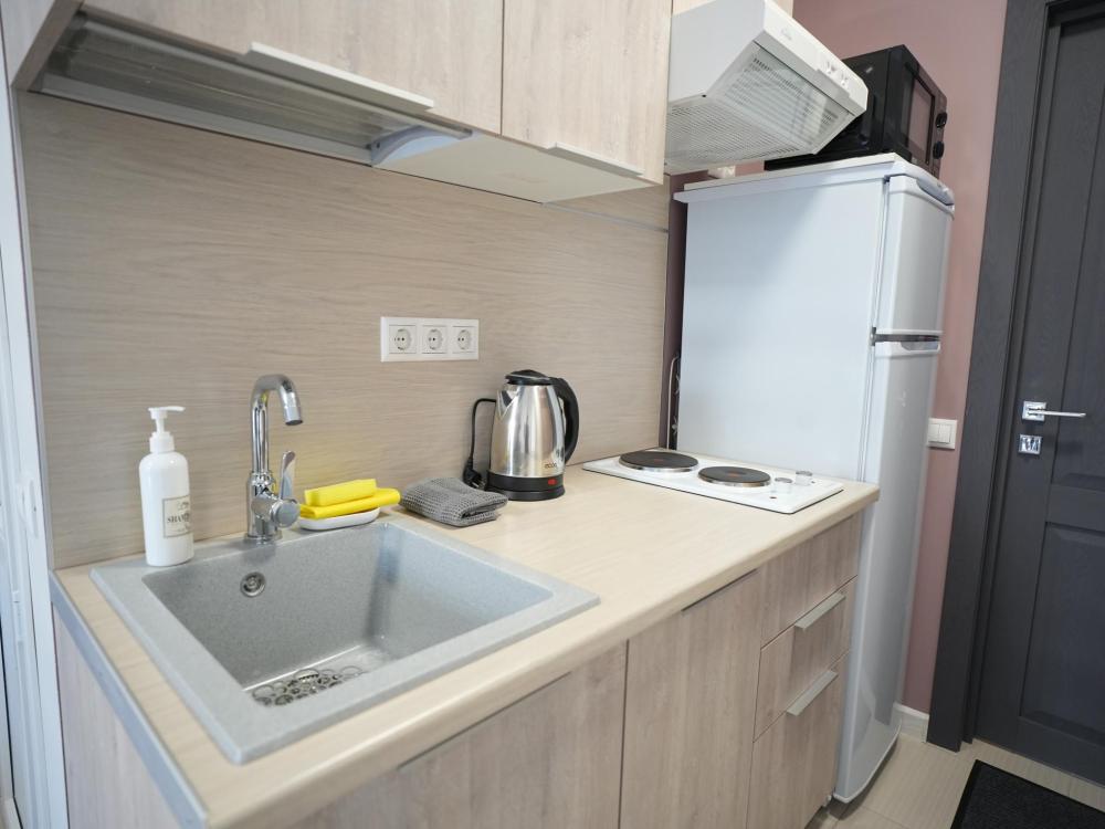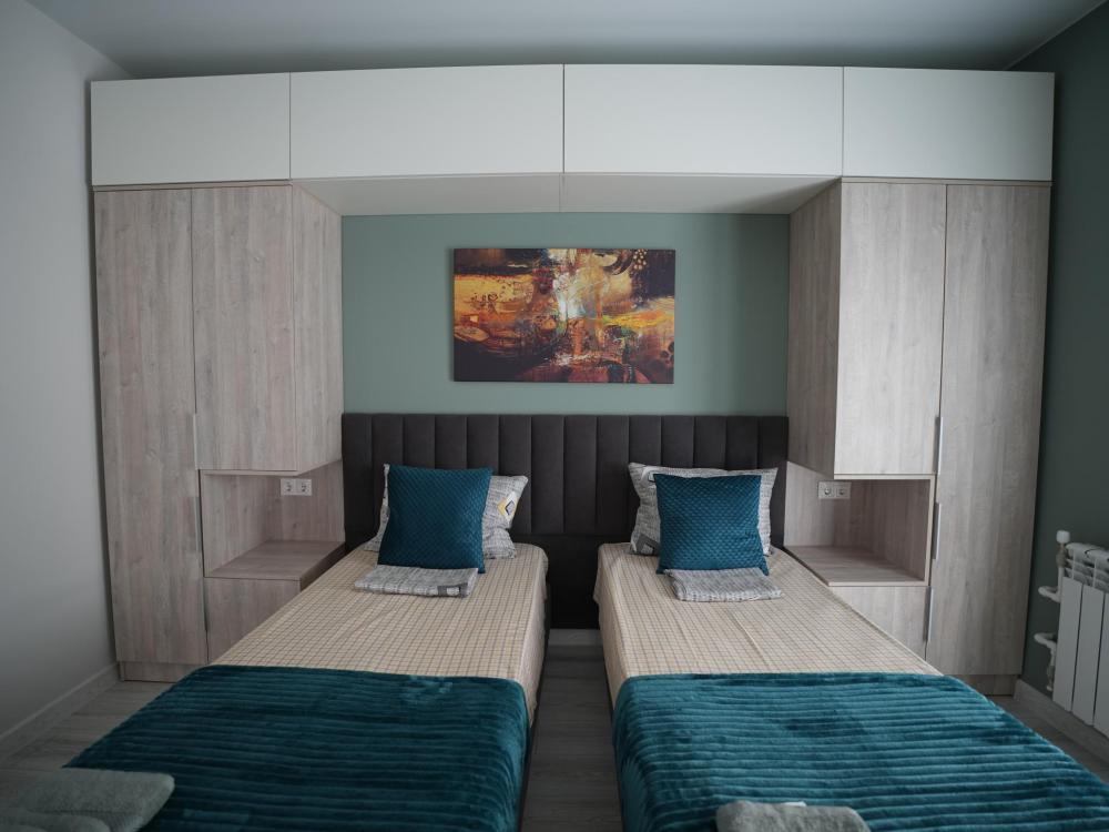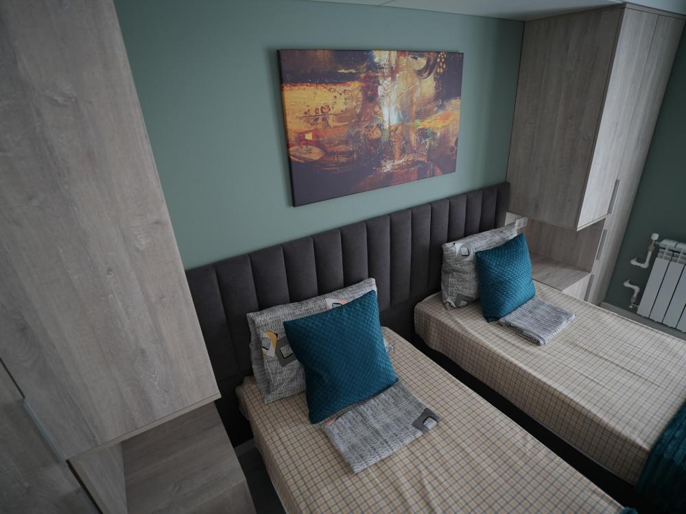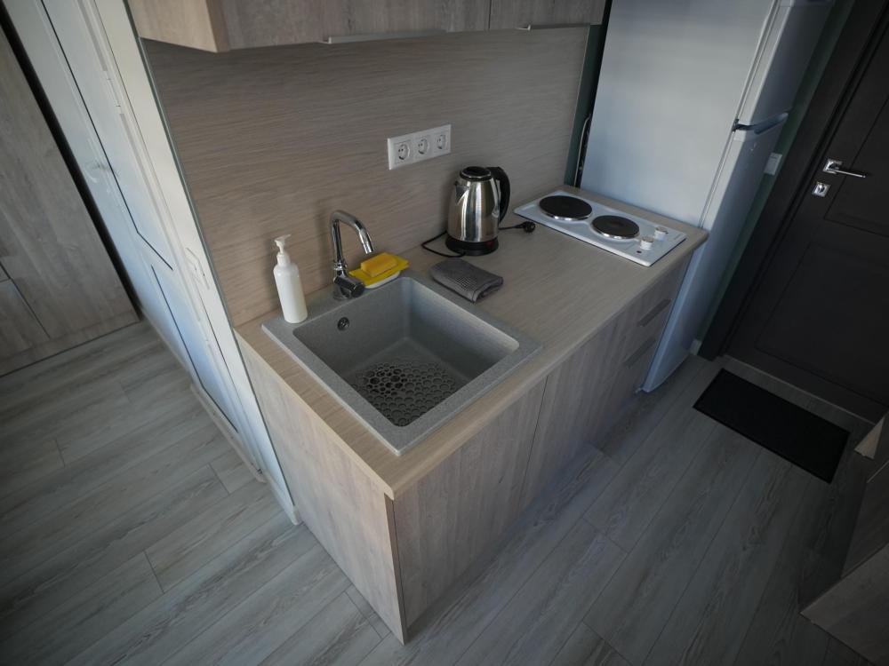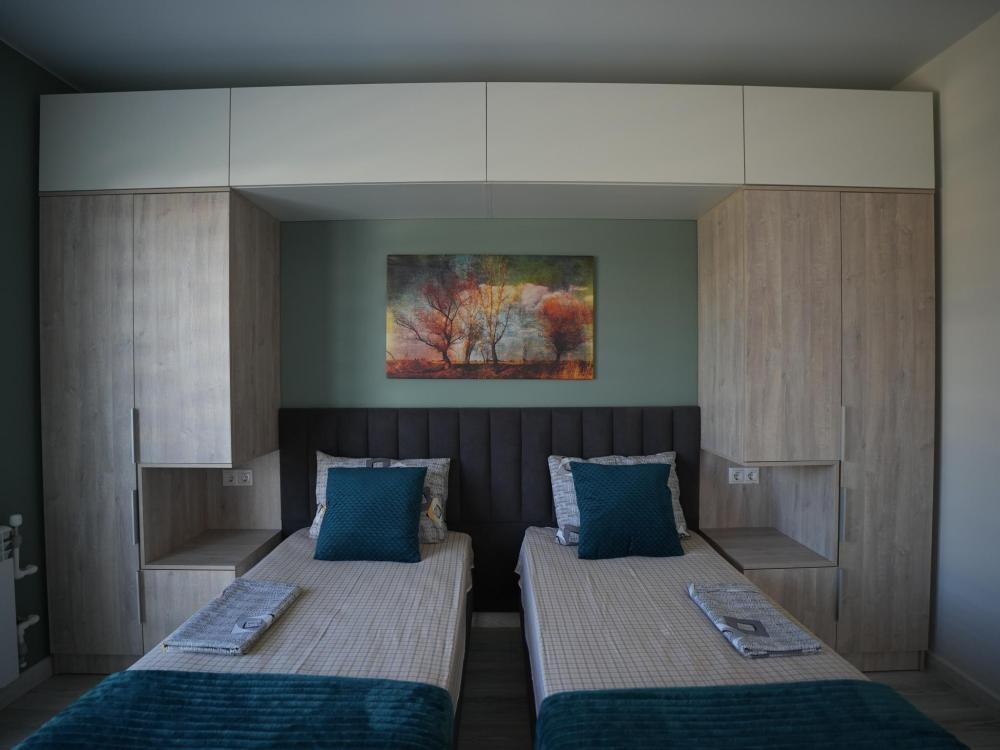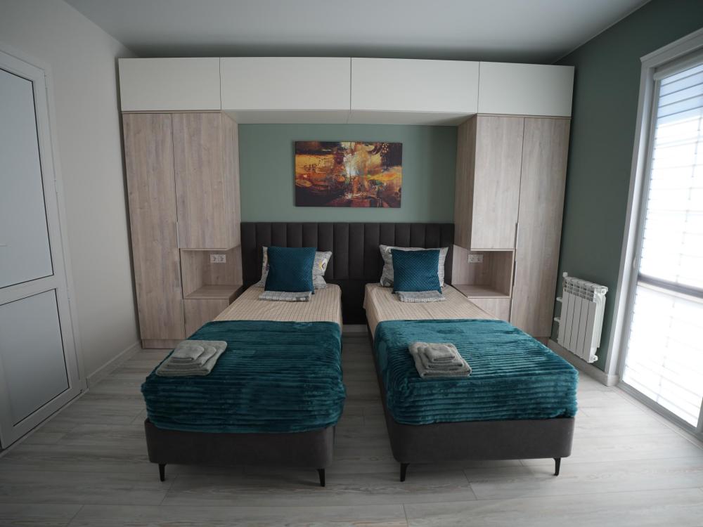 Данный номер находится на первом этаже. Новая мебель, диваны, кровати, кондиционер, ортопедические матрасы, свежее постельное белье, полотенца, утюг, фен, бесплатный Wi-Fi, телевизор, микроволновая печь, холодильник. В каждом гостевом номере есть мини-кухня.