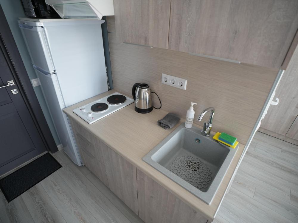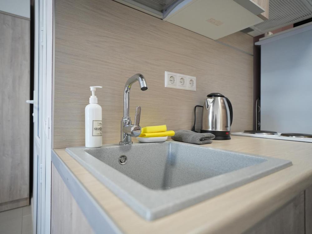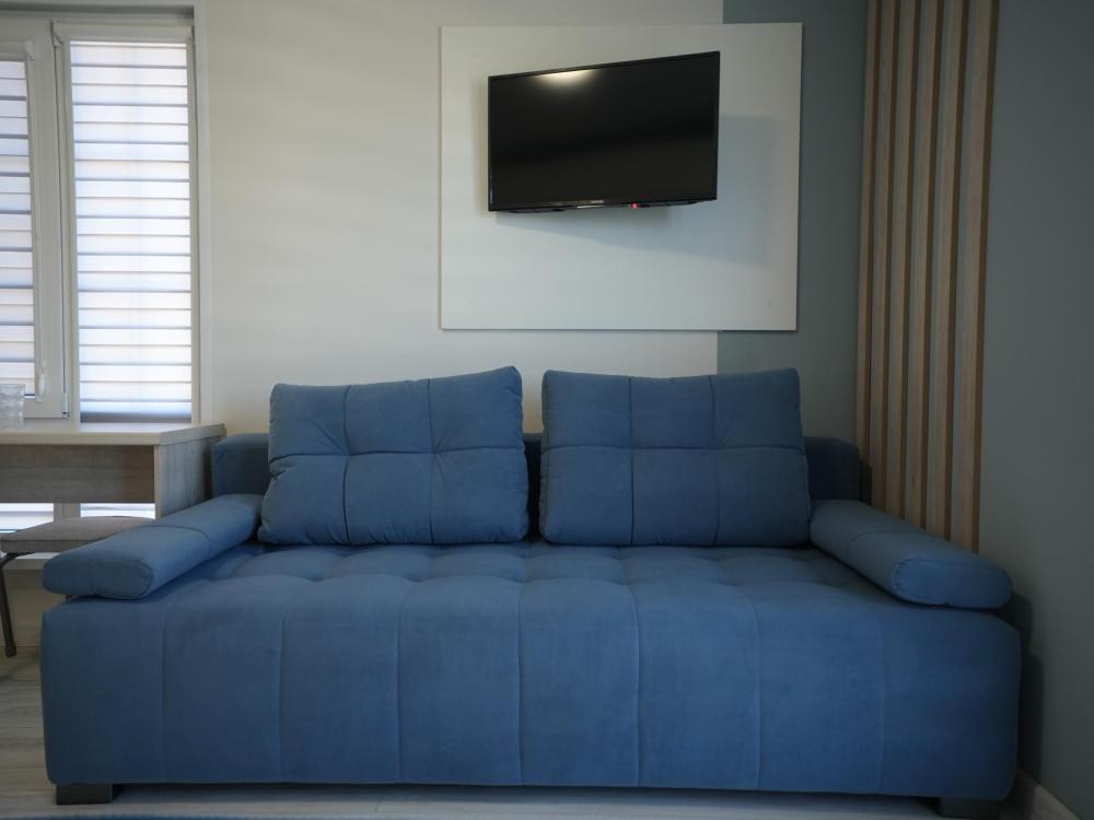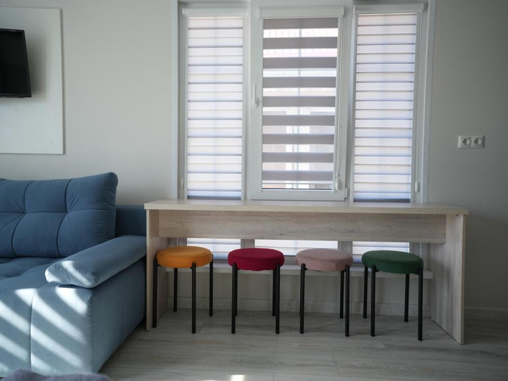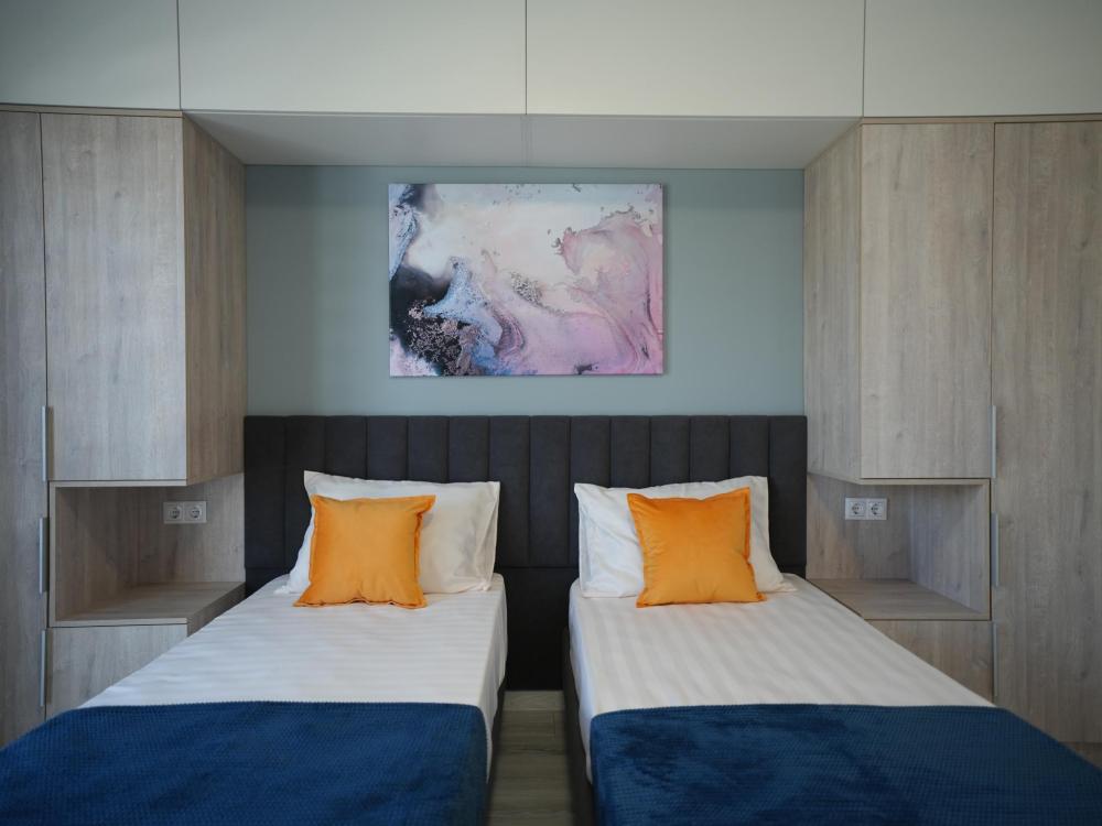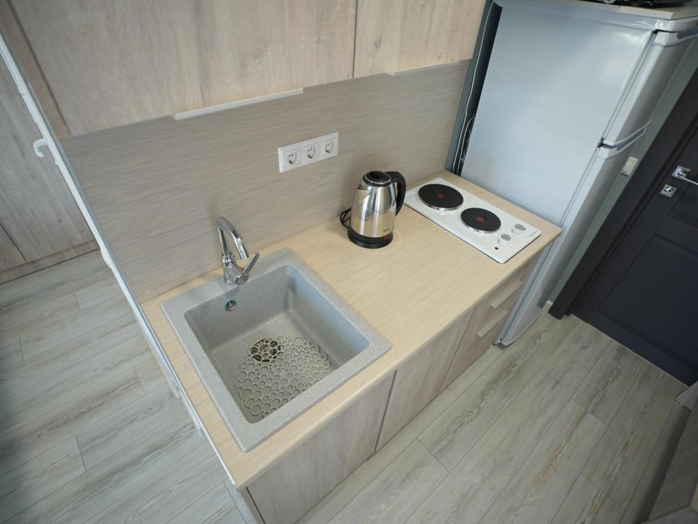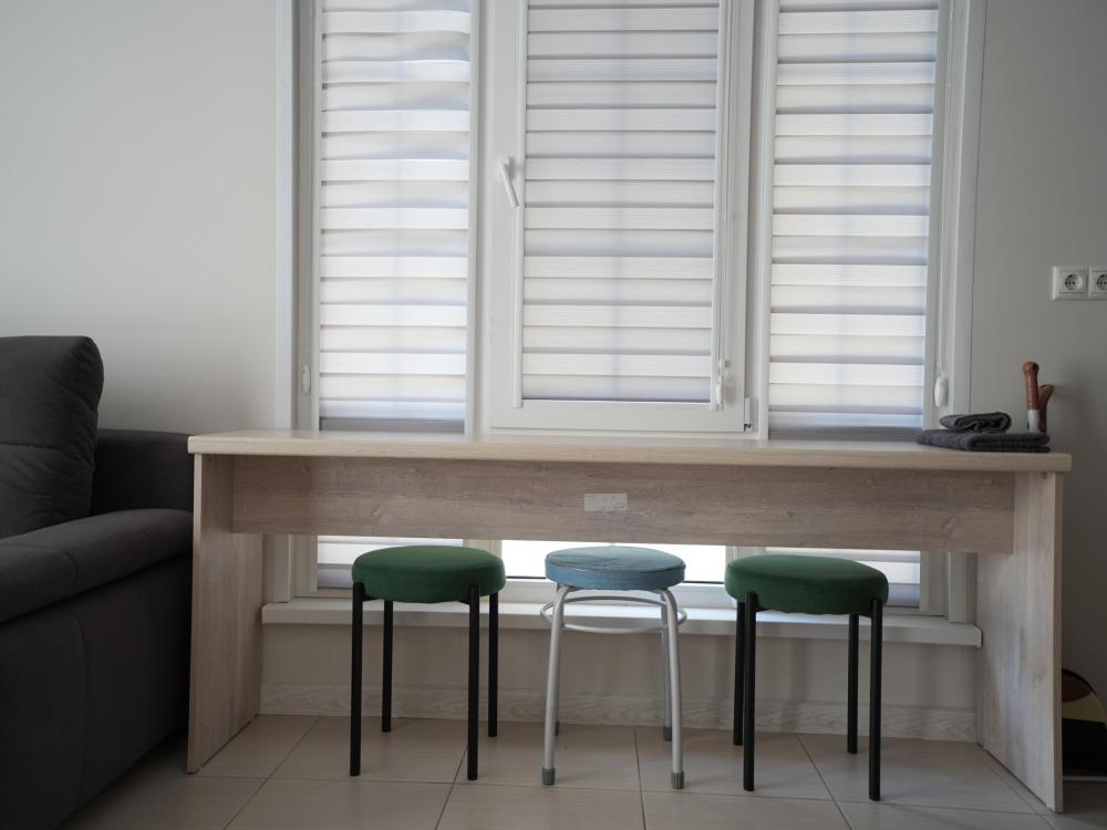 Данный номер находится на первом этаже. Новая мебель, диваны, кровати, кондиционер, ортопедические матрасы, свежее постельное белье, полотенца, утюг, фен, бесплатный Wi-Fi, телевизор, микроволновая печь, холодильник. В каждом гостевом номере есть мини-кухня.