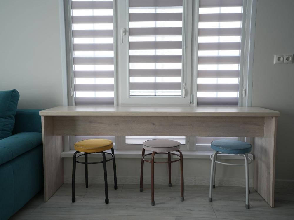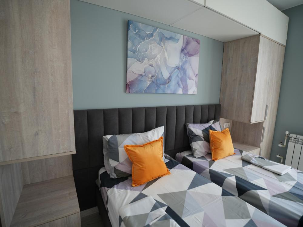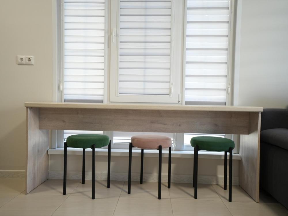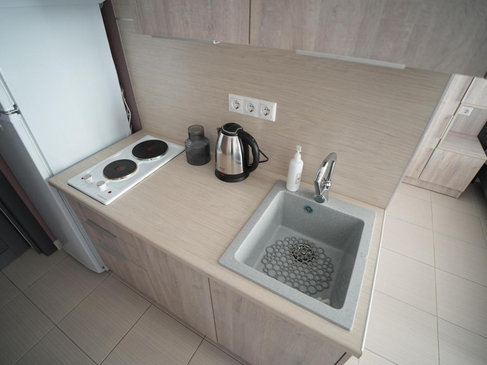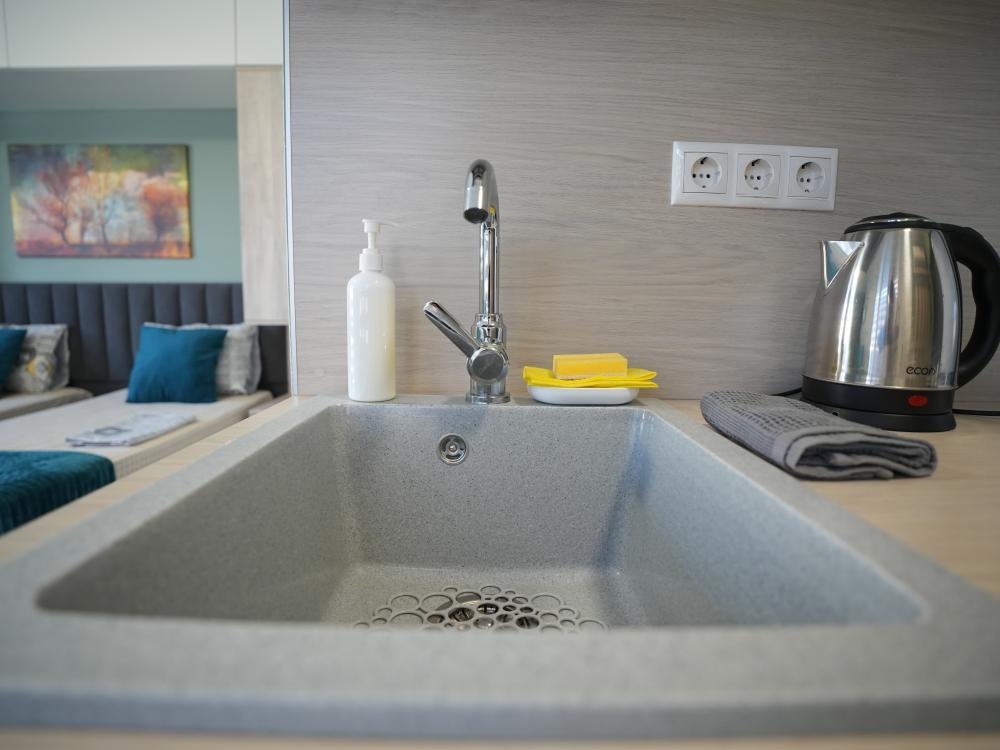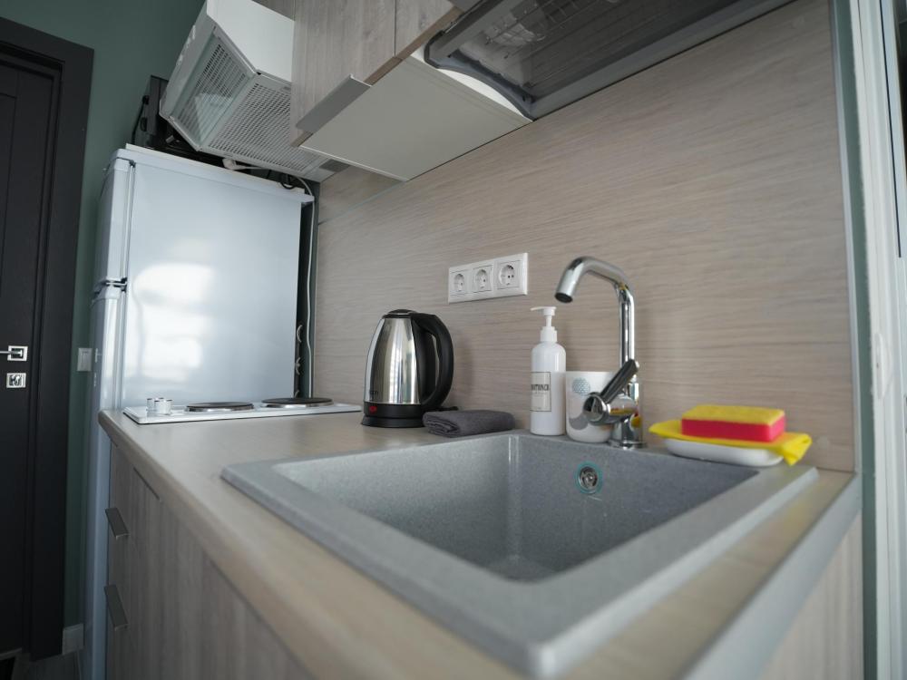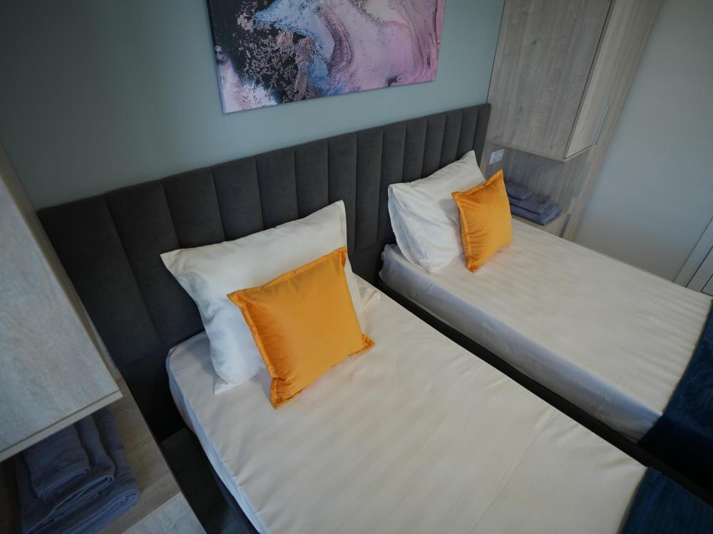Данный номер находится на первом этаже. Новая мебель, диваны, кровати, кондиционер, ортопедические матрасы, свежее постельное белье, полотенца, утюг, фен, бесплатный Wi-Fi, телевизор, микроволновая печь, холодильник. В каждом гостевом номере есть мини-кухня.