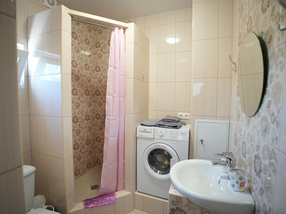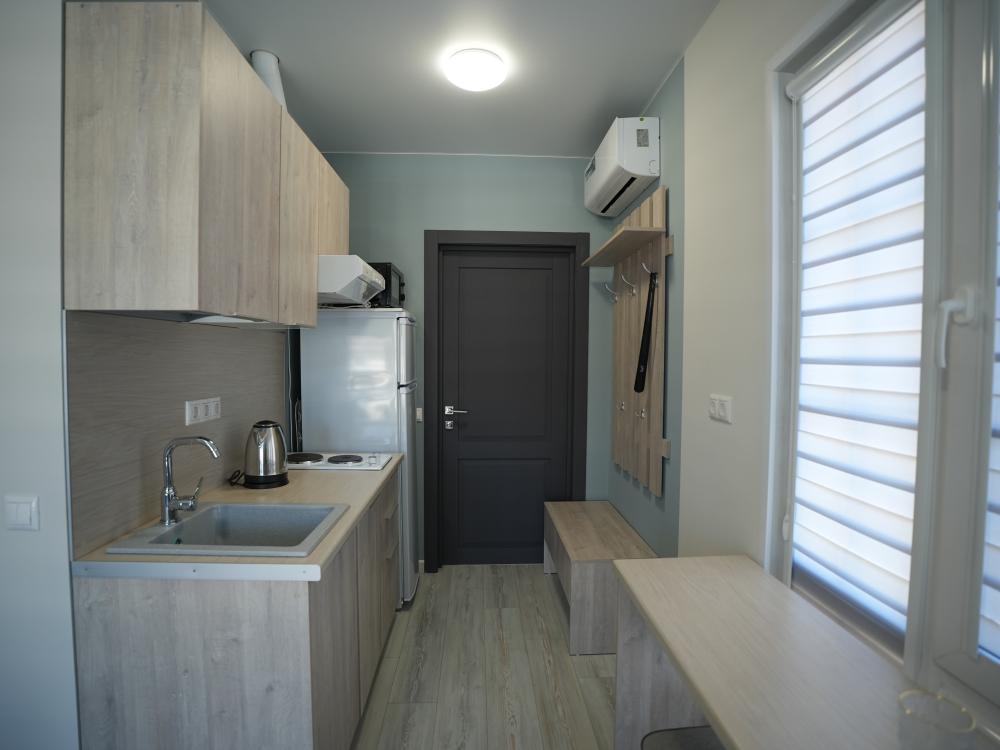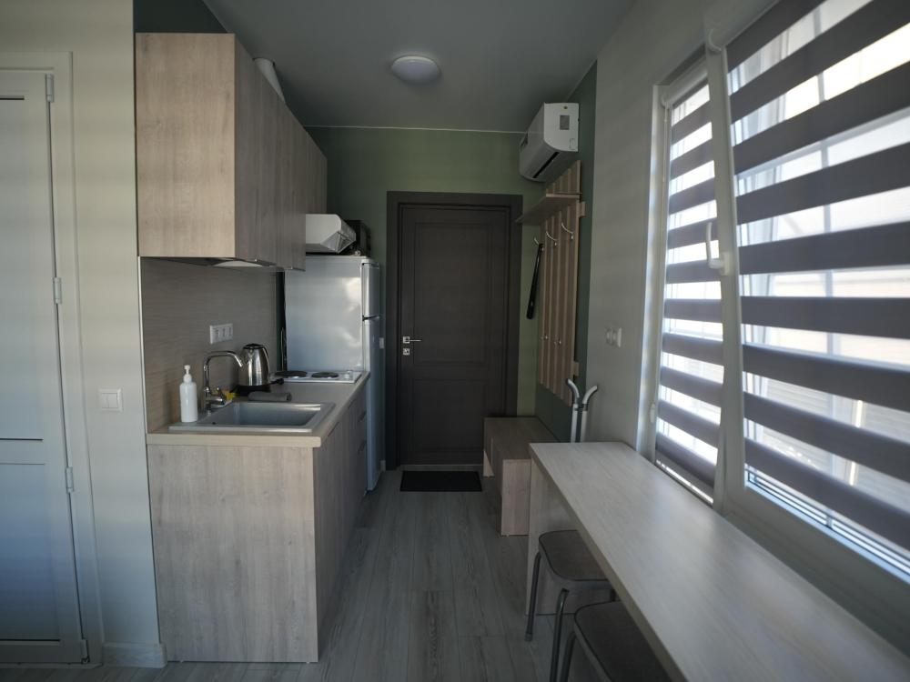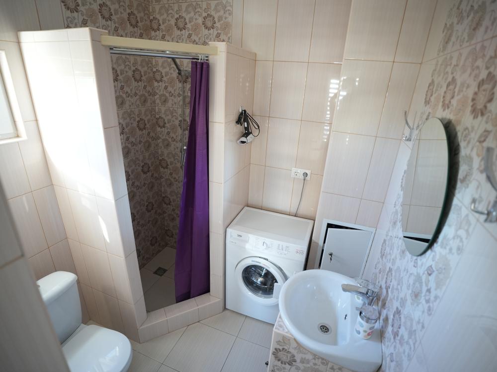 Данный номер находится на первом этаже! Новая мебель, диваны, кровати, кондиционер, ортопедические матрасы, свежее постельное белье, полотенца, утюг, фен, бесплатный Wi-Fi, телевизор, микроволновая печь, холодильник. В каждом гостевом номере есть мини-кухня, где можно приготовить себе еду самостоятельно. После, можно разместиться на своем балконе за удобным столиком, с видом на зеленый сад и горы.