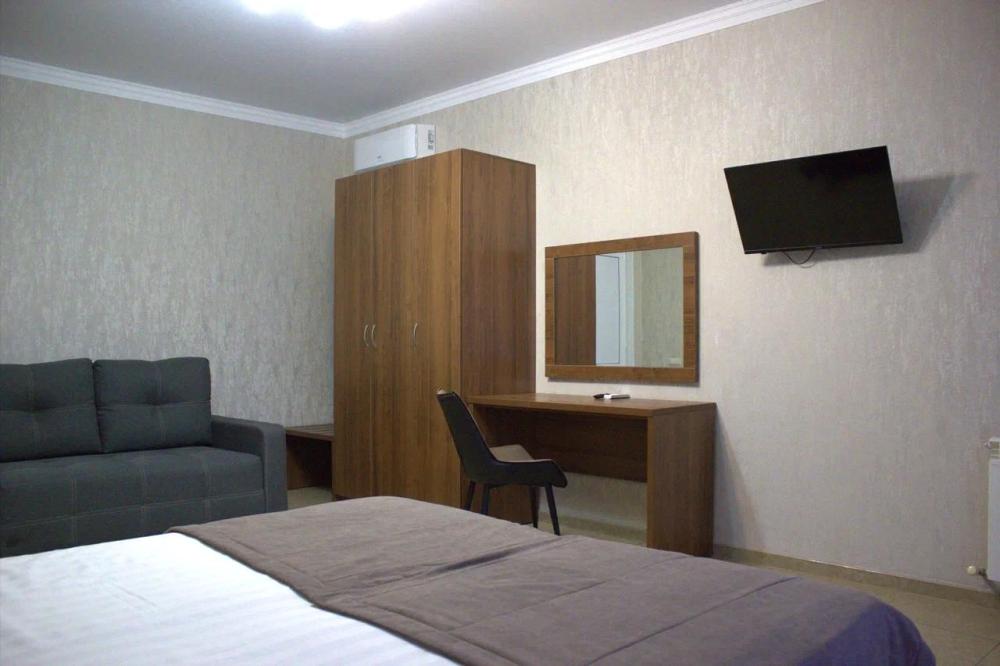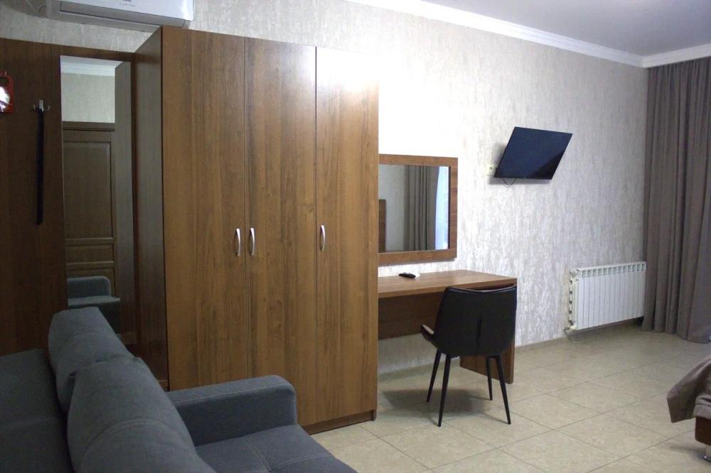 Уютный номер стандарт семейный площадью 25 кв.м. с балконом, для размещения до 3-х гостей. В номере: двухспальная кровать, шкаф, рабочее место, телевизор для вечернего просмотра фильмов, Wi-Fi для связи с близкими и решения рабочих вопросов, ванная комната.