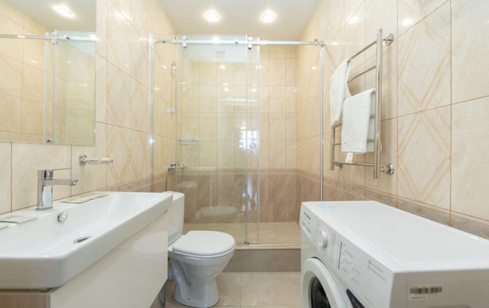 Двухкомнатные апартаменты люкс общей площадью 50 кв.м. для размещения до 4-х гостей. Для комфортного проживания гостей апартаменты оснащены всем необходимым: двухспальная кровать, диван, кухня оснащенная необходимой техникой и посудой, холодильник, плита, обеденная зона, ванная комната, стиральная машина.