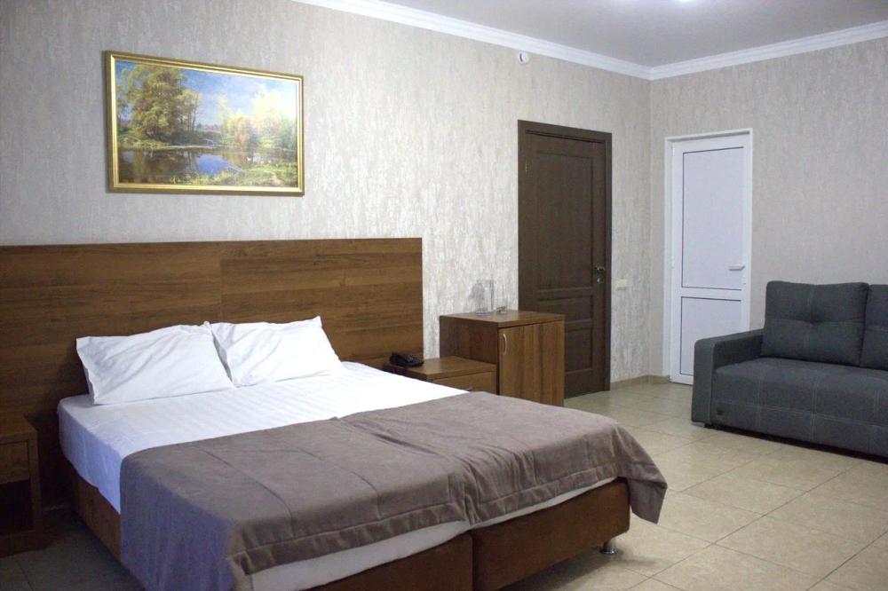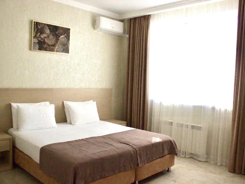 Уютный номер люкс площадью 30 кв.м, где каждая деталь продумана для комфорта гостей. В номере: кровати с белоснежным постельным бельем, набор полотенец, спокойная цветовая гамма и приятная текстура обоев создают атмосферу уюта и расслабления, удобный комод для хранения вещей, телевизор для вечернего просмотра фильмов, Wi-Fi для связи с близкими и решения рабочих вопросов.