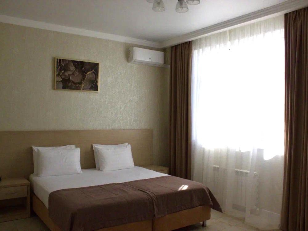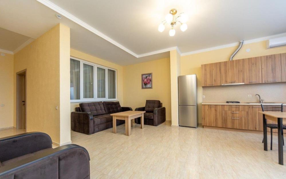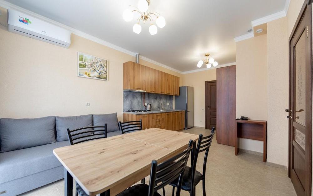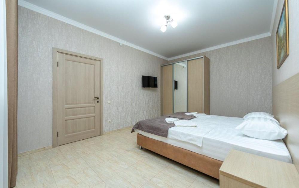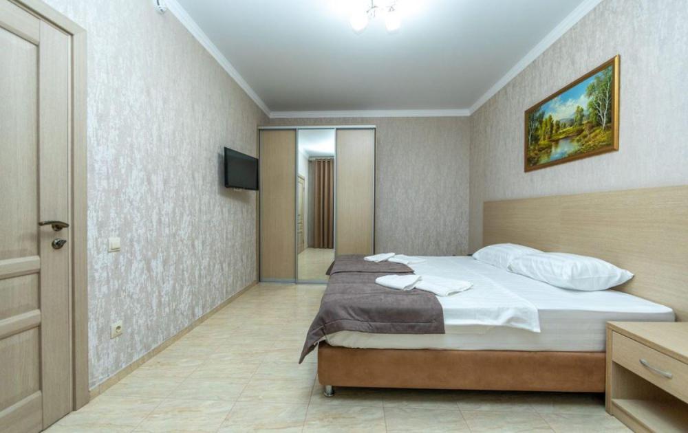 Двухкомнатные апартаменты люкс с балконом общей площадью 40 кв.м. для размещения до 5-ти гостей. Для комфортного проживания гостей апартаменты оснащены всем необходимым: двухспальная кровать, диван, кухня оснащенная необходимой техникой и посудой, холодильник, плита, обеденная зона, ванная комната, стиральная машина, балкон.