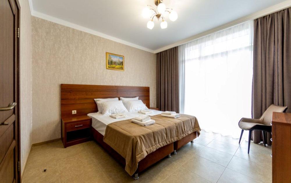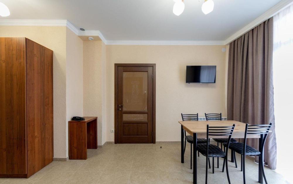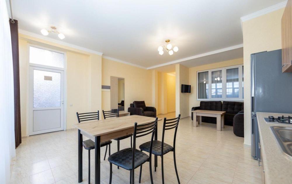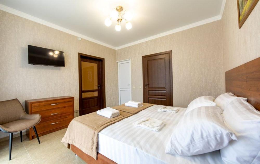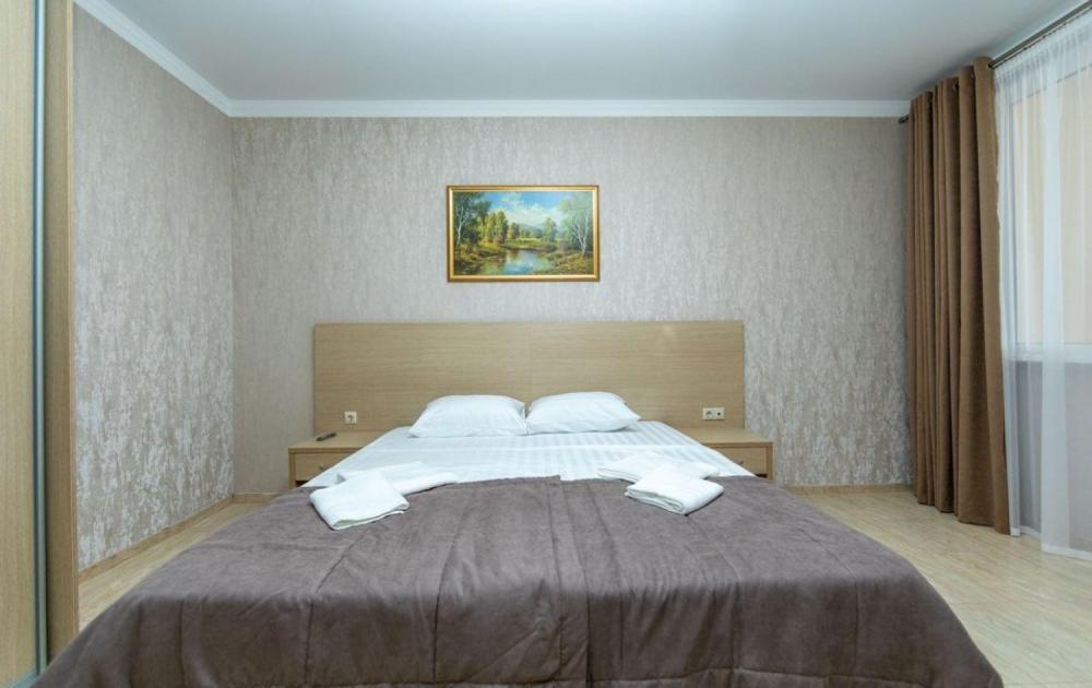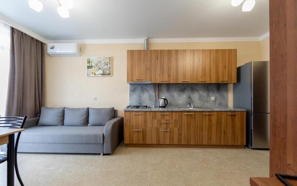 Двухкомнатные апартаменты люкс с балконом общей площадью 40 кв.м. для размещения до 5-ти гостей. Для комфортного проживания гостей апартаменты оснащены всем необходимым: двухспальная кровать, диван, кухня оснащенная необходимой техникой и посудой, холодильник, плита, обеденная зона, ванная комната, стиральная машина, балкон.