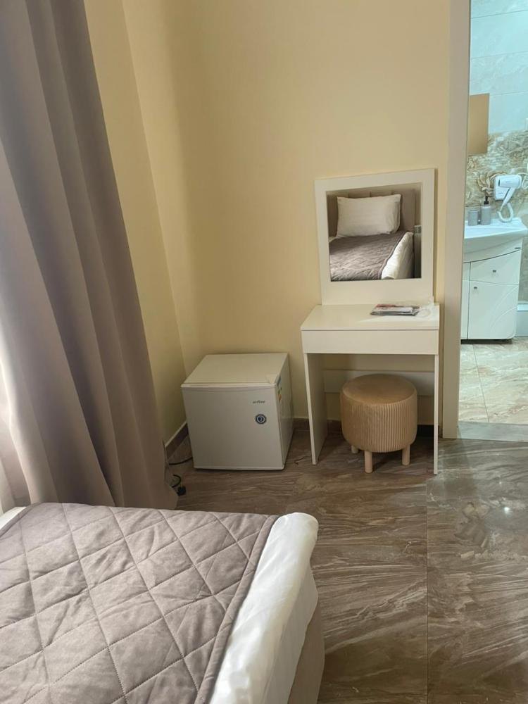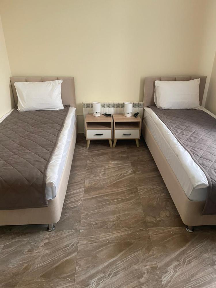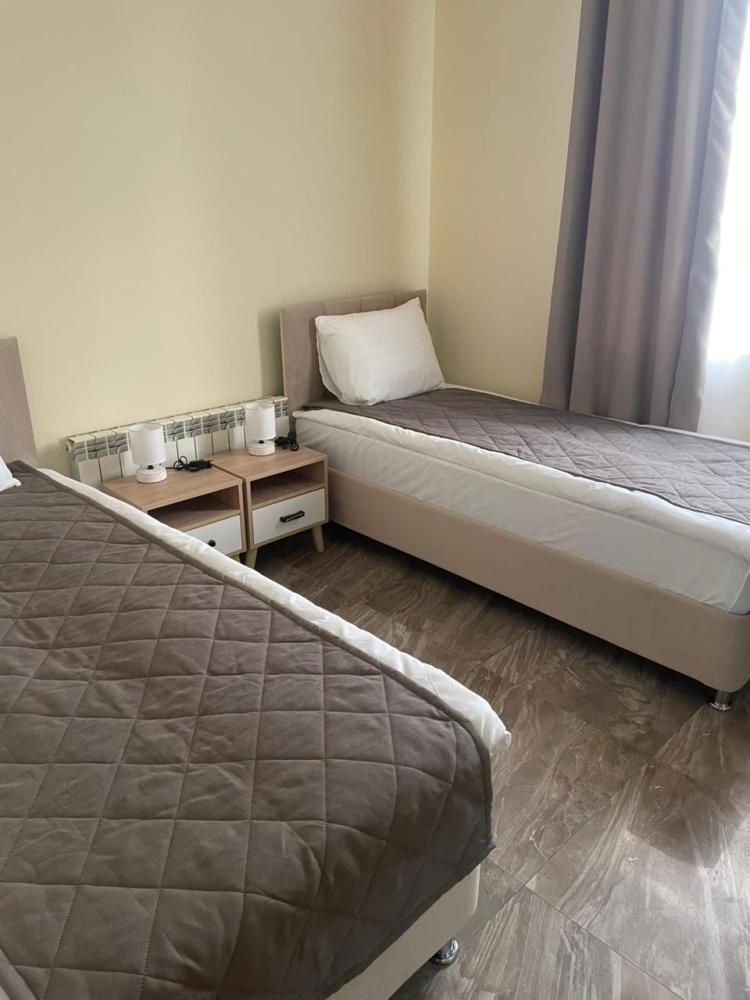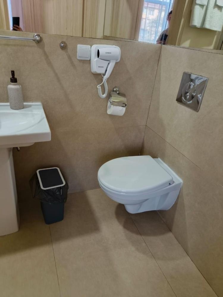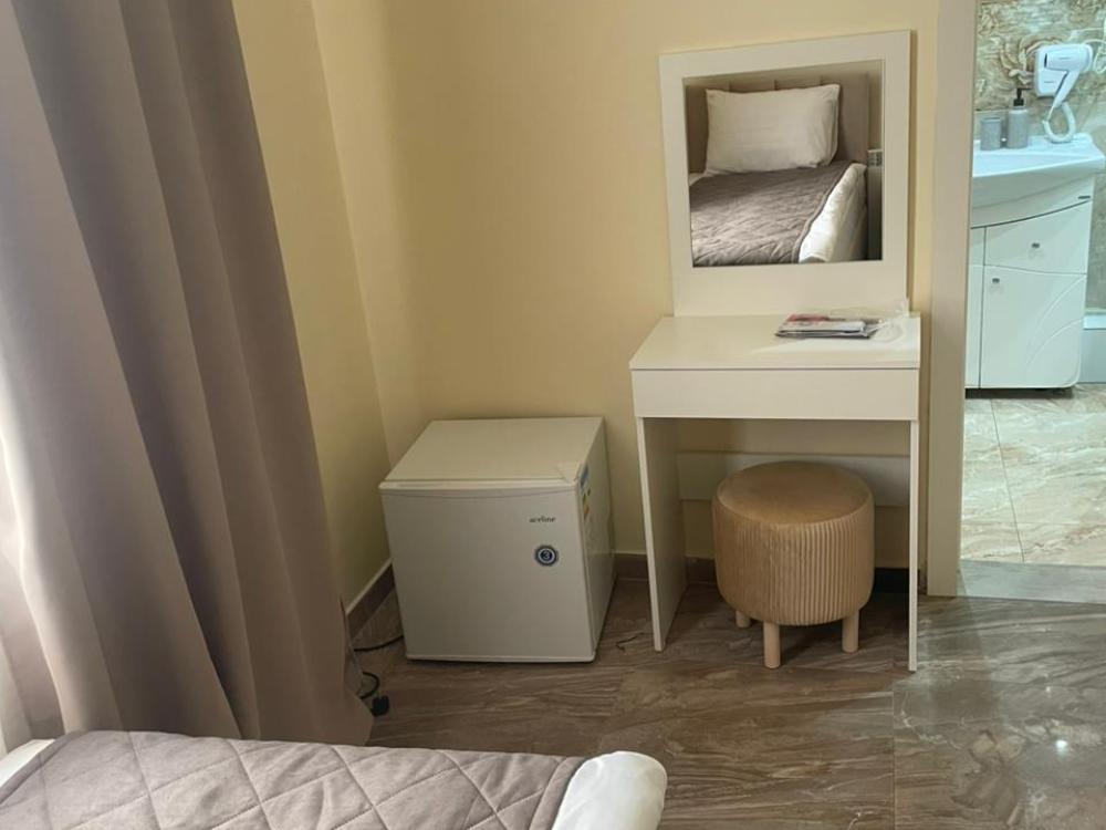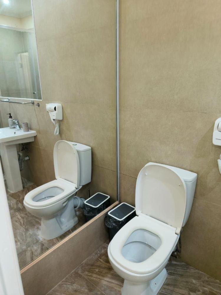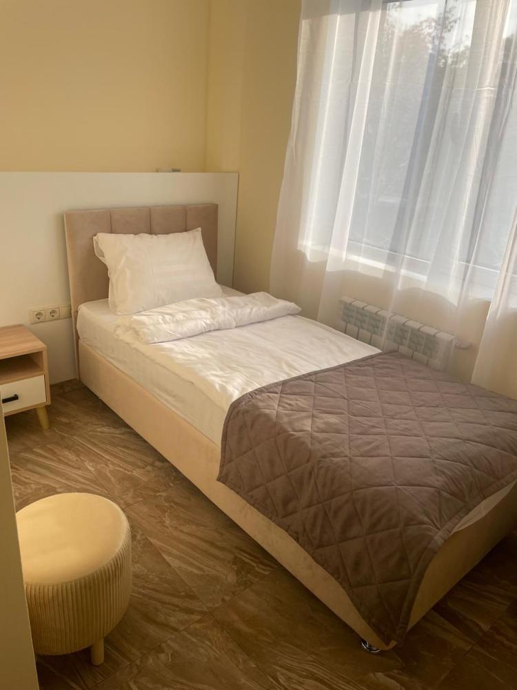Двухместная комната стандарт площадью 25 кв.м с видом на город. Подходит для размещения 2 человек. Оснащение: 2 односпальные кровати, телевизор, кондиционер, отопление, шкаф, вешалка, холодильник, фен, туалетный столик, стулья, ванна, раковина, туалет. В стоимость входит: постельное бельё, полотенца, халат, тапочки, ванные принадлежности (шампунь, гель для душа, мыло, зубной набор). WI-Fi бесплатно на всей территории.