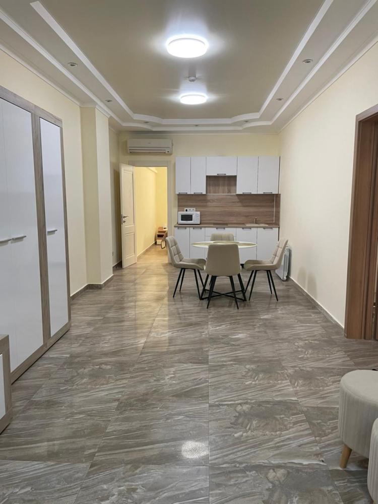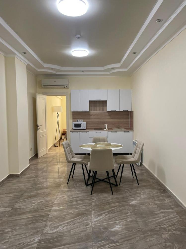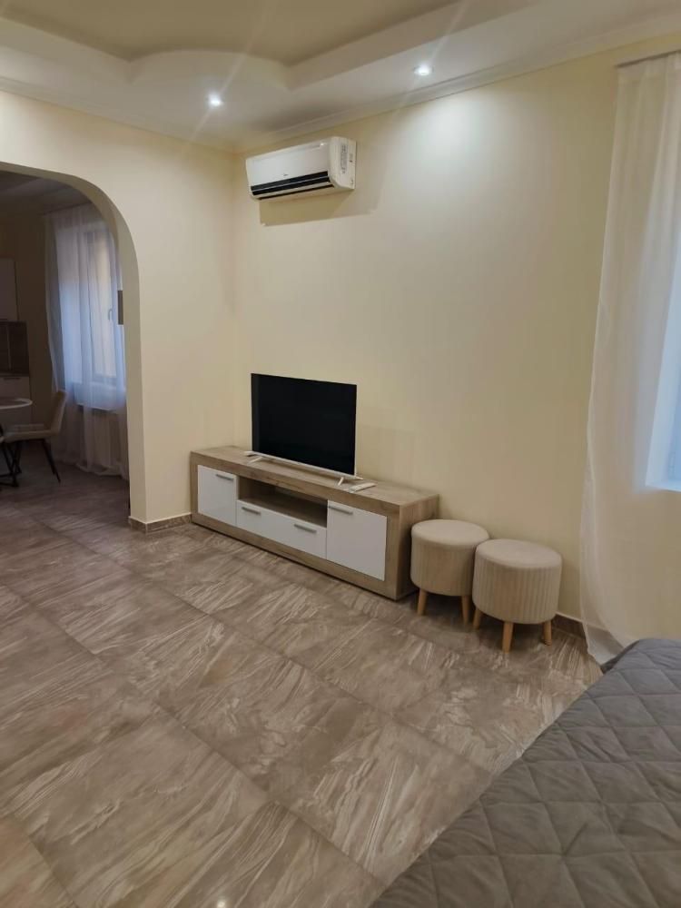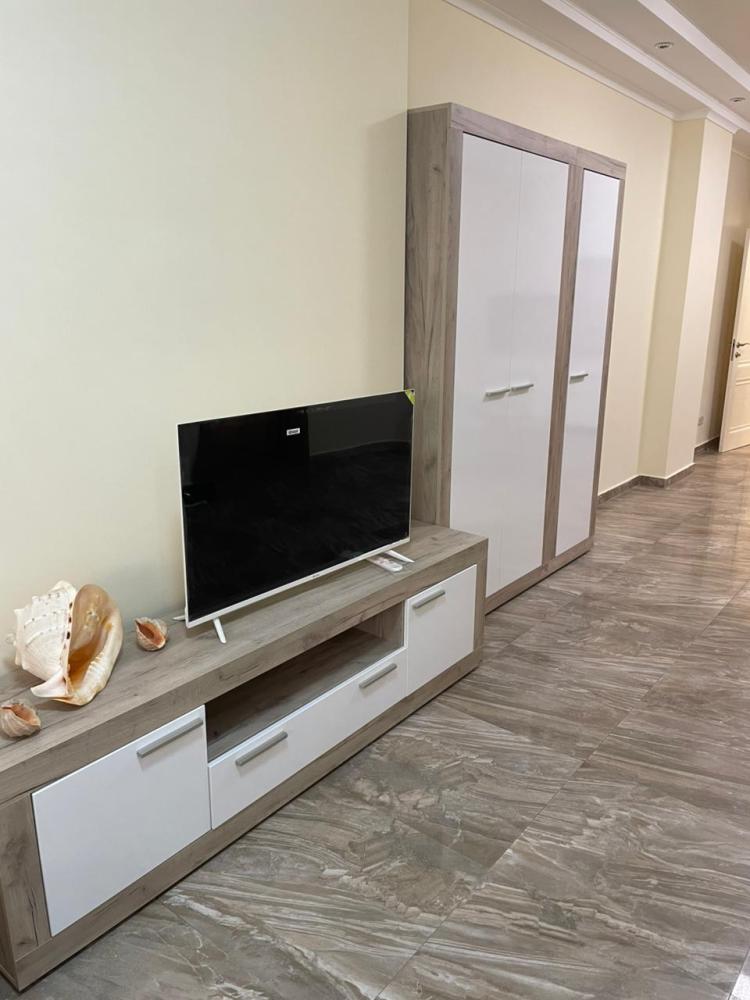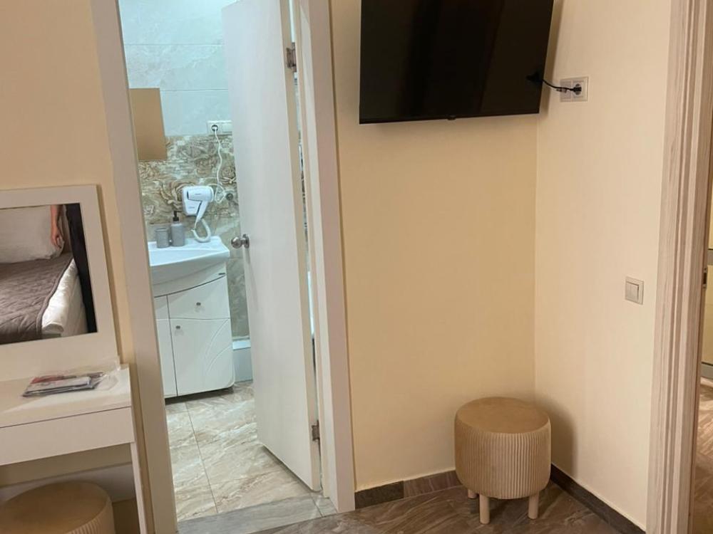 Апартамент студио площадью 49 кв.м с видом на город. Подходит для размещения 5 человек (4 основных места и 1 дополнительное). Имеет спальню с приятным интерьером. В номере: 1 двуспальная кровать, 1 двуспальный диван, 1 кресло-кровать, телевизор, кондиционер, отопление, фен, шкаф, вешалка, кухня, посуда, столовые приборы, холодильник, микроволновая печь, электрический чайник, электрическая плита, обеденный стол, туалетный столик, стулья. Индивидуальная ванная комната: душ, раковина, туалет. В стоимость входит: постельное бельё, полотенца, халат, тапочки, ванные принадлежности (шампунь, гель для душа, мыло, зубной набор). WI-Fi бесплатно на всей территории.