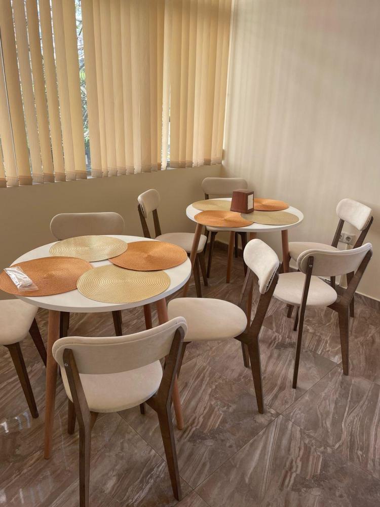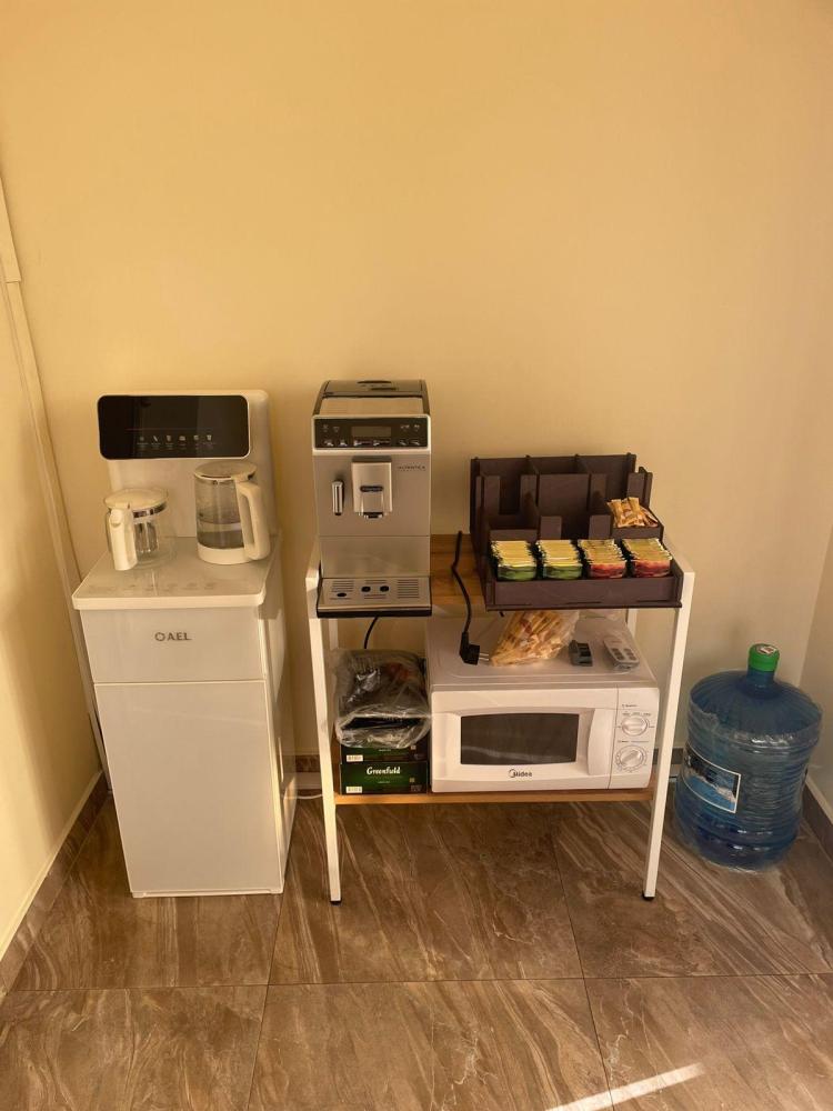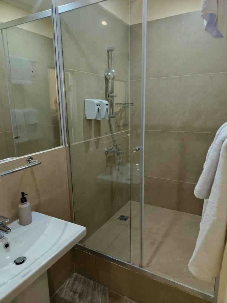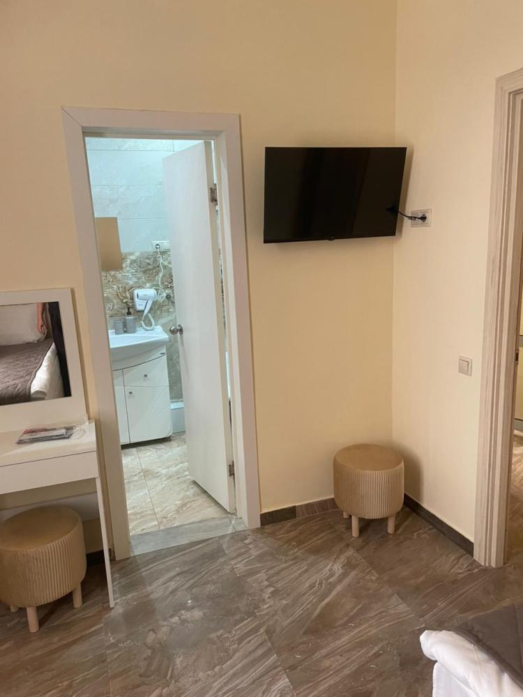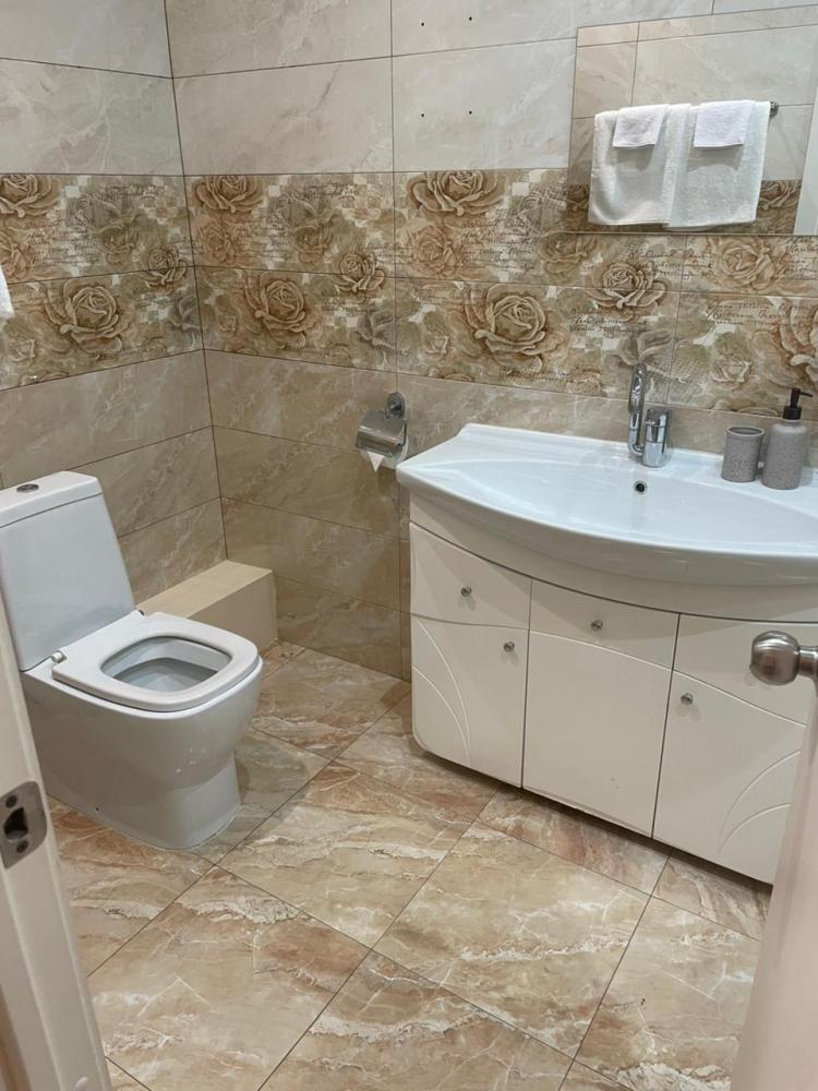 Семейная двухкомнатная комната площадью 49 кв.м с видом на город. Подходит для размещения 5 человек (4 основных места и 1 дополнительное) Оснащение: 1 двуспальная кровать, 1 двуспальный диван, телевизор, кондиционер, отопление, шкаф, вешалка, холодильник, фен, туалетный столик, стулья. Индивидуальная ванная комната: душ, раковина, туалет. В стоимость входит: постельное бельё, полотенца, халат, тапочки, ванные принадлежности (шампунь, гель для душа, мыло, зубной набор). WI-Fi бесплатно на всей территории.