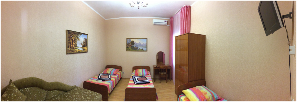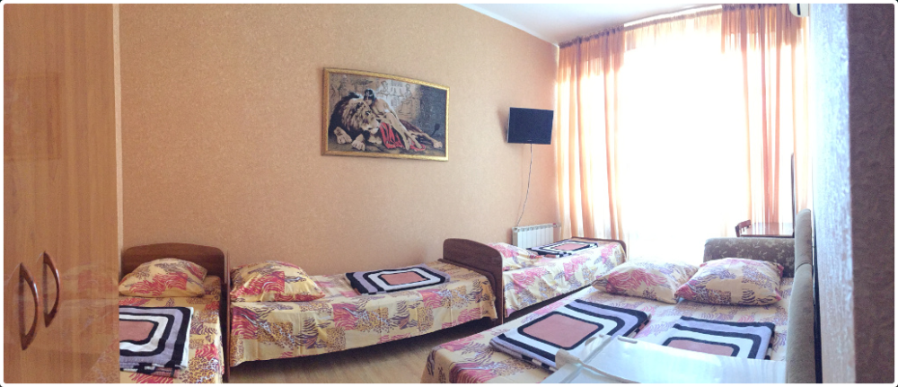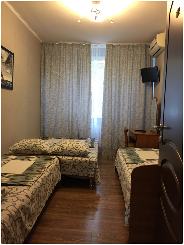 Уютная комната 15 кв.м. с двуспальной кроватью и раскладным диваном, располагающий всем необходимым для комфортного проживания небольшой семьи. В комнате санузел (туалет, душевая кабинка), фен, телевизор, электрочайник, стаканы, шкаф, стол, кондиционер, холодильник, интернет (Wi-Fi) с видом во внутренний двор.
