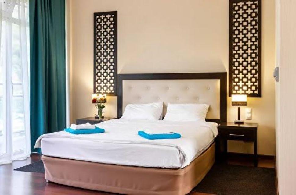 2-х комнатный номер площадью 40кв.м с панорамным остеклением и отдельным балконом с видом на горы. Комфортное проживание семейных пар с двумя детьми либо компаний из 4 человек.