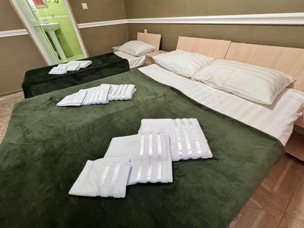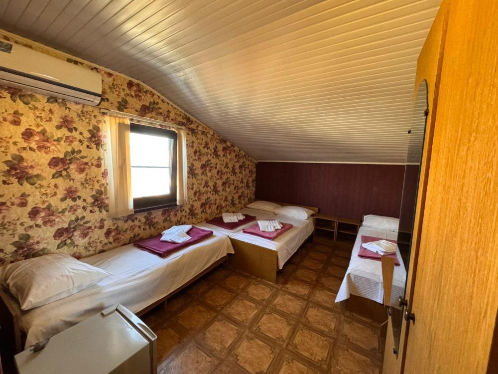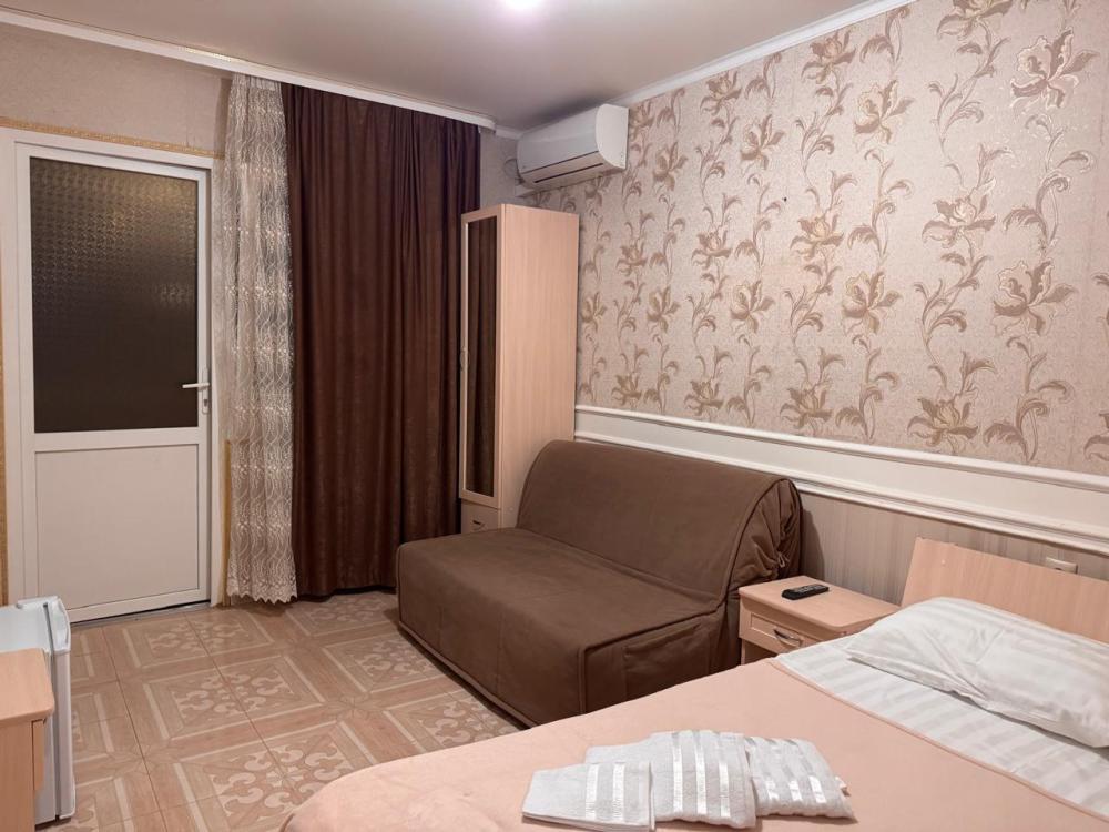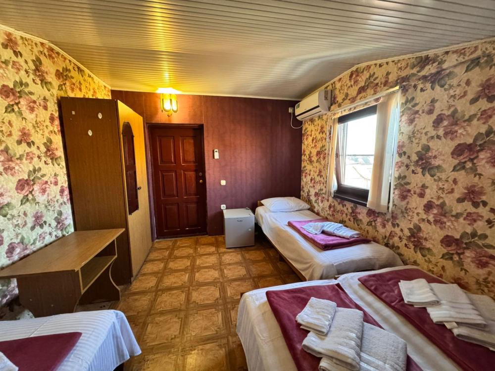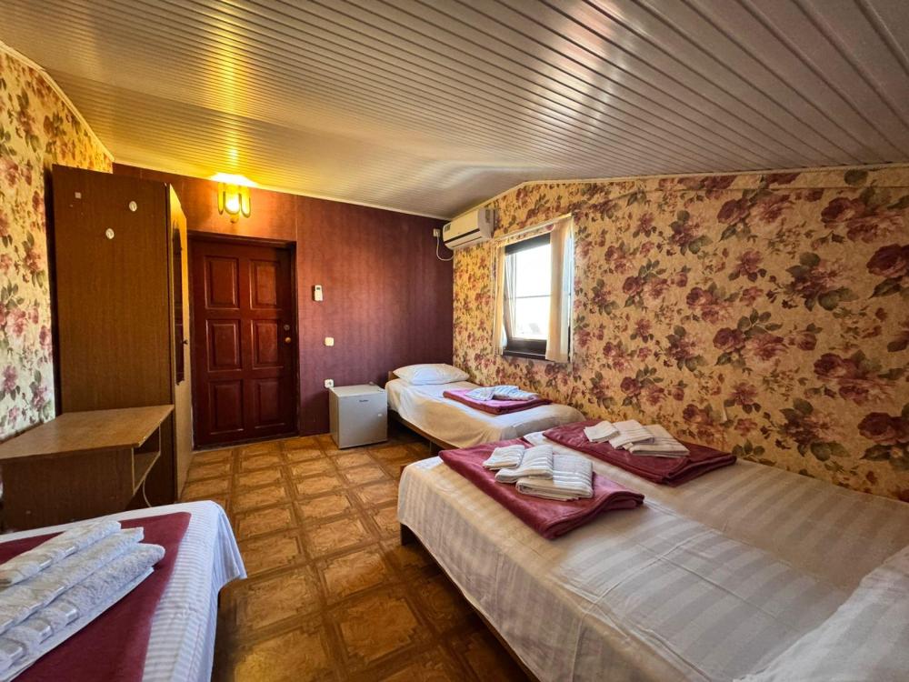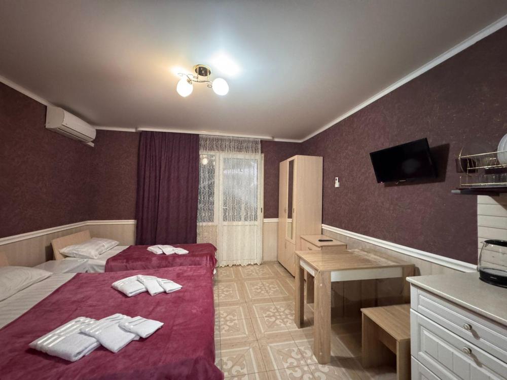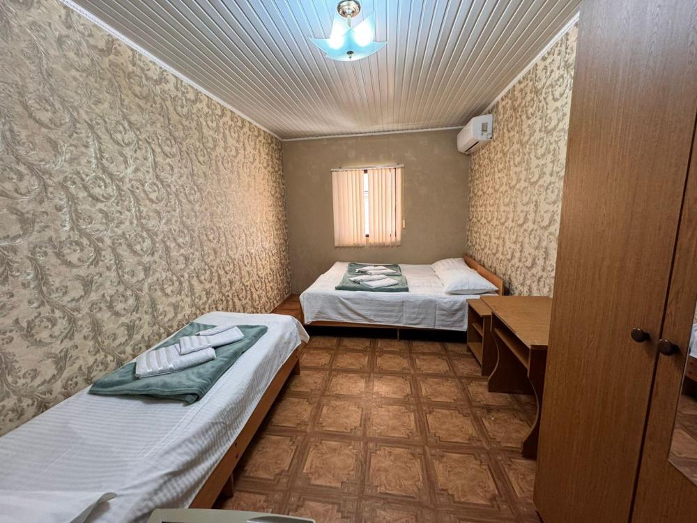 Уютный трехместный номер (19 м²) с общим балконом по доступной цене — отличный вариант для небольшой семьи или компании друзей. Вместимость 3 основных места; возможно бесплатно разместить ребёнка до 7 лет без дополнительного места. Спальные места двуспальная кровать; односпальная кровать. Вид из окна внутренний двор;. город. Оснащение номера кондиционер; холодильник; Wi‑Fi; стол; шкаф для одежды; прикроватные тумбочки. Общая кухня (расположена на этаже) плита; микроволновая печь; холодильник; чайник; комплект посуды для приготовления и приёма пищи. Общий санузел (расположен на этаже) душ; туалет; раковина; зеркало; комплект полотенец. На территории гостевого дома бесплатная парковка; бассейн; детская площадка; летняя кухня; оборудованные места для принятия солнечных ванн (шезлонги, зонты от солнца); лавки для отдыха; зона барбекю. Условия проживания заезд: с 14:00; выезд: до 12:00. Дополнительные услуги трансфер от/до аэропорта и ж/д вокзала (по договорённости). Гостевой дом «Сакура» славится гостеприимством и уютной атмосферой, что подтверждается положительными отзывами гостей.