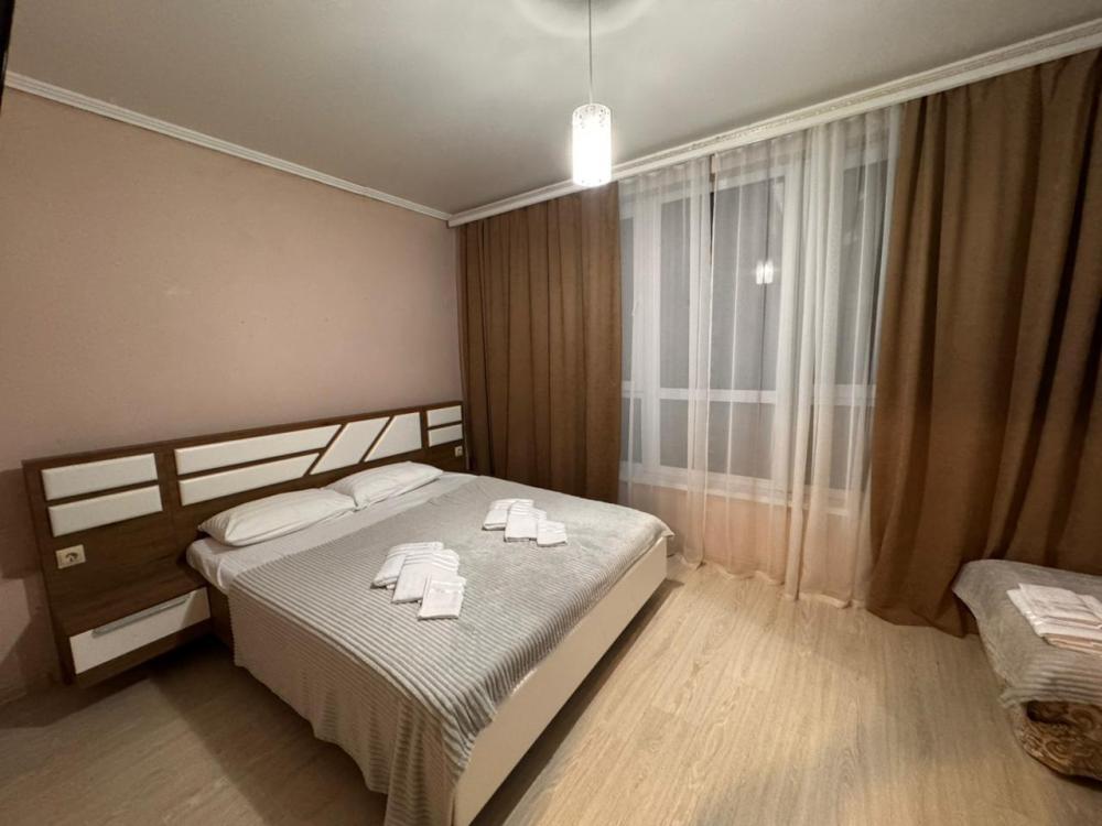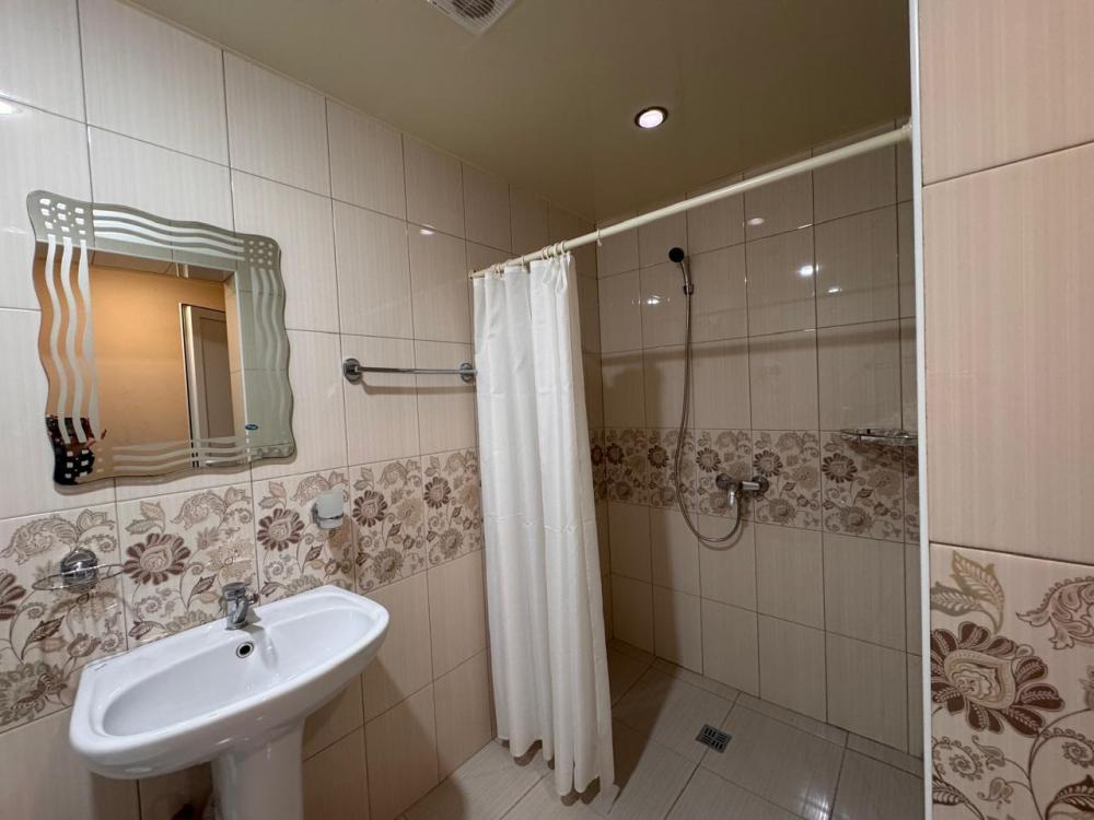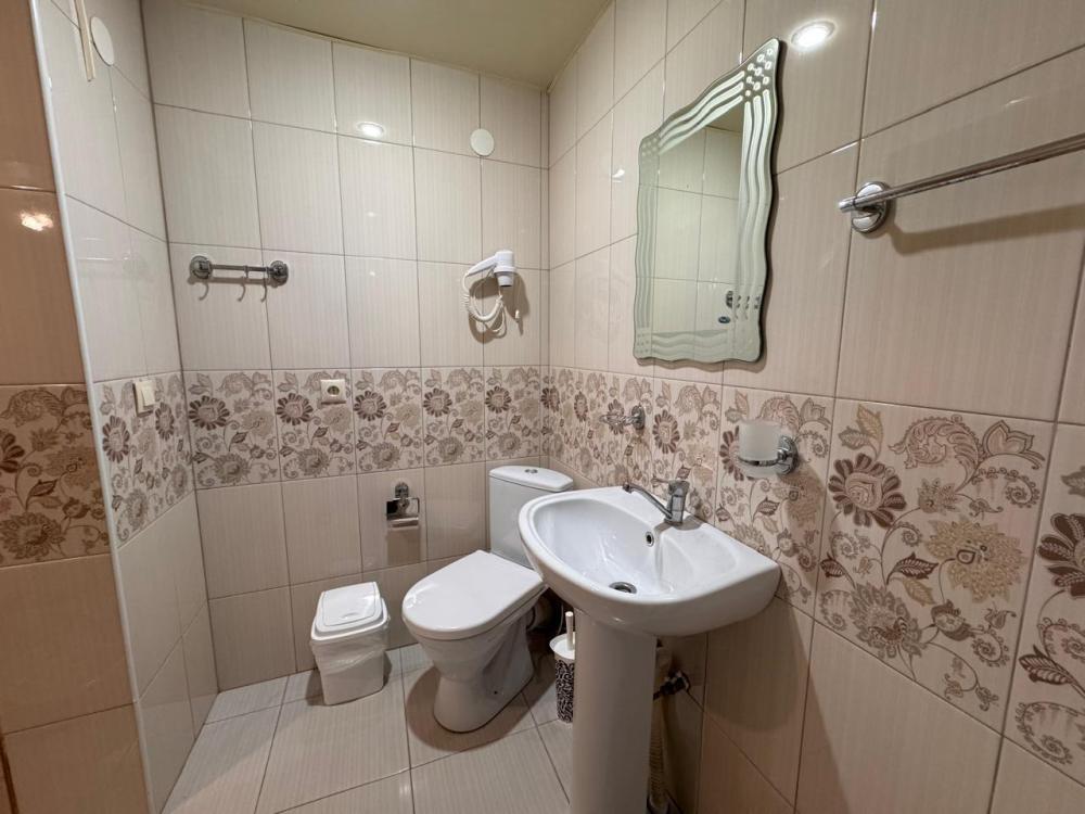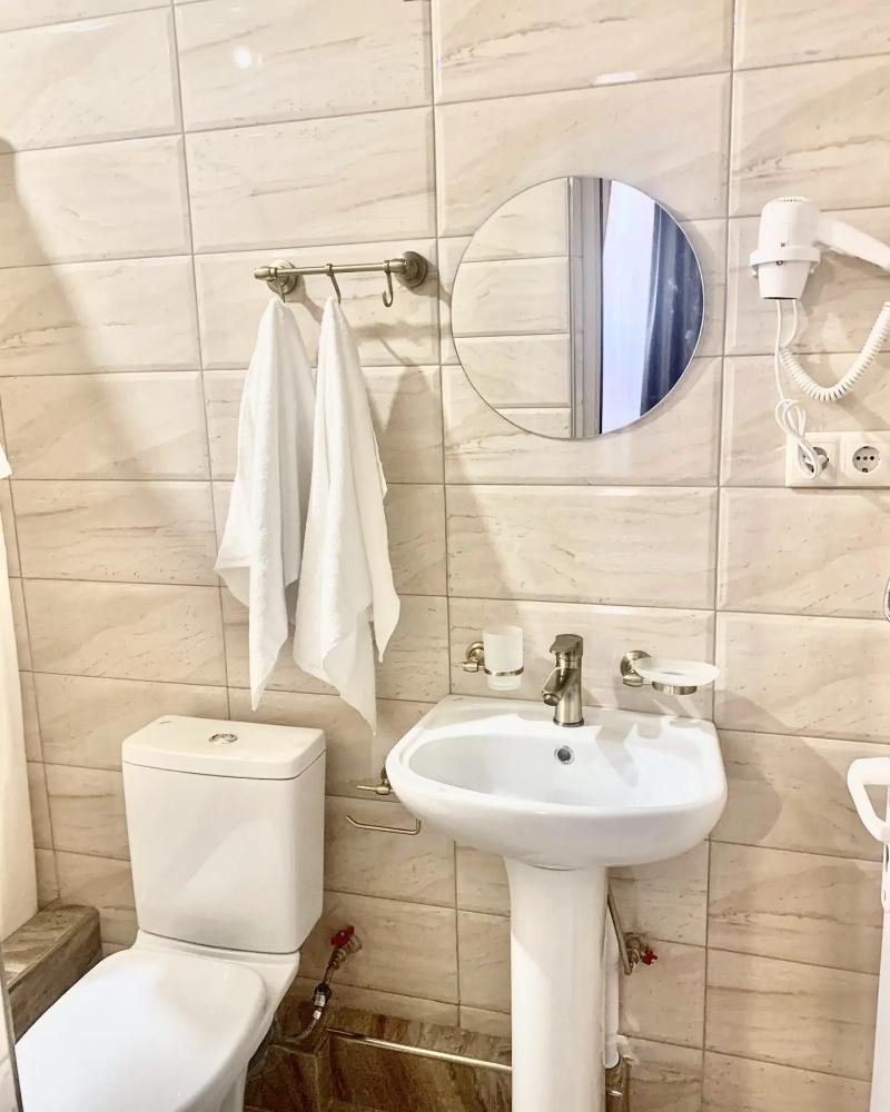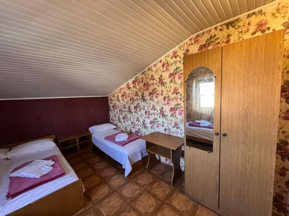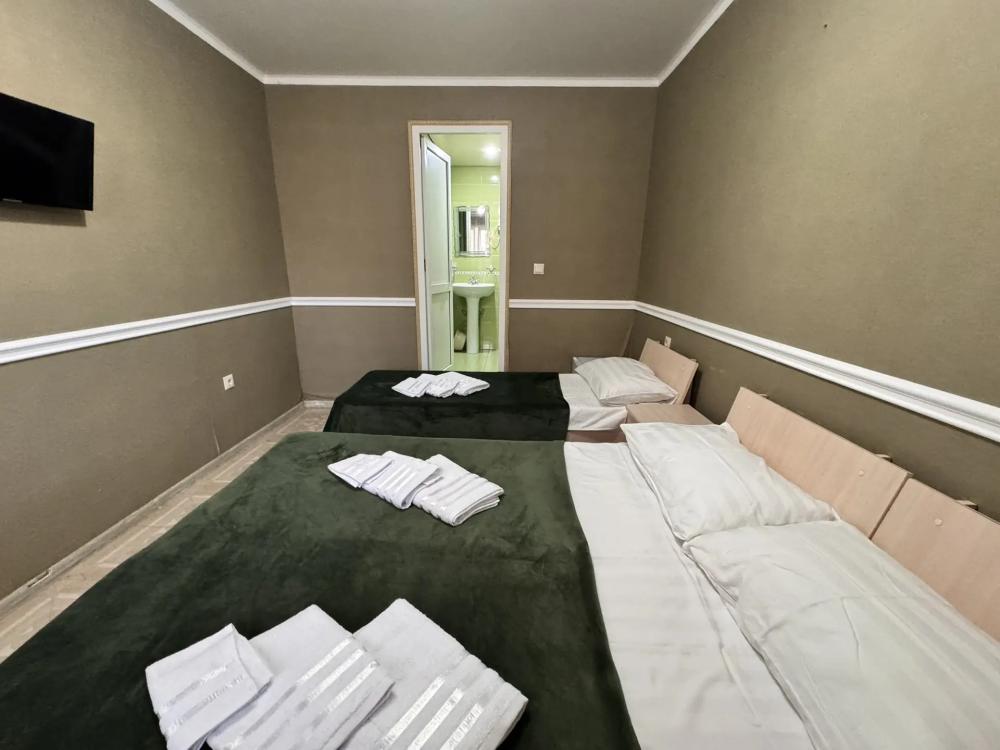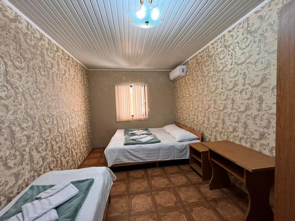 Уютный трехместный номер (19 м²) с общим балконом по доступной цене — отличный вариант для небольшой семьи или компании друзей. Вместимость 3 основных места; возможно бесплатно разместить ребёнка до 7 лет без дополнительного места. Спальные места двуспальная кровать; односпальная кровать. Вид из окна внутренний двор;. город. Оснащение номера кондиционер; холодильник; Wi‑Fi; стол; шкаф для одежды; прикроватные тумбочки. Общая кухня (расположена на этаже) плита; микроволновая печь; холодильник; чайник; комплект посуды для приготовления и приёма пищи. Общий санузел (расположен на этаже) душ; туалет; раковина; зеркало; комплект полотенец. На территории гостевого дома бесплатная парковка; бассейн; детская площадка; летняя кухня; оборудованные места для принятия солнечных ванн (шезлонги, зонты от солнца); лавки для отдыха; зона барбекю. Условия проживания заезд: с 14:00; выезд: до 12:00. Дополнительные услуги трансфер от/до аэропорта и ж/д вокзала (по договорённости). Гостевой дом «Сакура» славится гостеприимством и уютной атмосферой, что подтверждается положительными отзывами гостей.
