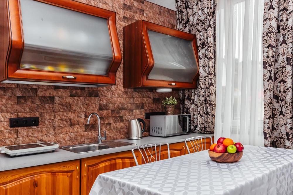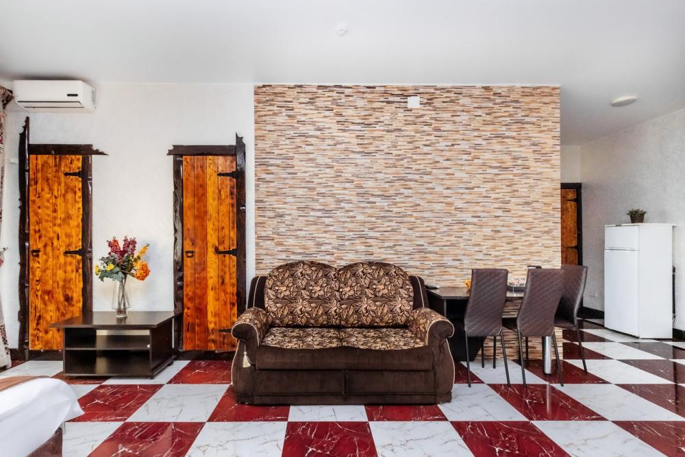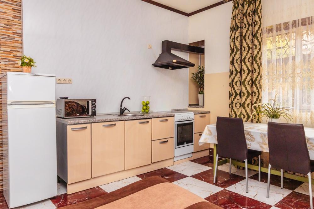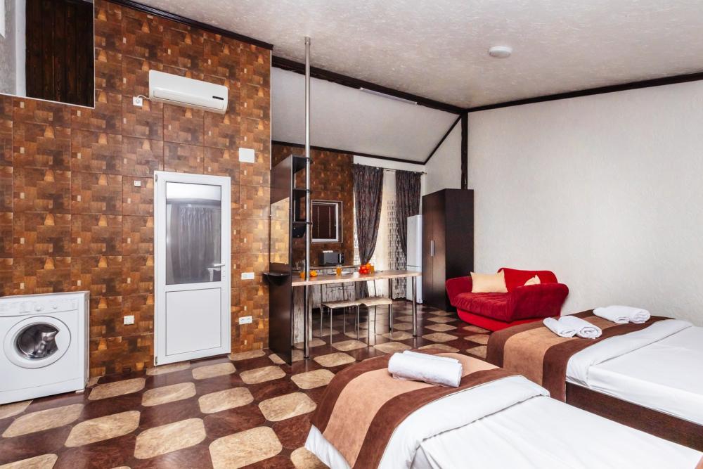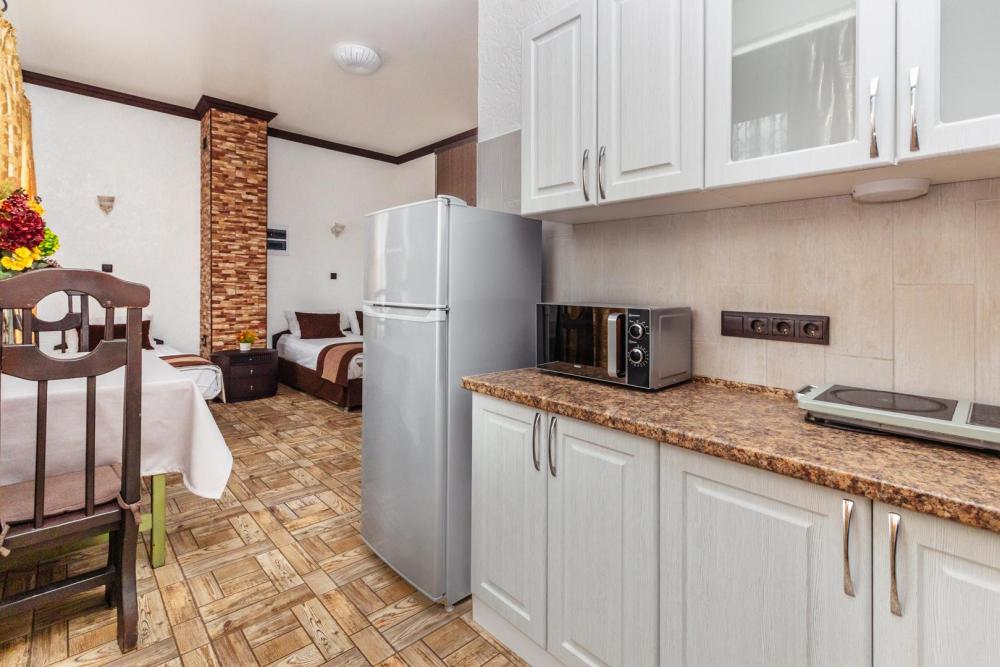 Просторные апартаменты с вместимостью до 5 человек, собственным санузлом и кухней. Из оснащения есть вся необходимая бытовая техника и мебель, которая может потребоваться для комфортного отдыха при любой длительности проживании.
