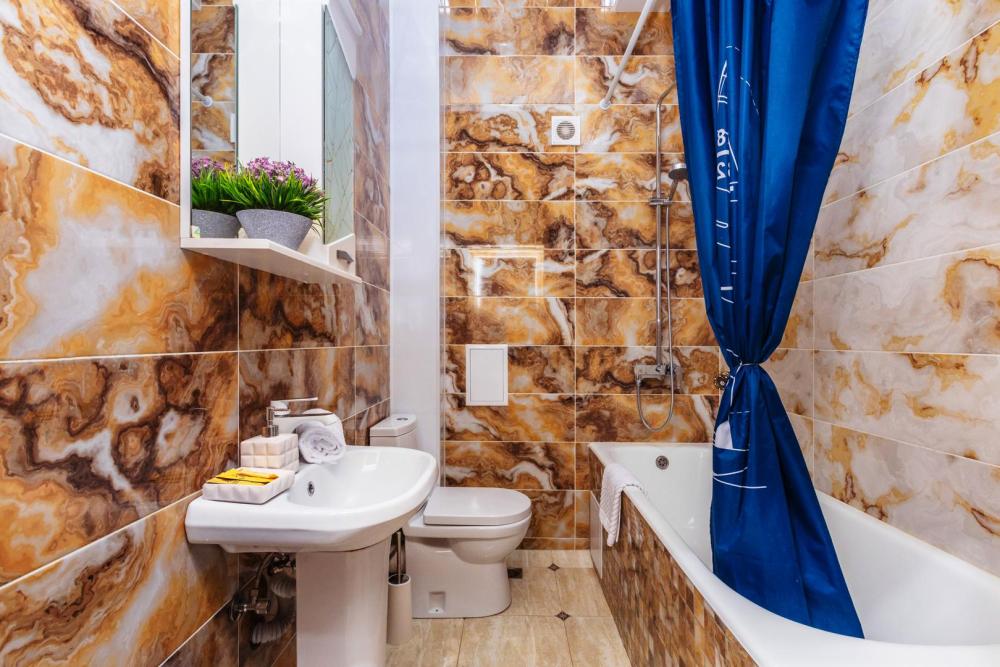 Просторная студия с площадью в 49м2, с собственной ванной комнатой, большой кухней и широким балконом не оставят равнодушных многих. Оснащение: 1 двуспальная кровать и 1 односпальная. Из оснащения есть вся необходимая бытовая техника и мебель, которая может потребоваться для комфортного отдыха при любой длительности проживании.
