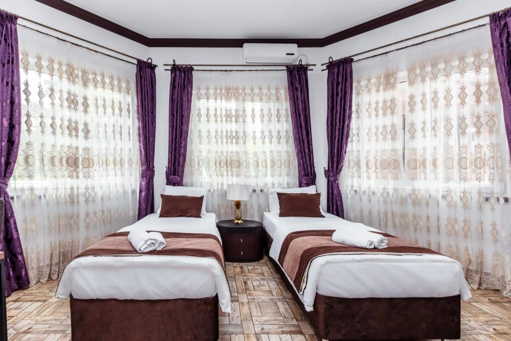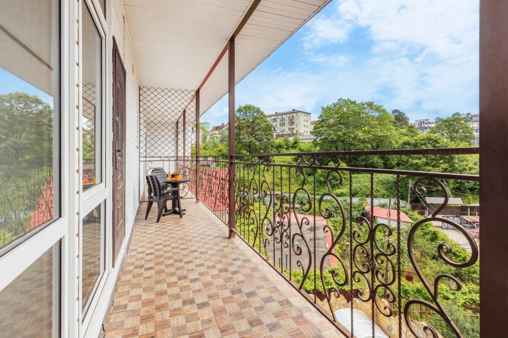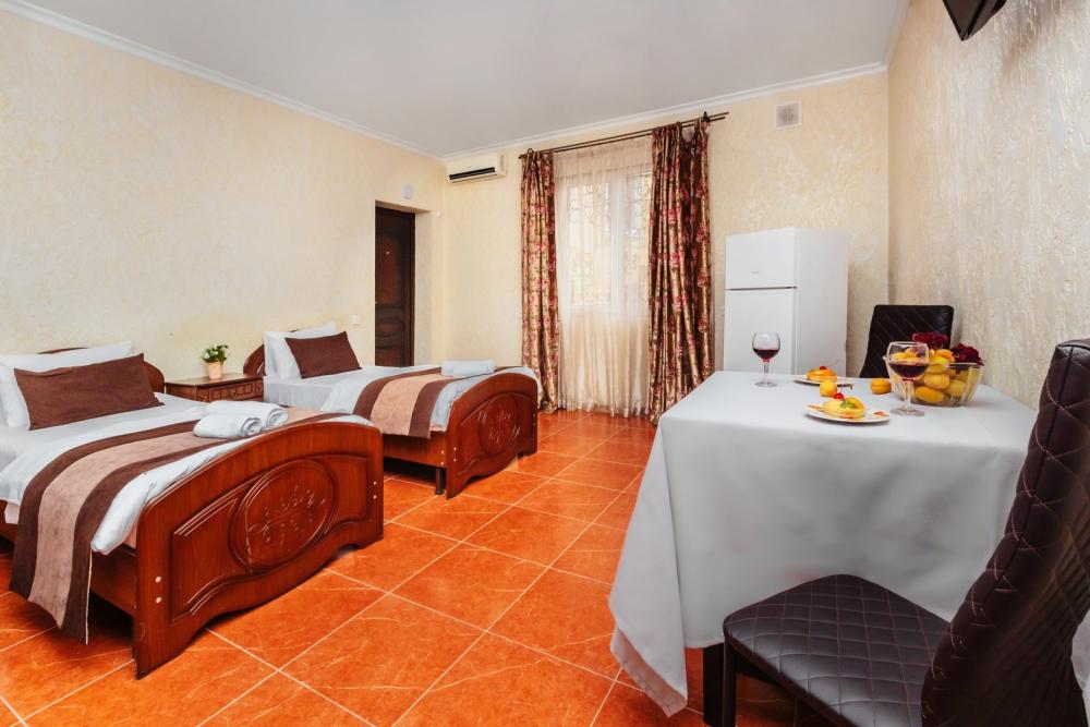 Комната для проживания 1-3 человек. Пользуется популярностью у семей отдыхающих с ребенком.Оснащена: кондиционером, телевизором, холодильником, чайной станции, рабочим столом для удобства чтения и работы. Собственный санузел включает ванную с душем и основными туалетными принадлежности. В случае необходимости приготовления пищи круглосуточно работает общая кухня с обеденным залом и верандой.