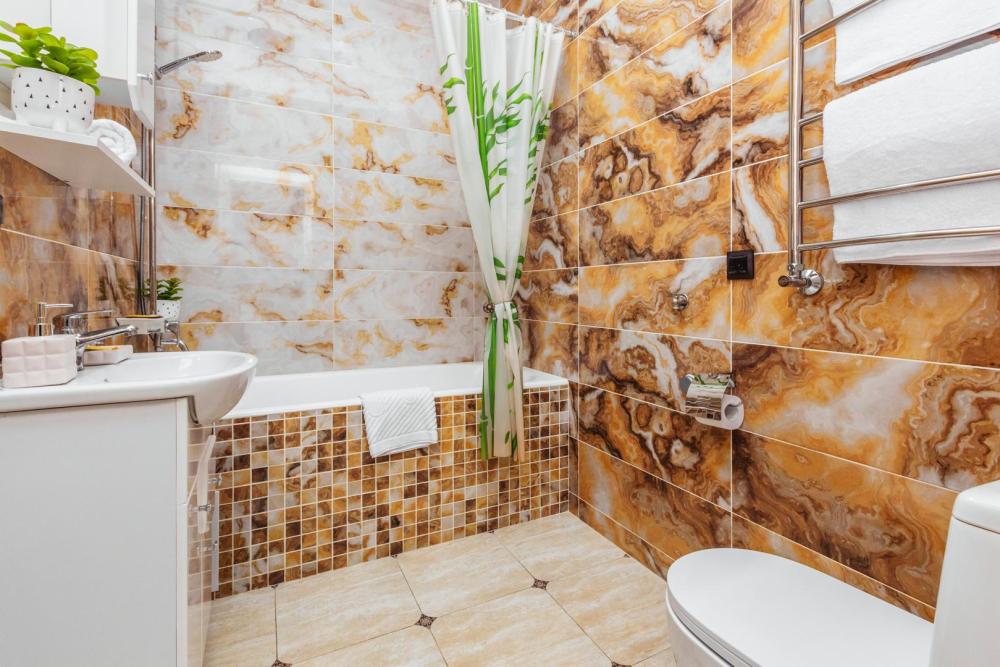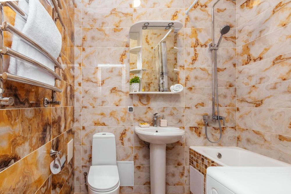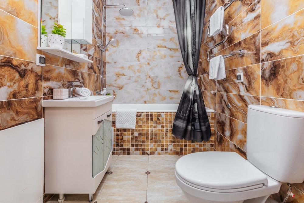 Большая студия (45м2), на 3 человек, с собственной ванной комнатой и кухней. Из оснащения есть вся необходимая бытовая техника и мебель, которая может потребоваться для комфортного отдыха при любой длительности проживании.