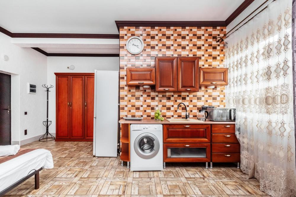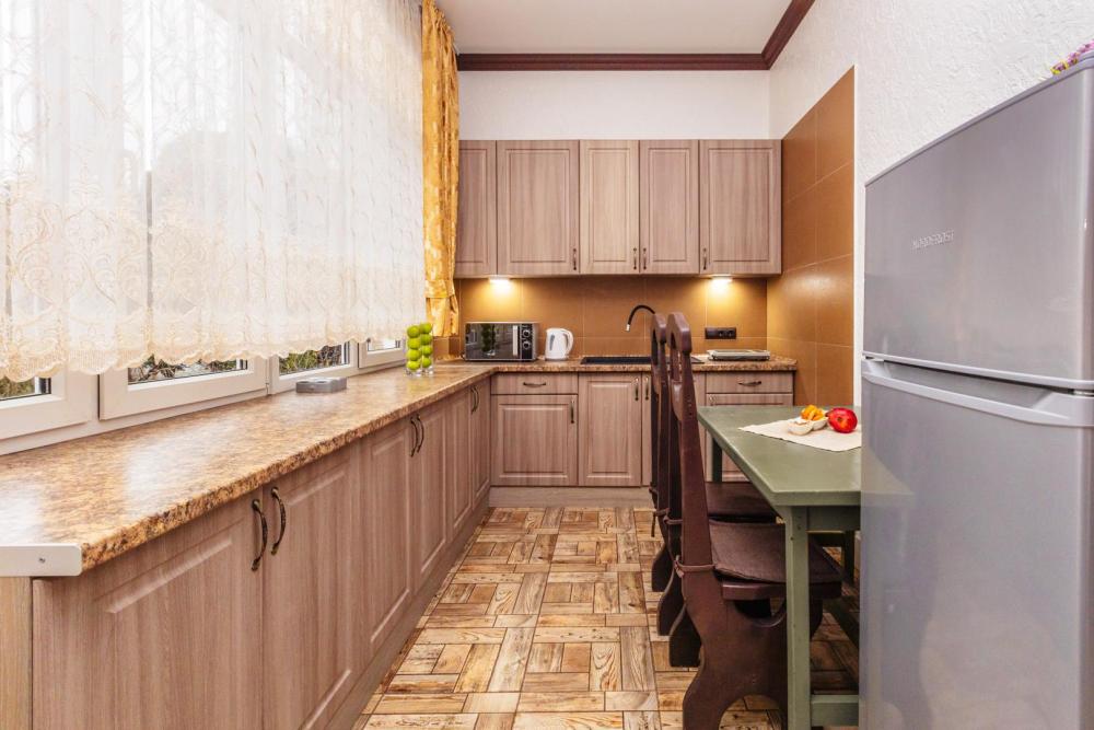 Просторные апартаменты с большой современной кухней и собственной ванной комнатой. Вместимость апартаментов до 3 человек. Из оснащения есть вся необходимая бытовая техника и мебель, которая может потребоваться для комфортного отдыха при любой длительности проживании.