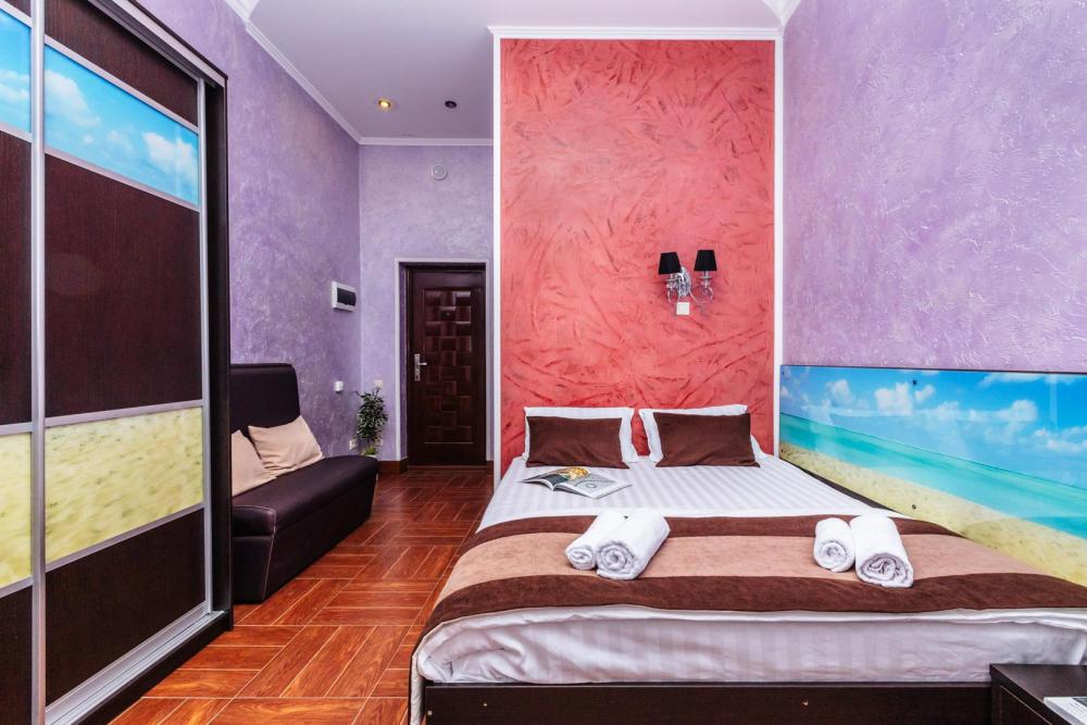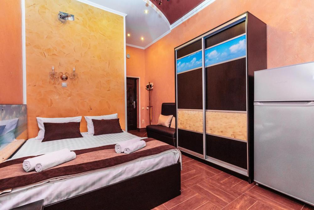 Апартаменты с уникальным дизайном, кухней, собственным санузлом и спальней с большой и удобной двуспальной кроватью. Дополнительная одноместная кровать позволит вместе разместиться семейным парам с ребенком. Из оснащения есть вся необходимая бытовая техника и мебель, которая может потребоваться для комфортного отдыха при любой длительности проживания.