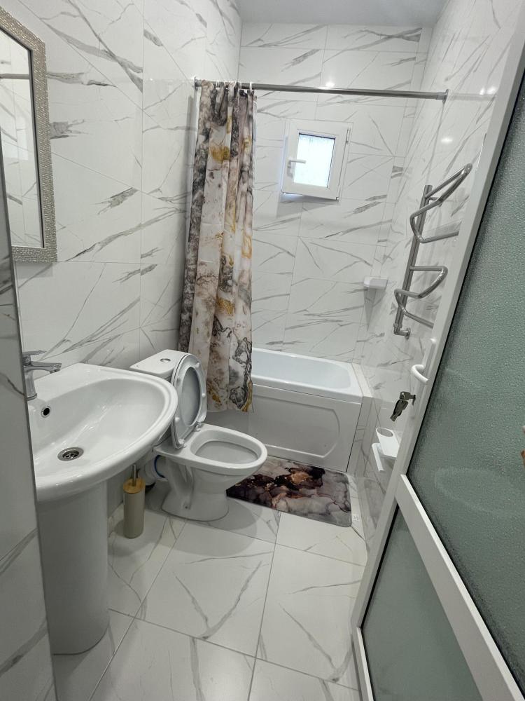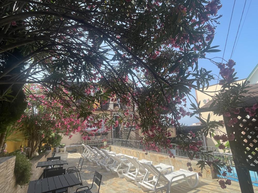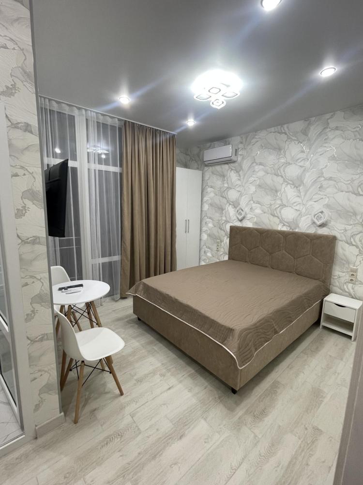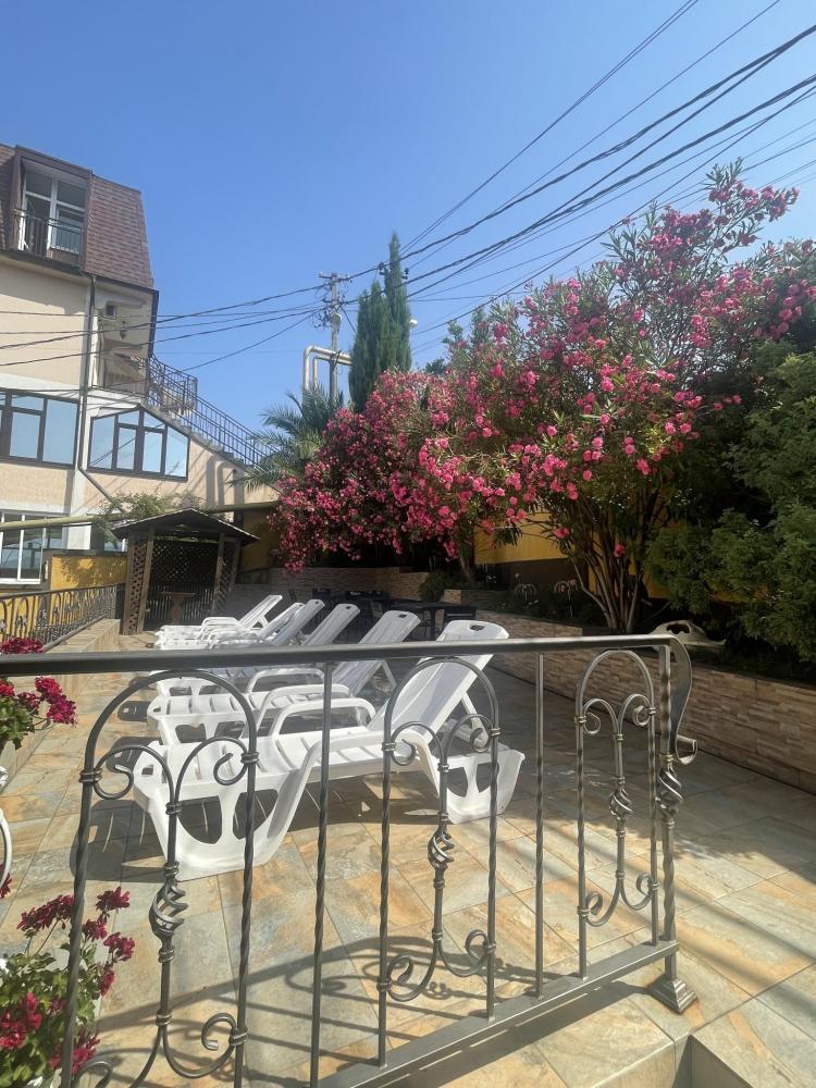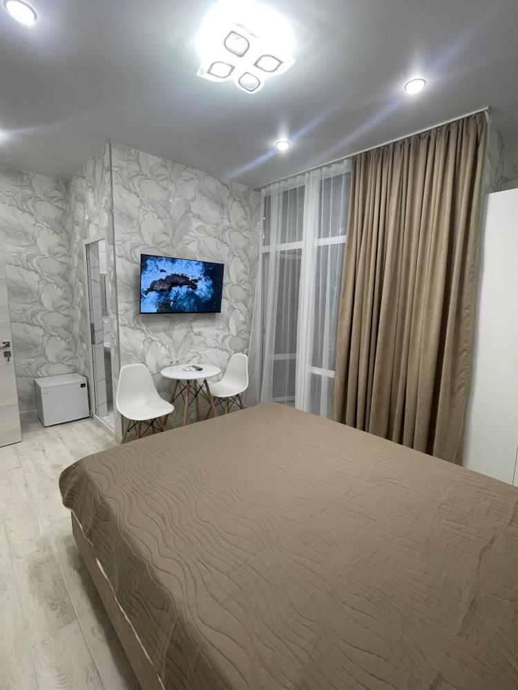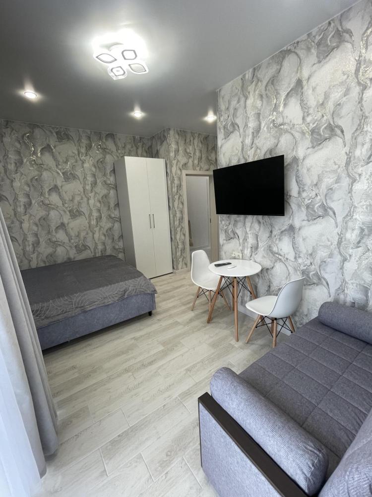 Апартаменты с диваном и с видом на море, со всем необходимым для комфортного проживания и отдыха. Апартамент оснащён собственным санузлом, холодильником, Смарт телевизором, кондиционером, чайником, обеденной зоной, феном, балконом, на балконах установлены кресла и столик. Спальные места -двуспальная кровать с ортопедическим матрасом и диван-кровать.