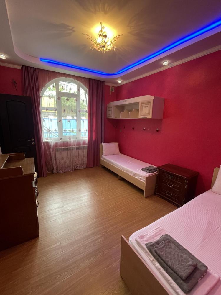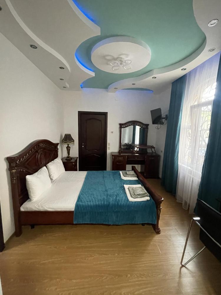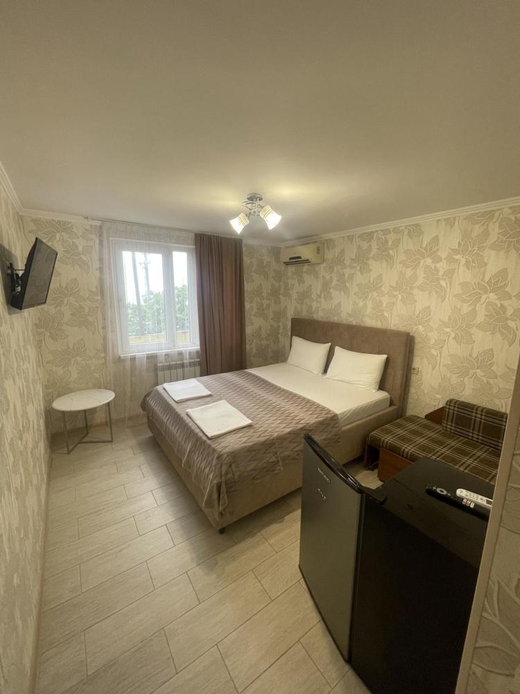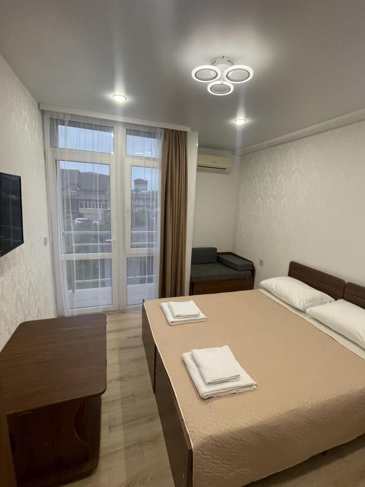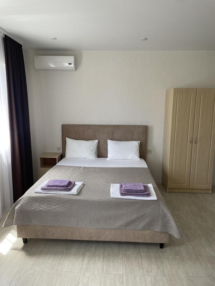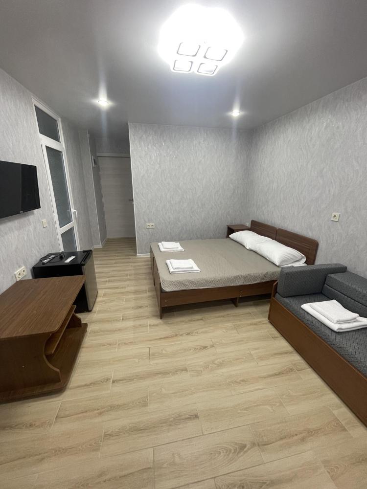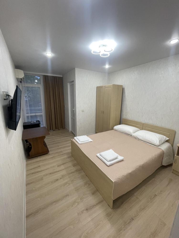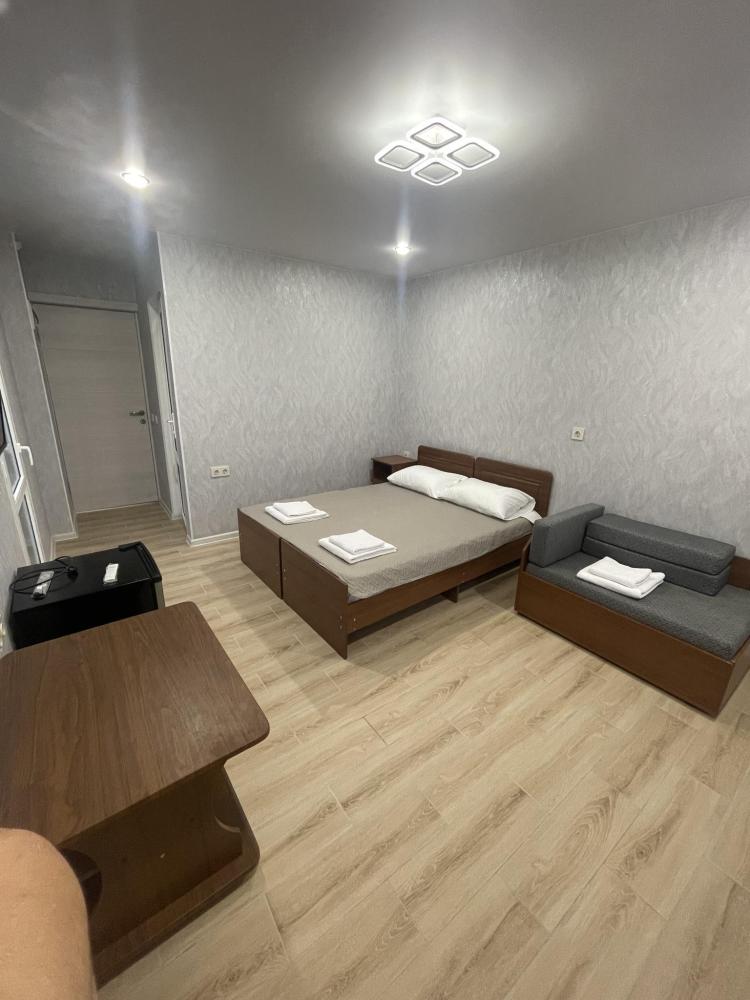 Люкс-просторный, светлый со всем необходимым для комфортного проживания и отдыха. Комната оснащена собственным санузлом, холодильником, Смарт телевизором, кондиционером, чайником, феном, балконом. Спальные места-двуспальная кровать и диван-кровать.