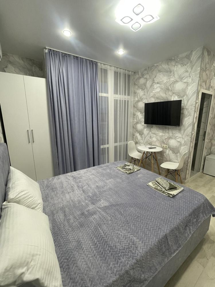 Апартамент оснащён собственным санузлом, холодильником, Смарт телевизором, кондиционером, чайником, обеденной зоной, феном, балконом, на балконах установлены кресла и столик. Спальные места -двуспальная кровать с ортопедическим матрасом.