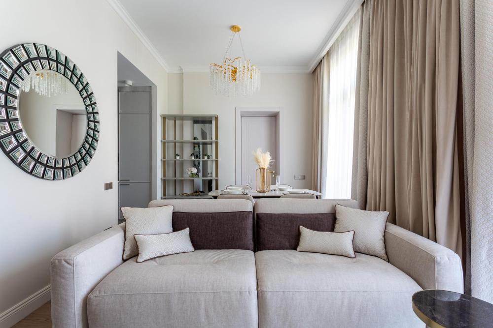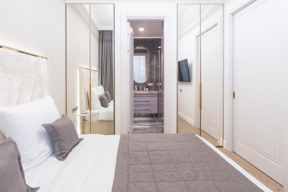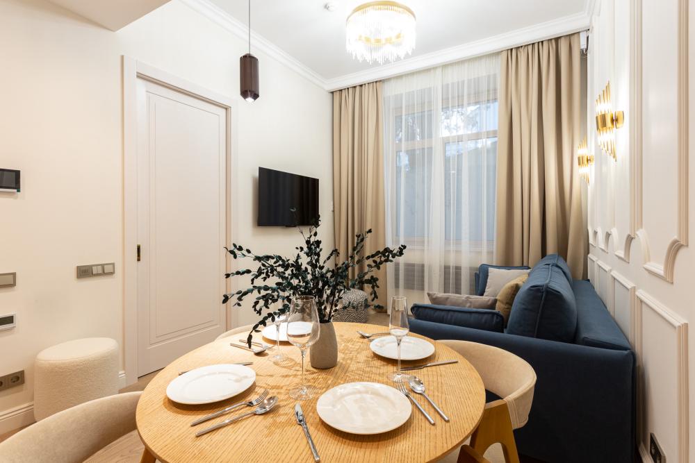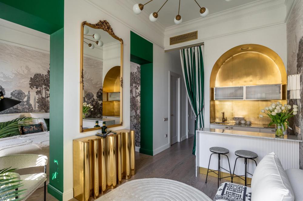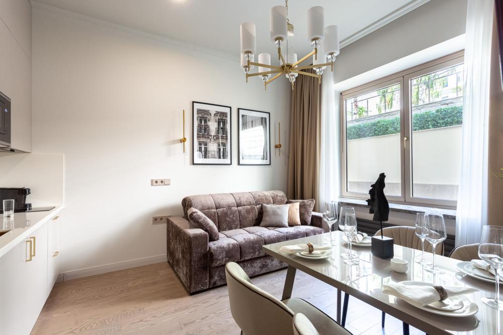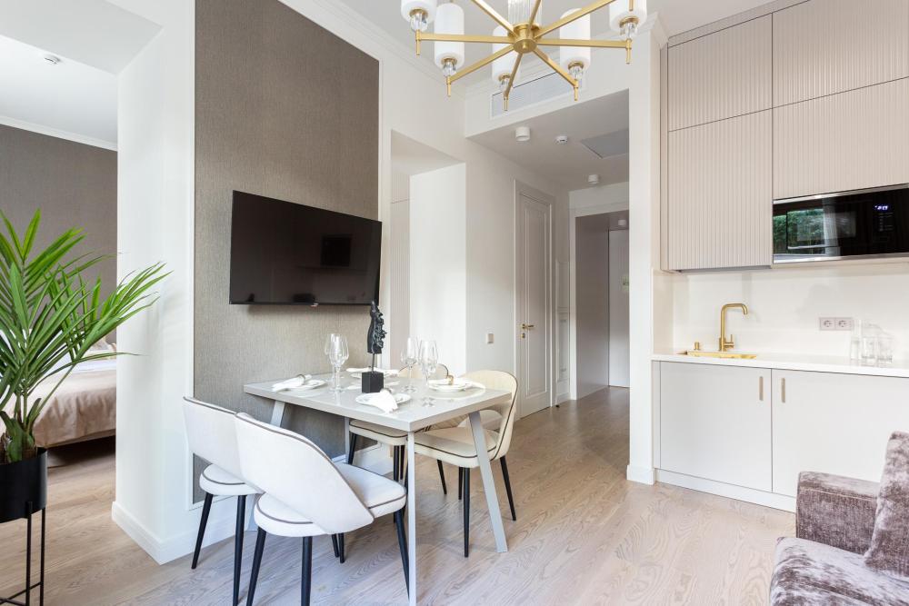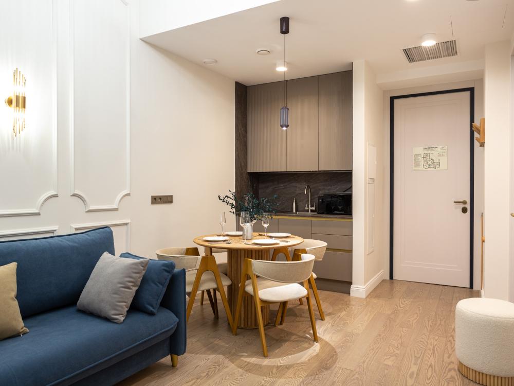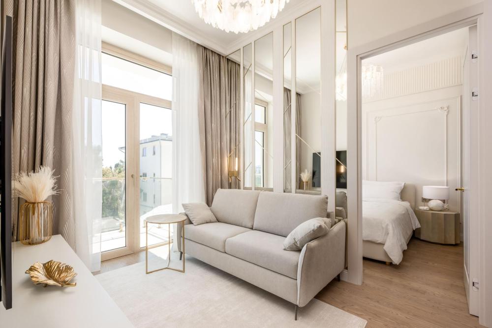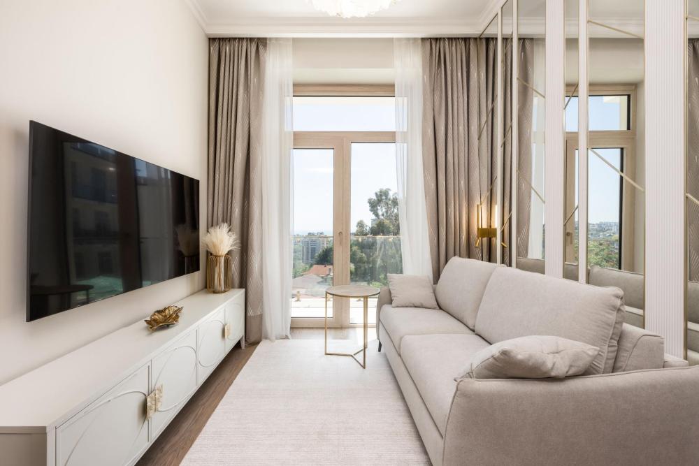 Просторный апартамент с видом на парк, площадью 35 м² разделён функциональной декоративной перегородкой, отделяющей спальную зону с двуспальной кроватью от гостиной с диваном. ✔️В каждом апартаменте есть кухонная зона, электробытовые приборы, вся необходимая посуда, холодильник встроенный двухкамерный; ✔️Комфортная температура в помещении поддерживается теплыми полами зимой и кондиционером летом, регулируется индивидуально для Вас; ✔️Wi-fi (100 Мб); ✔️Кровать "King size" 180*200 см с ортопедическим матрасом гарантирует здоровый и крепкий сон. В гостиной раскладной диван (спальное место 190*205 см); ✔️Белоснежное постельное белье, махровые полотенца, мягкие халаты и тапочки; ✔️Средства индивидуальной гигиены; ✔️Консьерж-сервис закажет для Вас билеты на мероприятия, организует морскую прогулку, забронирует яхту, позаботится о доставке и возьмет под свой контроль другие дела, освободив Вам время для отдыха.
