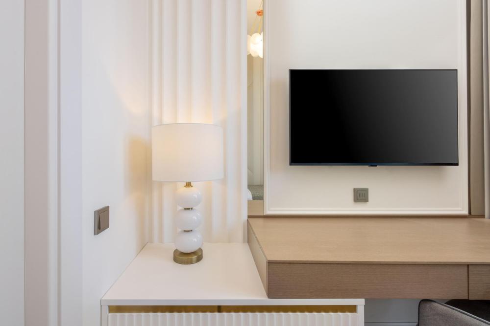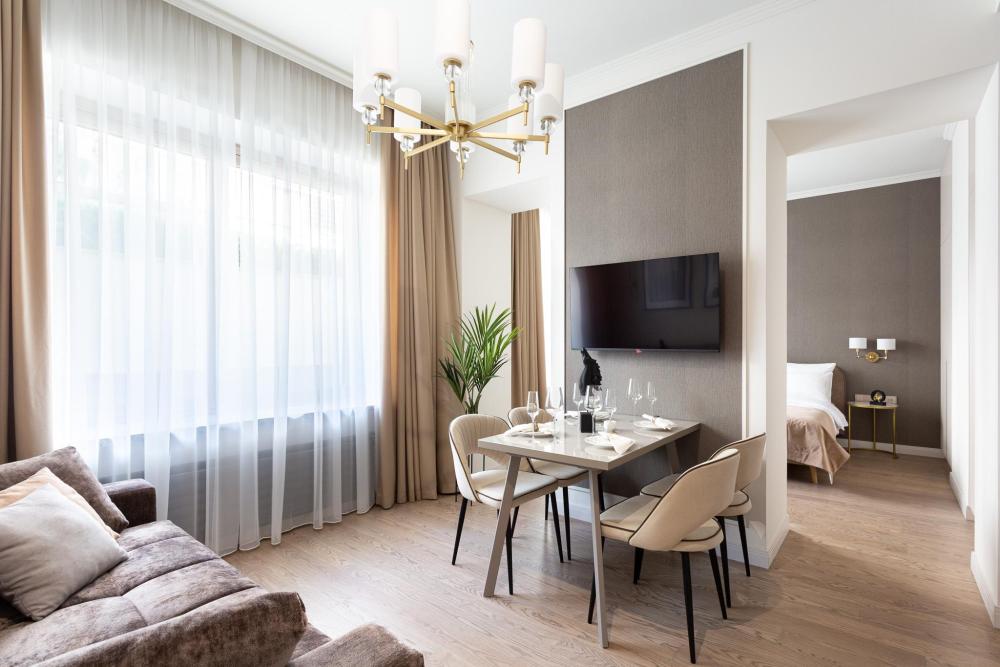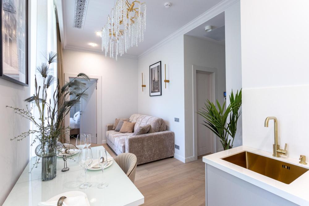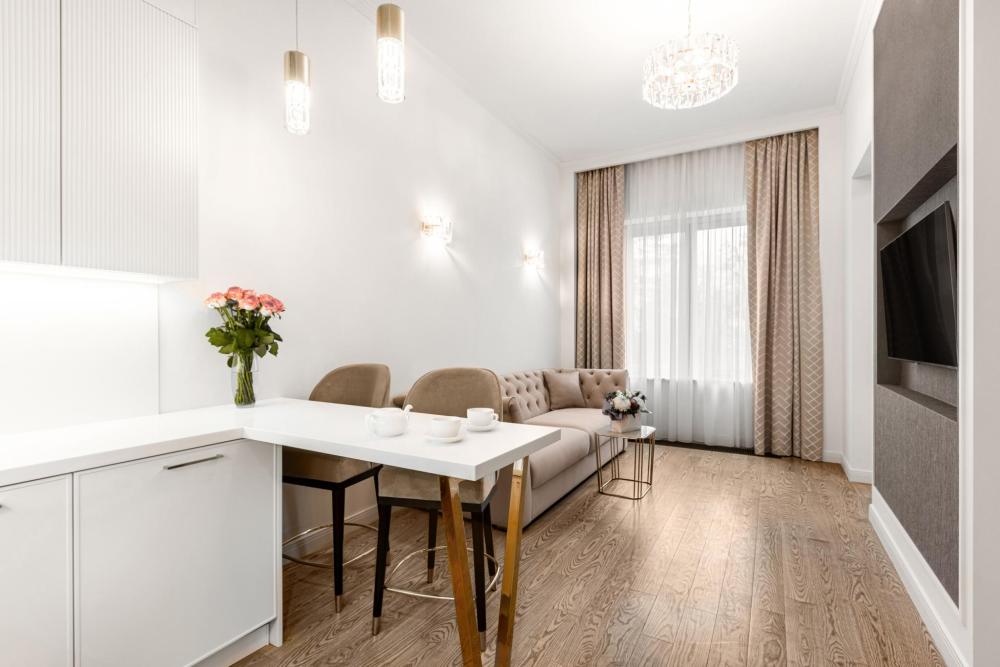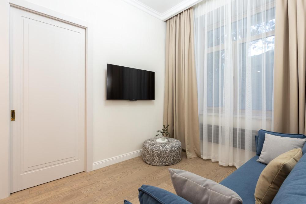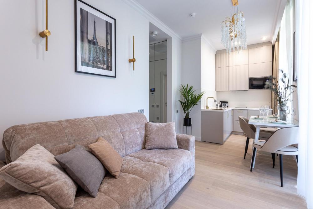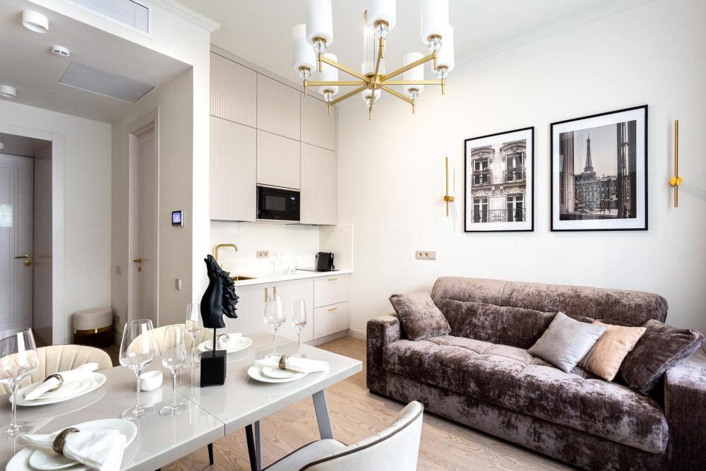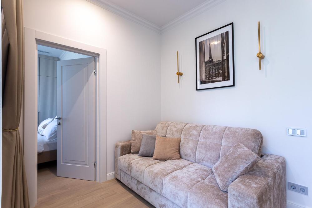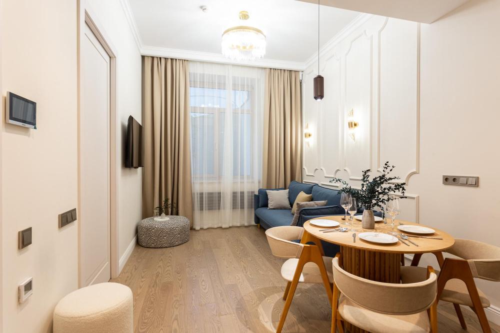 Просторный апартамент с видом на парк, площадью 35 м² разделён функциональной декоративной перегородкой, отделяющей спальную зону с двуспальной кроватью от гостиной с диваном. ✔️В каждом апартаменте есть кухонная зона, электробытовые приборы, вся необходимая посуда, холодильник встроенный двухкамерный; ✔️Комфортная температура в помещении поддерживается теплыми полами зимой и кондиционером летом, регулируется индивидуально для Вас; ✔️Wi-fi (100 Мб); ✔️Кровать "King size" 180*200 см с ортопедическим матрасом гарантирует здоровый и крепкий сон. В гостиной раскладной диван (спальное место 190*205 см); ✔️Белоснежное постельное белье, махровые полотенца, мягкие халаты и тапочки; ✔️Средства индивидуальной гигиены; ✔️Консьерж-сервис закажет для Вас билеты на мероприятия, организует морскую прогулку, забронирует яхту, позаботится о доставке и возьмет под свой контроль другие дела, освободив Вам время для отдыха.