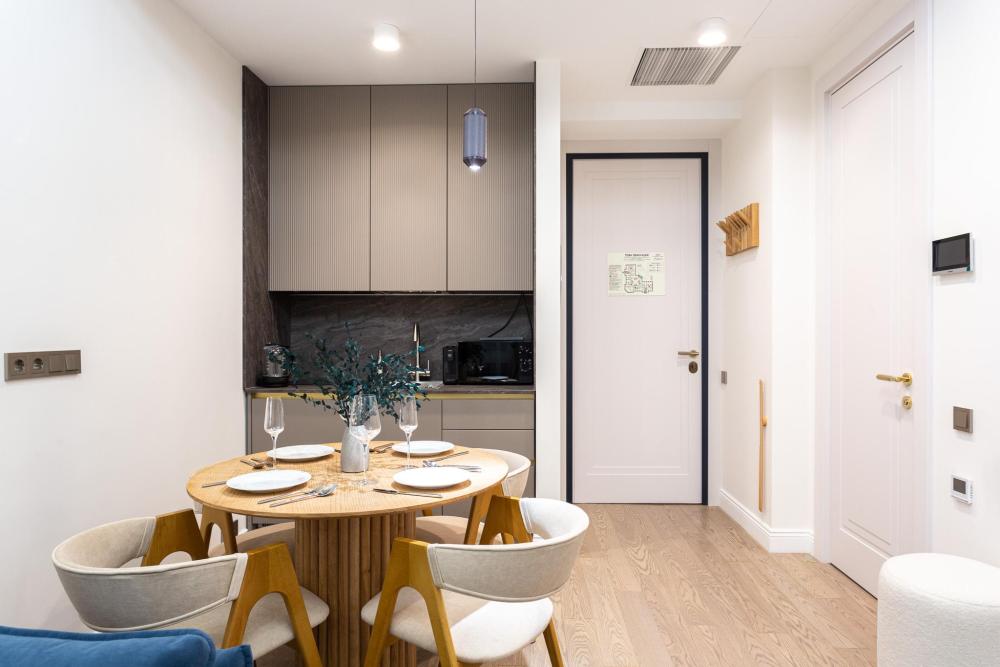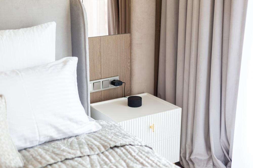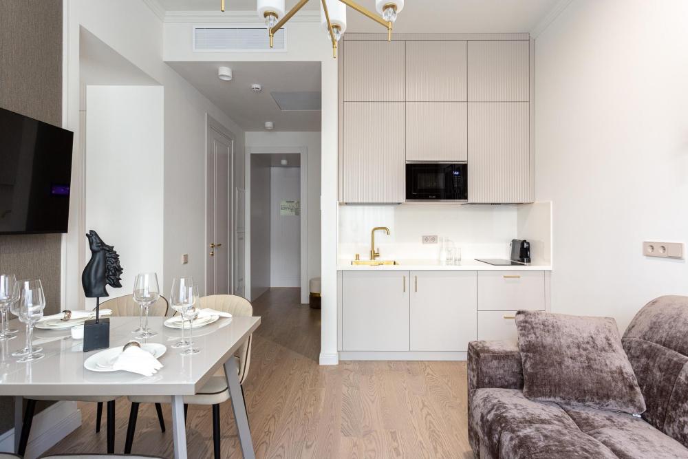 Просторная и комфортабельная студия площадью 36 м² выполнена в современном и эргономичном дизайне, интерьер, оформленный в светлых тонах, создает располагающую к отдыху атмосферу. Апартамент расположен на -1 этаже, при этом отсутствие шикарного вида компенсирует эстетика и продуманность каждой детали интерьера. ✔️В каждой студии есть кухонная зона, электробытовые приборы, вся необходимая посуда, холодильник встроенный однокамерный; ✔️Комфортная температура в помещении поддерживается теплыми полами зимой и кондиционером летом, регулируется индивидуально для Вас; ✔️Wi-fi (100 Мб); ✔️Кровать "Queen size" 160*200 см с ортопедическим матрасом гарантирует здоровый и крепкий сон; ✔️Белоснежное постельное белье, махровые полотенца, мягкие халаты и тапочки; ✔️Средства индивидуальной гигиены; ✔️Консьерж-сервис закажет для Вас билеты на мероприятия, организует морскую прогулку, забронирует яхту, позаботится о доставке и возьмет под свой контроль другие дела, освободив Вам время для отдыха. Студия рассчитана на двоих Гостей + дополнительно возможно разместить 1 ребёнка (0-4 лет), без предоставления спального места.