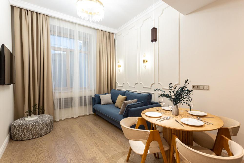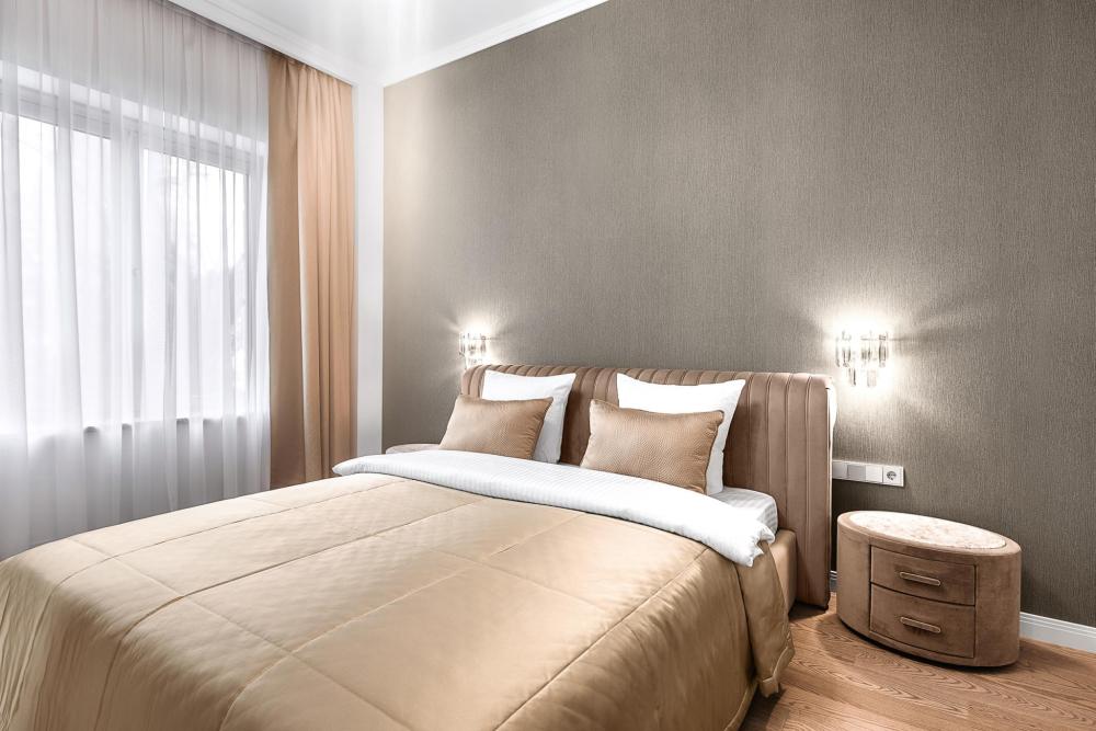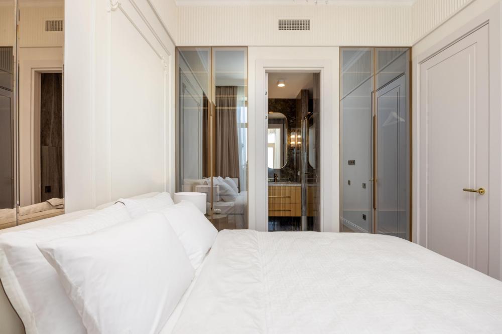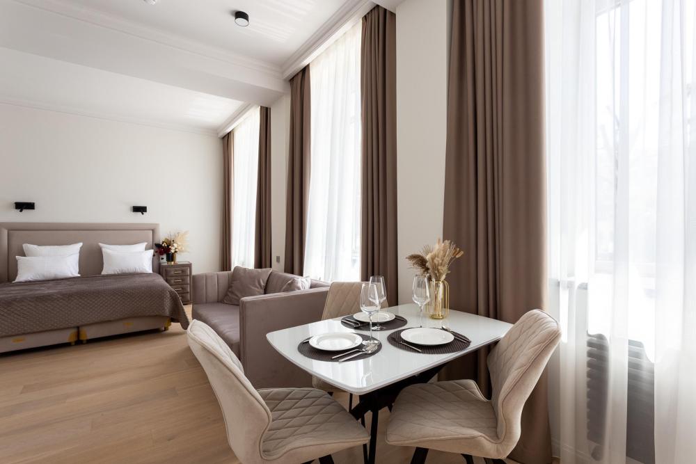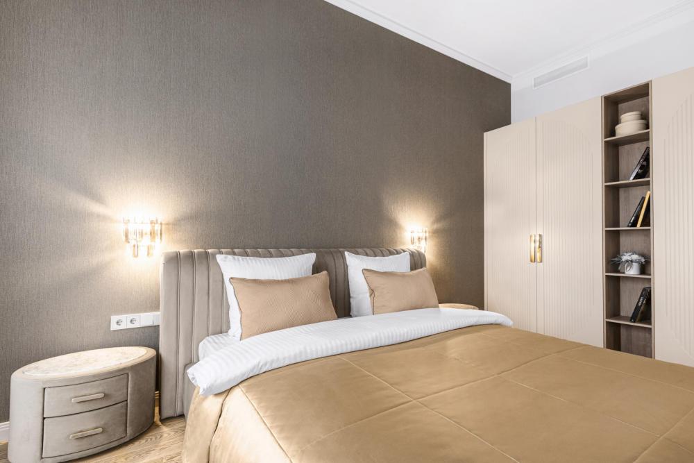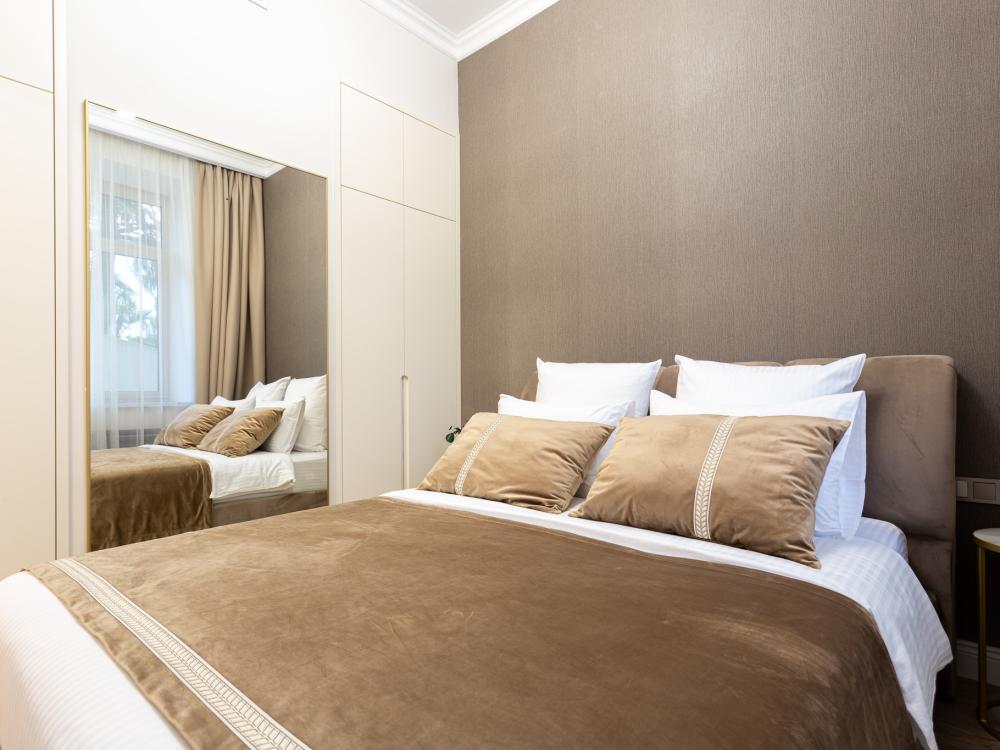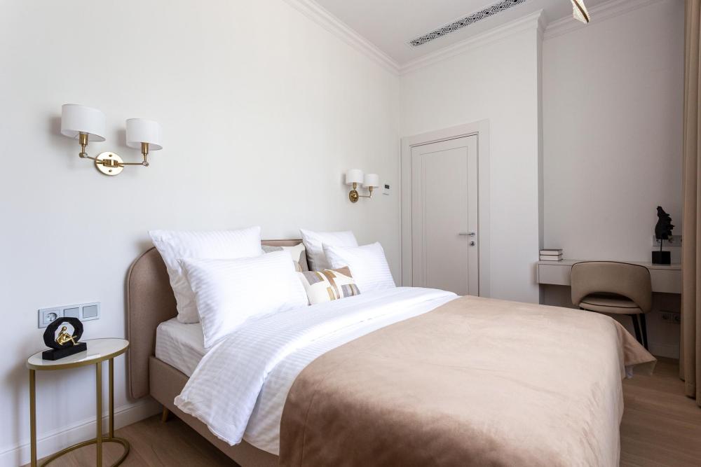 Эксклюзивный и единственный в своем роде апартамент высокого уровня, для Гостей, ценящих качество, стиль, комфорт и индивидуальность. Просторный апартамент с балконом и великолепным видом на парк и город, площадью 118 м² распланирован в гостиную с зоной кухни, спальню и самостоятельную студию с отдельным входом, которую можно использовать для персонала. В отделке выбраны материалы природного происхождения, пол и стены отделаны траониксом, привезенным из Ирана. Мебель, текстиль и декор выполнены по индивидуальному заказу в единственном экземпляре. ✔️В каждом апартаменте есть кухонная зона, электробытовые приборы, вся необходимая посуда, холодильник встроенный полноразмерный; ✔️Комфортная температура в помещении поддерживается теплыми полами зимой и кондиционером летом, регулируется индивидуально для Вас; ✔️Wi-fi (100 Мб); ✔️Кровать "King size" 180*200 см с ортопедическим матрасом гарантирует здоровый и крепкий сон; ✔️Белоснежное постельное белье, махровые полотенца, мягкие халаты и тапочки; ✔️Средства индивидуальной гигиены. Апартамент рассчитан на четверых Гостей + дополнительно возможно разместить 1 ребёнка (0-7 лет), без предоставления спального места.