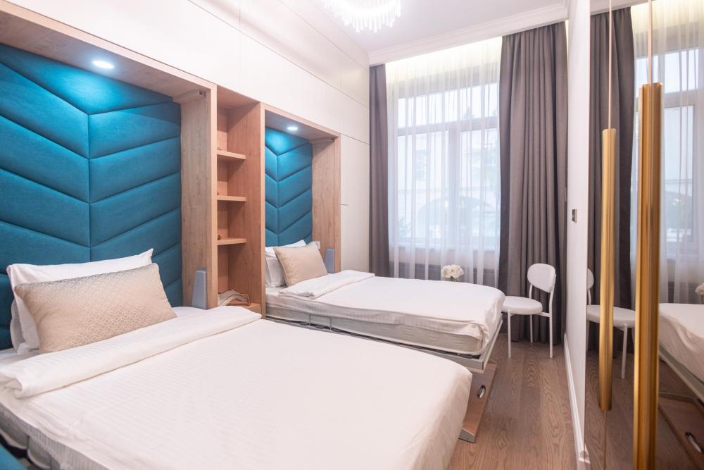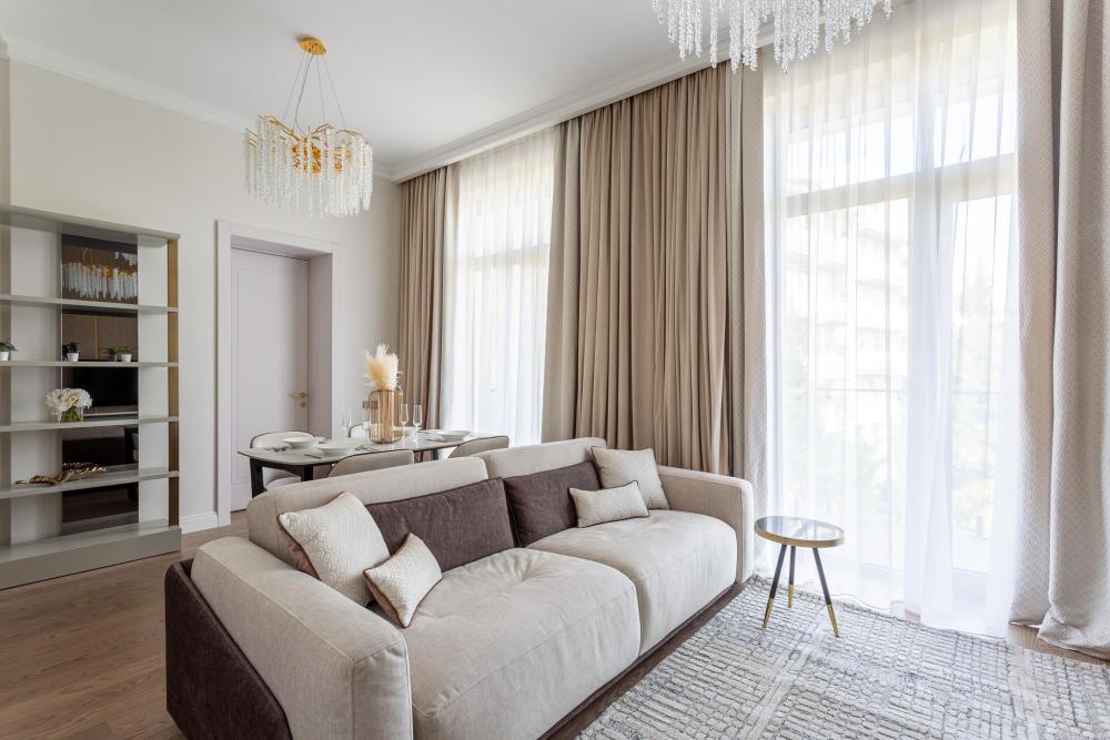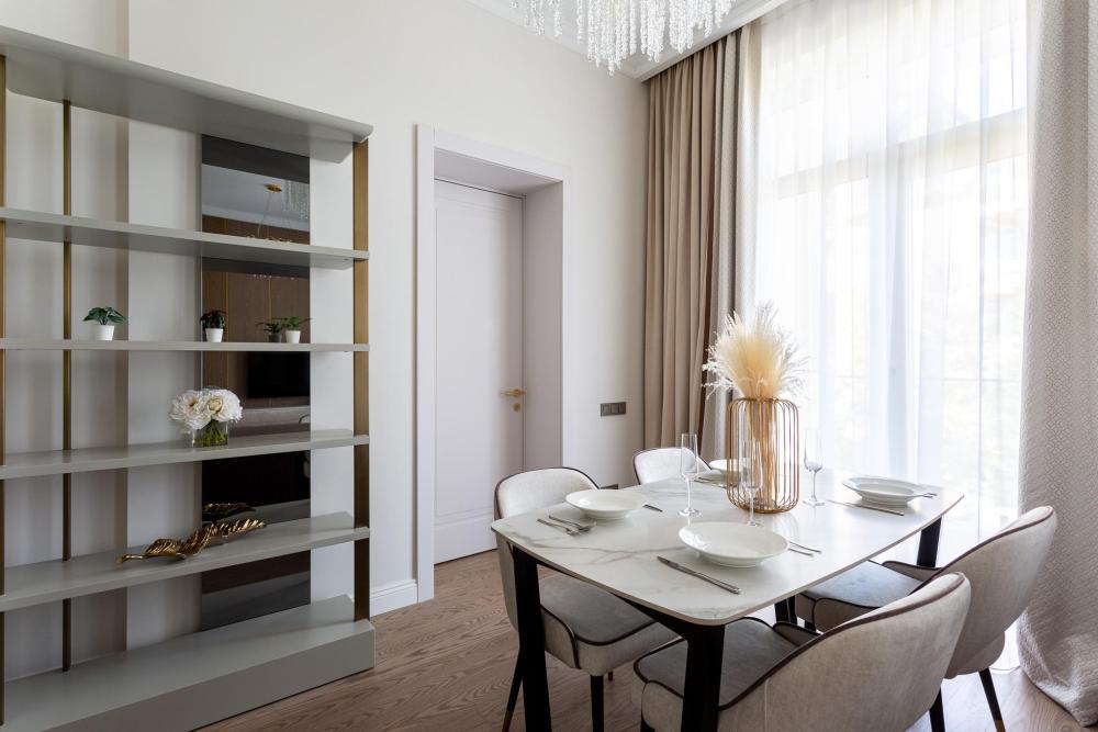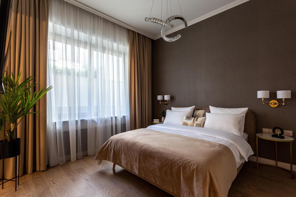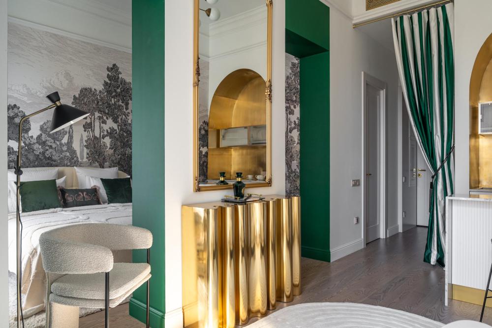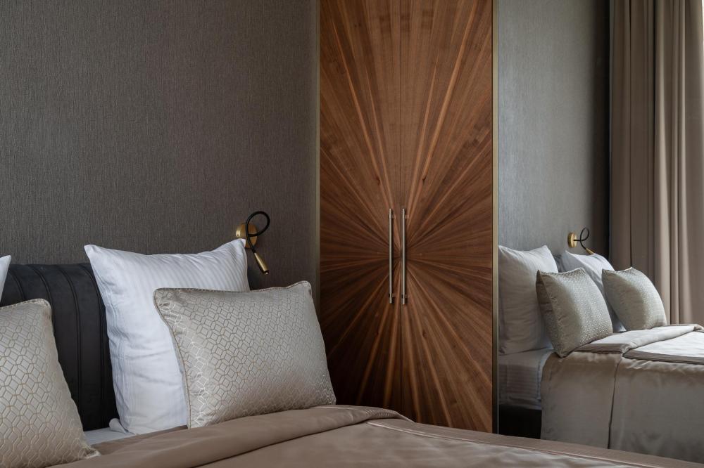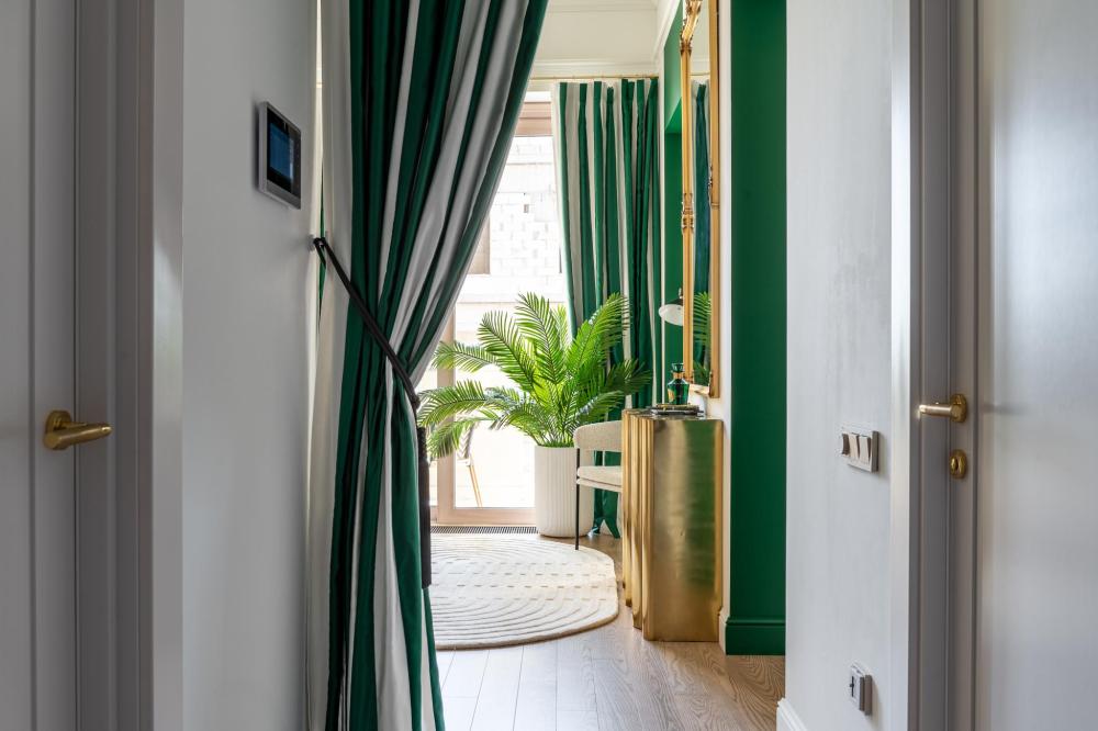 Эксклюзивный и единственный в своем роде апартамент высокого уровня, для Гостей, ценящих качество, стиль, комфорт и индивидуальность. Просторный апартамент с балконом и великолепным видом на парк и город, площадью 118 м² распланирован в гостиную с зоной кухни, спальню и самостоятельную студию с отдельным входом, которую можно использовать для персонала. В отделке выбраны материалы природного происхождения, пол и стены отделаны траониксом, привезенным из Ирана. Мебель, текстиль и декор выполнены по индивидуальному заказу в единственном экземпляре. ✔️В каждом апартаменте есть кухонная зона, электробытовые приборы, вся необходимая посуда, холодильник встроенный полноразмерный; ✔️Комфортная температура в помещении поддерживается теплыми полами зимой и кондиционером летом, регулируется индивидуально для Вас; ✔️Wi-fi (100 Мб); ✔️Кровать "King size" 180*200 см с ортопедическим матрасом гарантирует здоровый и крепкий сон; ✔️Белоснежное постельное белье, махровые полотенца, мягкие халаты и тапочки; ✔️Средства индивидуальной гигиены. Апартамент рассчитан на четверых Гостей + дополнительно возможно разместить 1 ребёнка (0-7 лет), без предоставления спального места.