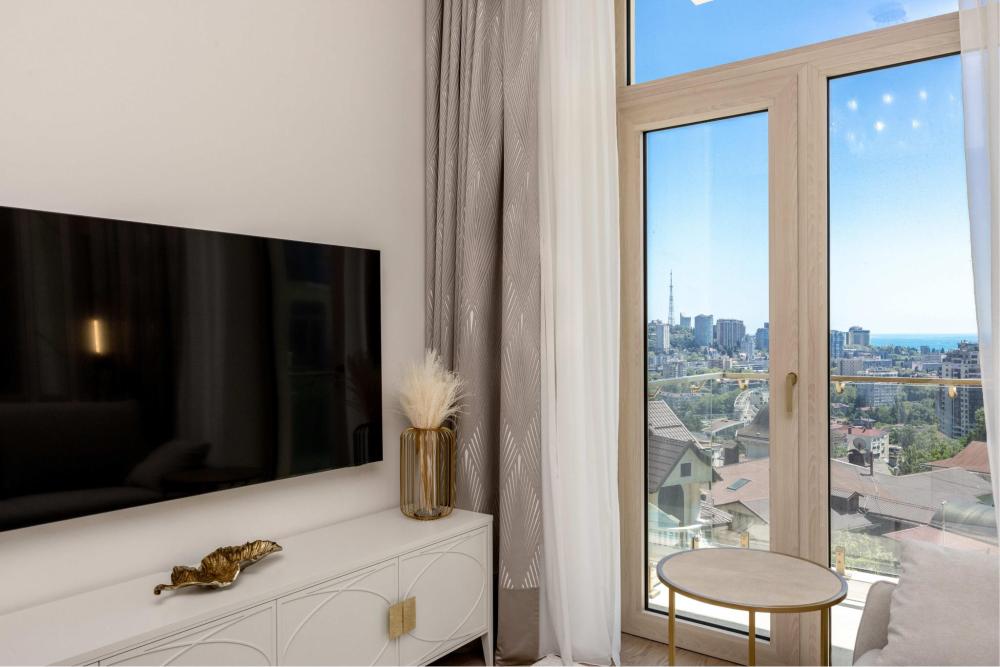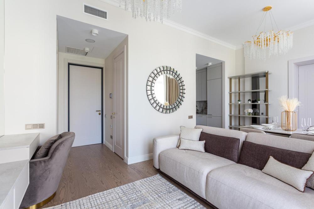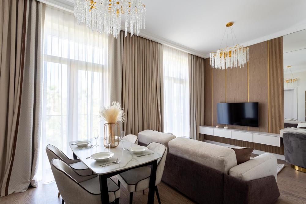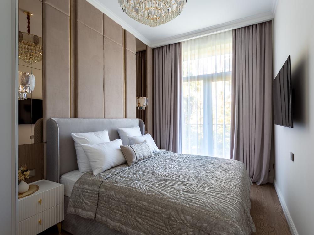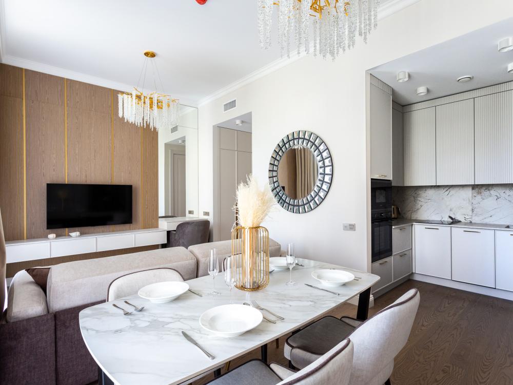 Апартамент расположен на 3 этаже. Вид из окон открывается на вечнозеленый парк, вид на море с балкона ✔️Апартаменты площадью 62 м² выполнены в современном и эргономичном дизайне. Благодаря высоким потолкам и панорамному остеклению апартаменты обладают непередаваемым ощущением простора, которое усилено за счет светлого интерьера и изящной мебели; ✔️Кухня полностью укомплектована всей техникой и посудой; ✔️Комфортная температура в помещениях поддерживается теплыми полами зимой и кондиционером летом, регулируется индивидуально для вас; ✔️Wi-fi (100 Мб); ✔️Кровать "King size" 180*200 с ортопедическим матрасом, здоровый и крепкий сон гарантирован. В гостиной раскладной диван (спальное место 150*190 см); ✔️Белоснежное постельное белье и махровые изделия, в том числе мягкие халаты и тапочки; ✔️Одноразовые наборы и средства индивидуальной гигиены высокого уровня; ✔️Постирать, высушить и погладить – всё это можно сделать, не выходя из апартамента или делегировать нашей горничной; ✔️Консьерж-сервис закажет для вас билеты на мероприятия, организует морскую прогулку, забронирует яхту, позаботится о доставке и возьмет под свой контроль другие дела, освободив вам время для отдыха. Этот апартамент рассчитан на четверых гостей + дополнительно возможно разместить 1 ребёнка (0-7 лет), без предоставления спального места.