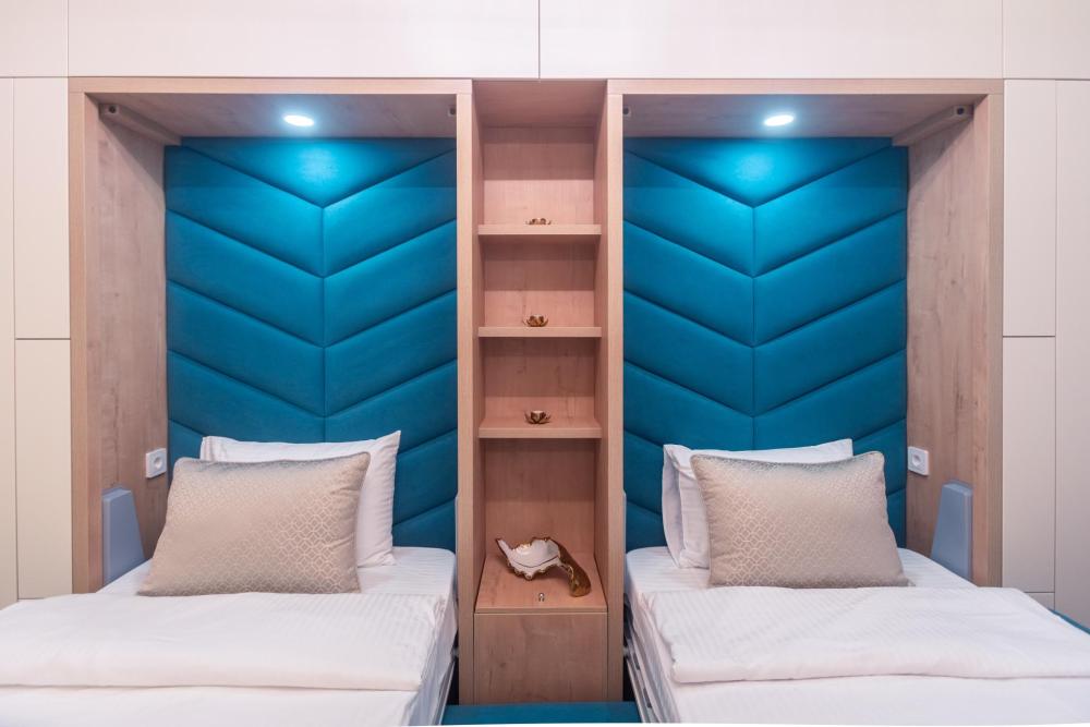 Уютный трехкомнатный апартамент площадью 50 м² с современным дизайном и функциональной планировкой. Апартамент идеально подойдет для семейного отдыха или комфортного размещения компании друзей. С уникальной планировкой и удобствами, он обеспечит вам комфортный и расслабляющий отдых. Этот апартамент — прекрасный выбор для тех, кто ценит функциональность и комфорт. ✔️ Апартамент включает две спальни. В одной из них 2 кровати 140*200, встроенные в стену с механизмом раскладки, что позволяет максимально эффективно использовать пространство. Во второй спальне — просторная общая кровать 220*240. ✔️ Третья комната — кухня, совмещенная с гостиной. ✔️ В апартаменте два санузла с современным оборудованием для удобства гостей. ✔️ Установлены кондиционер и теплые полы, которые обеспечивают комфортную температуру в любое время года. ✔️ Бесплатный Wi-Fi с высокой скоростью (100 Мбит/с). ✔️ Белоснежное постельное белье, махровые полотенца, мягкие халаты и тапочки для вашего удобства и комфорта. ✔️ В наличии средства индивидуальной гигиены для вашего удобства. ✔️ Консьерж-сервис всегда готов помочь: заказать билеты на мероприятия, организовать экскурсии, морские прогулки или трансферы. Апартамент идеально подходит для размещения до 4-х человек. Возможно дополнительное размещение одного ребенка (12-17 лет).