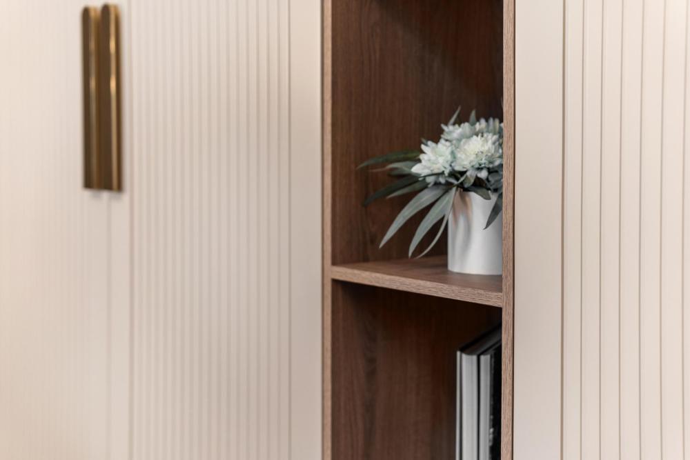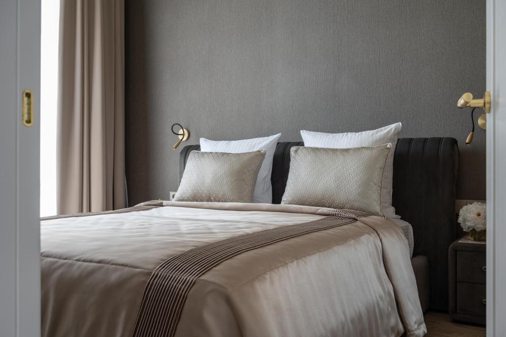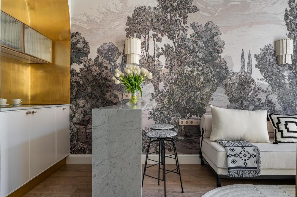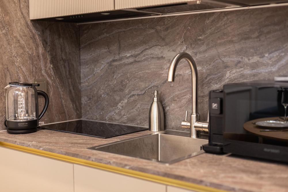Здесь каждое утро начинается с аромата свежесваренного кофе и мягкого золотого света, который наполняет пространство теплом и спокойствием. Апартамент «Шёпот Золота» (44 м²) приглашает вас наслаждаться моментами тишины и уюта, где день разворачивается плавно, а вечер окутывает мягким сиянием и расслаблением. Дизайн апартамента вдохновлён естественной палитрой — золотистыми и песочными оттенками, лёгкими текстурами и мягкими линиями. Свет проникает в каждый угол, отражаясь от тёплых поверхностей и создавая ощущение спокойствия и уединения. Пространство грамотно зонировано: спальная зона отделена декоративной перегородкой, а кухня и гостиная объединены в одну уютную композицию. В вашем распоряжении: ✔️ Удобная кухня со всем необходимым: индукционная плита, встроенный холодильник, чайник, кофемашина, посуда — всё для неспешных завтраков или уютных домашних ужинов; ✔️ Индивидуальный микроклимат — тёплые полы для зимнего уюта и кондиционер для летней свежести; ✔️ Быстрый Wi-Fi (100 Мб) — на случай, если вы захотите ненадолго вернуться к делам; ✔️ Кровать Queen size (160×200 см) с ортопедическим матрасом и текстилем премиум-класса — для глубокого сна и медленных пробуждений; в гостиной — раскладной диван (140×190 см) для гостей или детей; ✔️ Белоснежное постельное бельё, объёмные полотенца, мягкие халаты и тапочки — создают ощущение спа-домашнего уюта; ✔️ Средства личной гигиены, фен, утюг, гладильная доска — всё для вашего комфорта; ✔️ Консьерж-сервис — поможет с организацией трансфера, экскурсий, доставки еды или цветов. «Шёпот Золота» создан для комфортного проживания до 4 гостей. Возможно бесплатное размещение ребёнка до 4 лет без дополнительного спального места.
