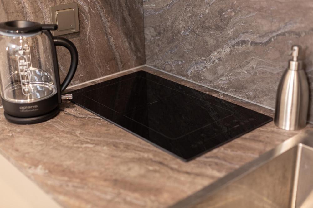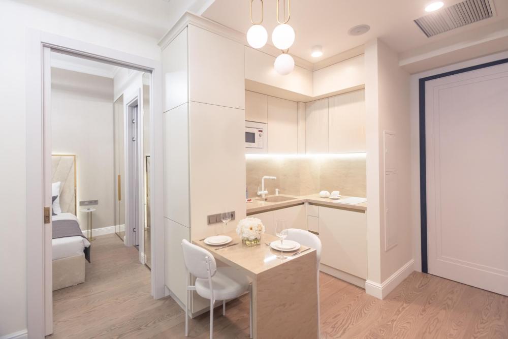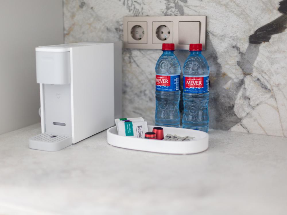 Просторная и комфортабельная студия с террасой площадью 38,8 м² выполнена в современном и эргономичном дизайне, интерьер, оформленный в светлых тонах, создает располагающую к отдыху атмосферу. ✔️В каждой студии есть кухонная зона, электробытовые приборы, вся необходимая посуда, холодильник встроенный однокамерный; ✔️Комфортная температура в помещении поддерживается теплыми полами зимой и кондиционером летом, регулируется индивидуально для Вас; ✔️Wi-fi (100 Мб); ✔️Кровать "Queen size" 180*200 см с ортопедическим матрасом гарантирует здоровый и крепкий сон; ✔️Белоснежное постельное белье, махровые полотенца, мягкие халаты и тапочки; ✔️Средства индивидуальной гигиены; ✔️Консьерж-сервис закажет для Вас билеты на мероприятия, организует морскую прогулку, забронирует яхту, позаботится о доставке и возьмет под свой контроль другие дела, освободив Вам время для отдыха.