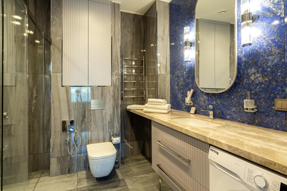 Просторный и стильный двухкомнатный апартамент площадью 60 м² с тремя балконами и великолепным видом на горы. Идеально подходит для тех, кто ищет комфорт и уединение среди природных красот. Это место станет идеальным выбором для пары, небольшой семьи или друзей, ценящих уют и функциональность. Апартамент с продуманной планировкой и современными удобствами обеспечит вам расслабляющий и незабываемый отдых. ✔️ Апартамент включает две отдельные комнаты, каждая из которых оснащена своим сан узлом: Гостиная с удобным диваном, который трансформируется в два спальных места, идеально подходящий для комфортного отдыха или общения. Спальня с большой кроватью, где вы сможете насладиться полным комфортом и уединением. ✔️ Просторная ванная комната с современным оборудованием для вашего удобства. ✔️ Апартамент оснащен кондиционером и системой теплых полов, которые создают комфортную атмосферу в любое время года. ✔️ Бесплатный Wi-Fi с высокой скоростью (100 Мбит/с) для работы и отдыха. ✔️ Качественное белоснежное постельное белье, мягкие махровые полотенца, халаты и тапочки — все для вашего максимального комфорта. ✔️ Средства индивидуальной гигиены для вашего удобства. ✔️ Консьерж-сервис, который с радостью поможет вам организовать экскурсии, трансферы или другие мероприятия по вашему запросу. Апартамент идеально подходит для размещения до 4 человек.
