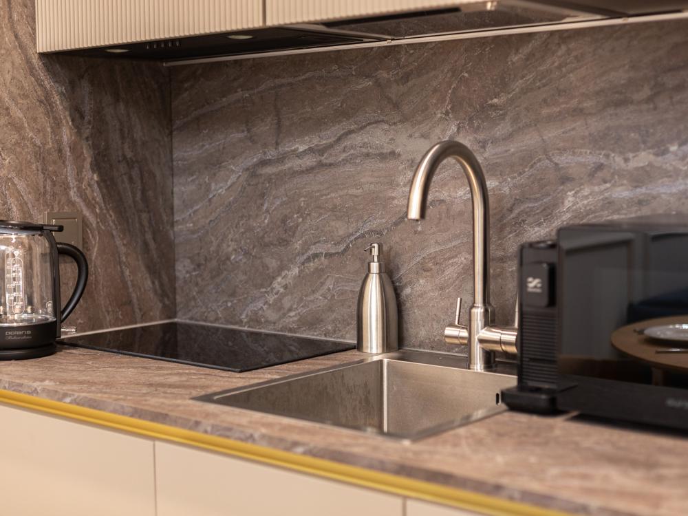 «Лазурная гладь» — это двухкомнатный апартамент, где элегантность встречается с уютом, а каждый день наполнен мягким светом и ощущением спокойствия. Вас ждёт продуманное пространство площадью 35 м², созданное для тех, кто ценит стиль, гармонию и комфорт в каждой детали. Апартамент расположен на первом этаже и включает отдельную спальню и уютную зону отдыха. Интересный акцент в интерьере — зебровый пуф, добавляющий пространству выразительность и характер. В спальне напротив кровати расположено крупное зеркало, визуально расширяющее комнату и создающее атмосферу лёгкости и света. Ванная комната отделана натуральным лазуритом — редким камнем, который превращает утренние и вечерние ритуалы в настоящий эстетический опыт. Каждая деталь здесь работает на ваше удовольствие и полное расслабление. Особенно комфортными отдых в апартаменте «Лазурная гладь» делают: ✔️ Функциональная кухня с современной бытовой техникой и всем необходимым для приготовления блюд — готовьте с удовольствием; ✔️ Отдельная спальная комната с комфортной кроватью и большим зеркалом — идеальное место для отдыха; ✔️ Индивидуальный климат-контроль: тёплые полы в прохладное время года и кондиционер летом — идеальная температура круглый год; ✔️ Стабильный Wi-Fi до 100 Мб/с — для работы, общения и развлечений; ✔️ Качественное постельное бельё, мягкие полотенца, халаты и тапочки — детали, которые создают атмосферу заботы; ✔️ Набор средств индивидуальной гигиены — всё необходимое уже на месте; ✔️ Консьерж-сервис — поможет организовать досуг, трансфер или решить бытовые вопросы, чтобы вы могли полностью расслабиться. Апартамент рассчитан на размещение до четырёх гостей. Дополнительно возможно проживание одного ребёнка до 4 лет (без предоставления отдельного спального места).