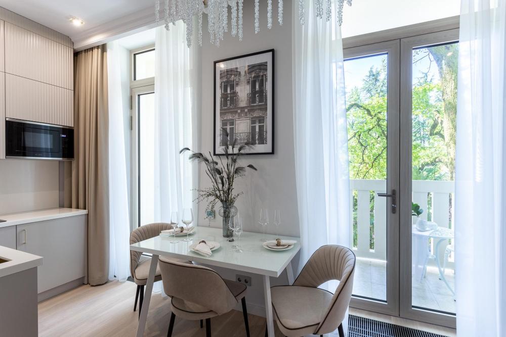 Просторный апартамент с балконом и великолепным видом на парк, площадью 62 м² разделён функциональной декоративной перегородкой, отделяющей спальную зону с двуспальной кроватью от гостиной с обеденной зоной, диваном с зоной отдыха и отдельным санузлом. ✔️В каждом апартаменте есть кухонная зона, электробытовые приборы, вся необходимая посуда, холодильник встроенный полноразмерный; ✔️Комфортная температура в помещении поддерживается теплыми полами зимой и кондиционером летом, регулируется индивидуально для Вас; ✔️Wi-fi (100 Мб); ✔️Кровать "King size" 180*200 см с ортопедическим матрасом гарантирует здоровый и крепкий сон. В гостиной раскладной диван (спальное место 150*200 см); ✔️Белоснежное постельное белье, махровые полотенца, мягкие халаты и тапочки; ✔️Средства индивидуальной гигиены; ✔️Консьерж-сервис закажет для Вас билеты на мероприятия, организует морскую прогулку, забронирует яхту, позаботится о доставке и возьмет под свой контроль другие дела, освободив Вам время для отдыха. Апартамент рассчитан на четверых Гостей + дополнительно возможно разместить 1 ребёнка (0-4 лет), без предоставления спального места.