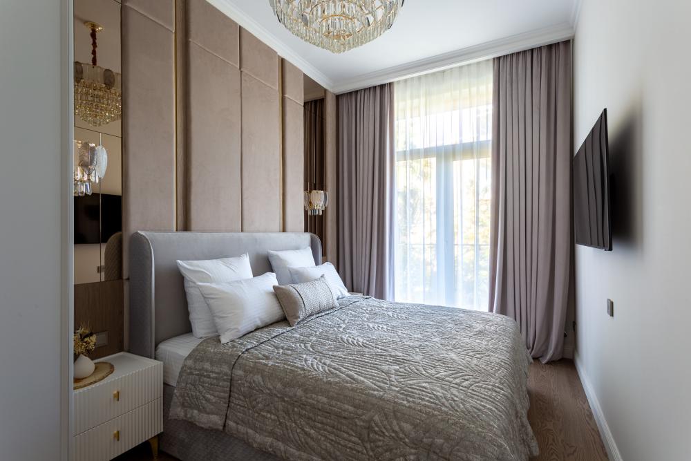 Комфортабельная и уютная студия, расположена на цокольном этаже и не имеет видовых характеристик. Просторная и комфортабельная студия выполнена в современном и эргономичном дизайне, интерьер, оформленный в светлых тонах, создает располагающую к отдыху атмосферу. В апартаменте одна кровать "Queen size" 160 см*200 см.