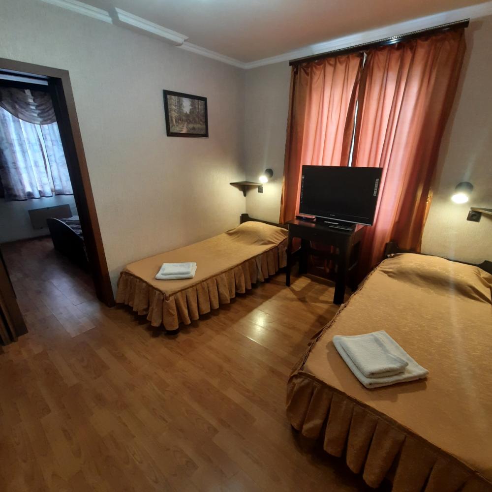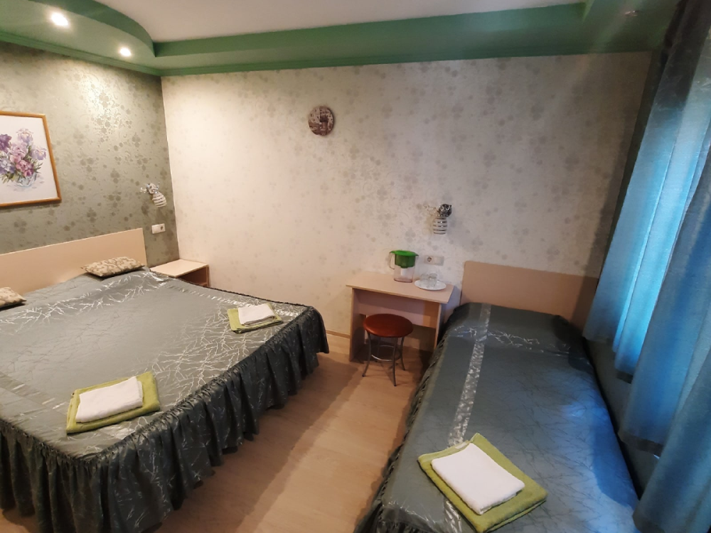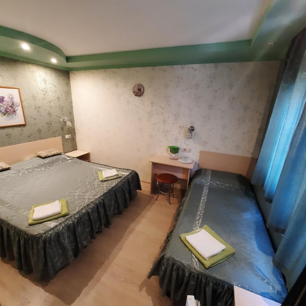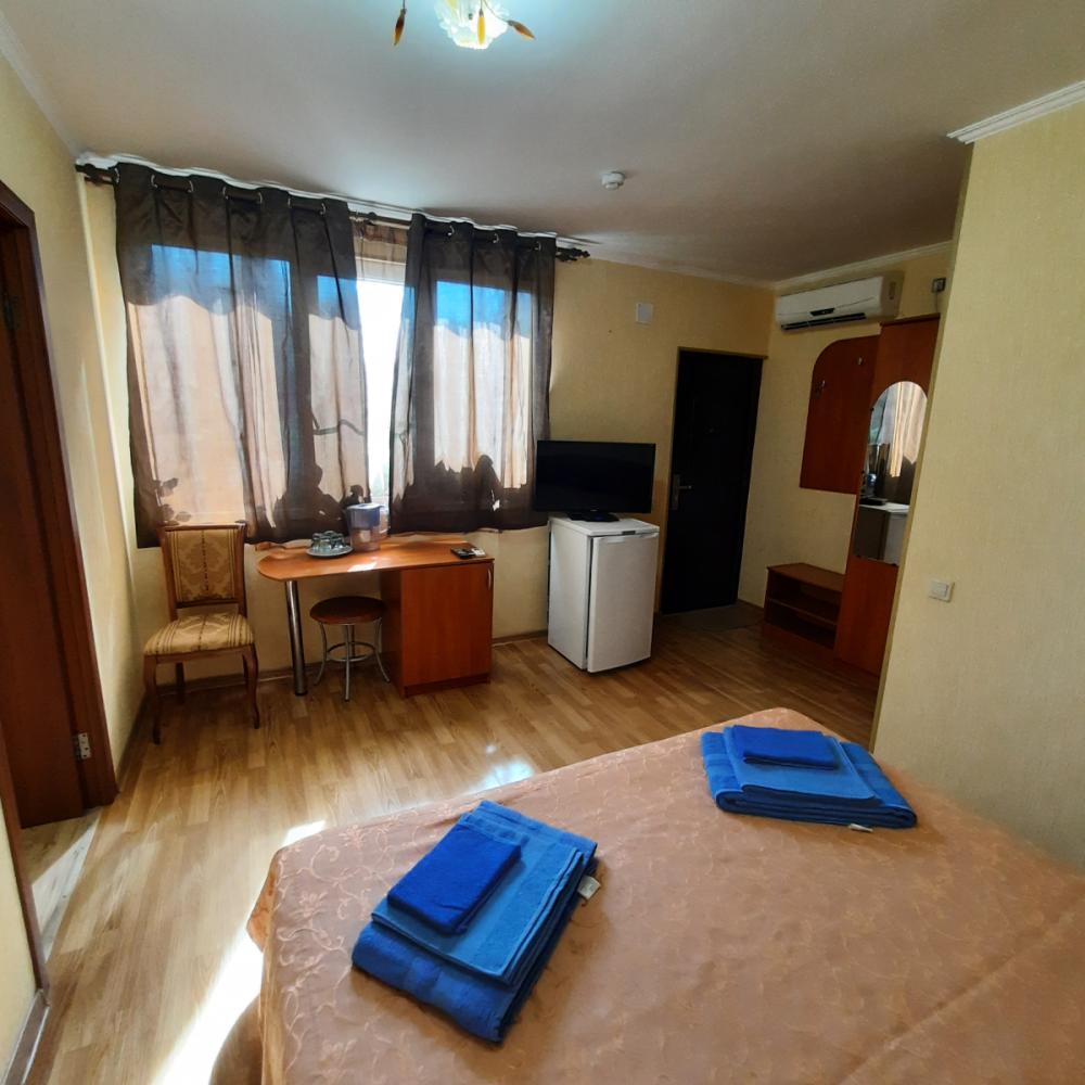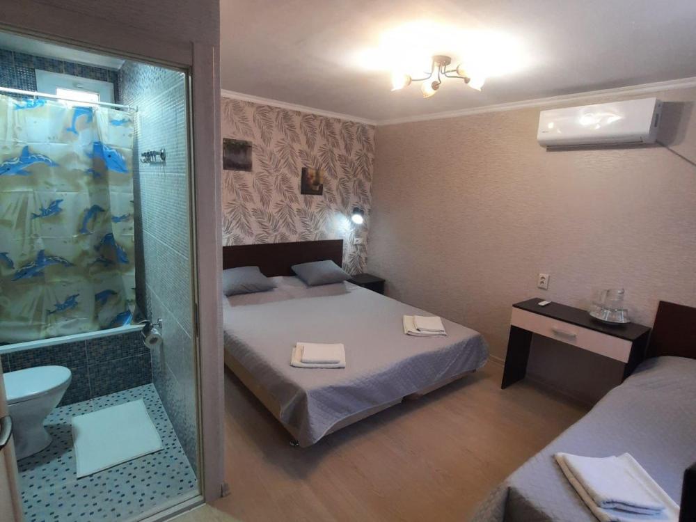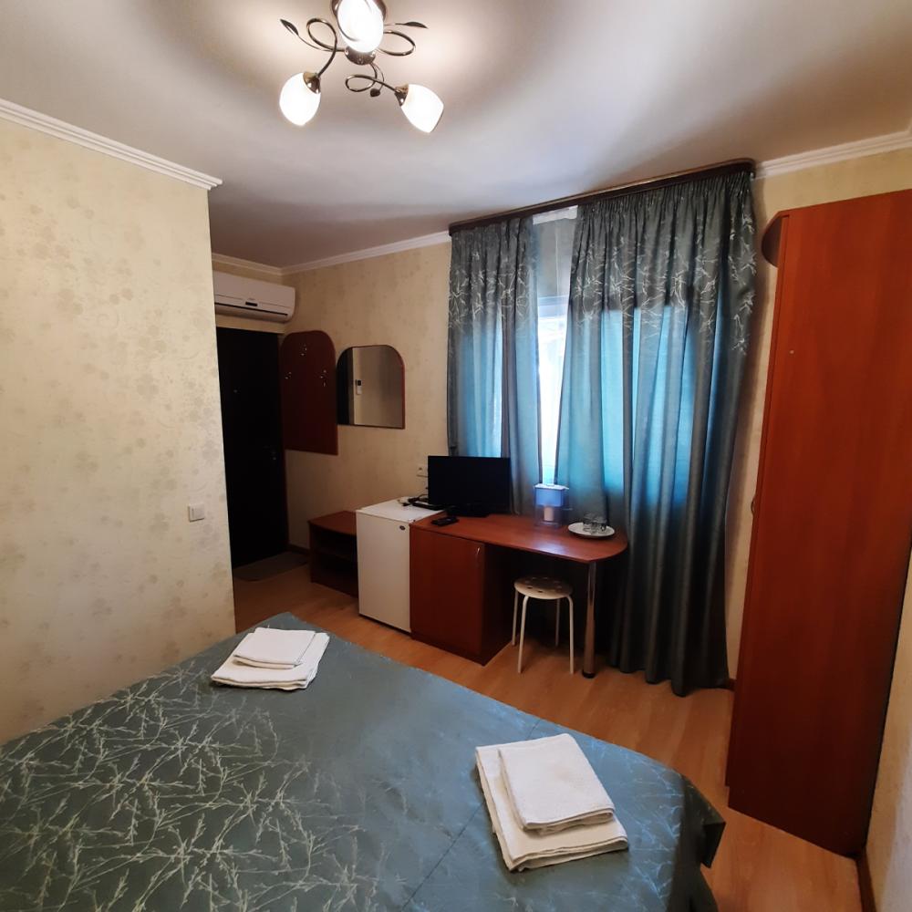 Стандартный трехместный номер площадью 16 м² — идеальный выбор для комфортного размещения семьи или компании друзей. В домике есть 3 односпальные кровати, которые можно расположить как вместе, так и раздельно. Домик оборудован душем, раковиной, туалетом. Есть телевизор и холодильник. Постельное белье, полотенца и гигиенические принадлежности предоставляются. Для пользования доступна общая летняя кухня для самостоятельного приготовления пищи.