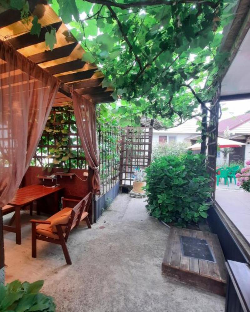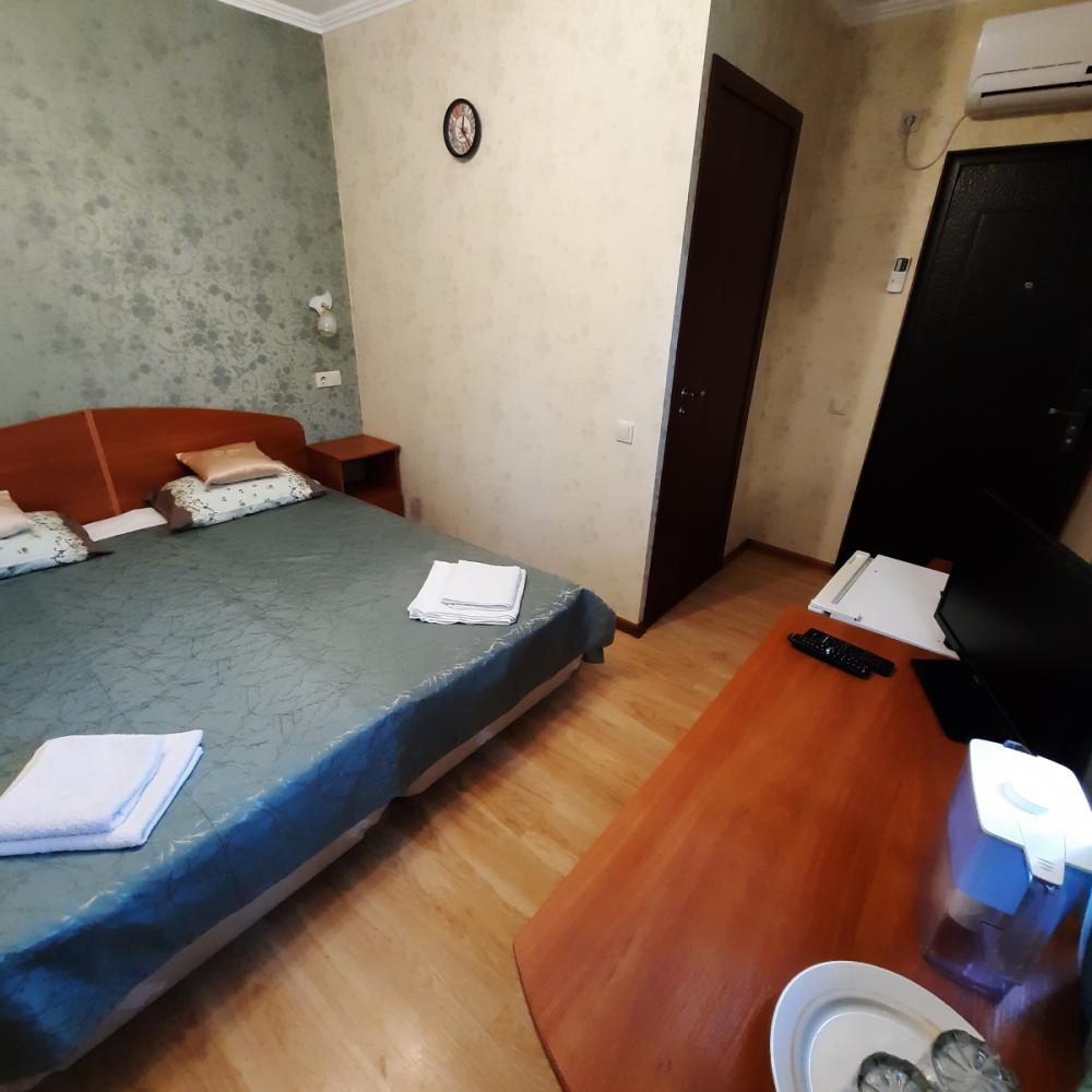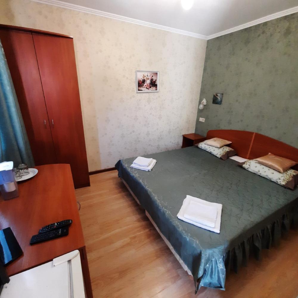 Стандартный двухместный номер площадью 12 м² — идеально подойдёт для комфортного проживания пары. В домике есть две односпальные кровати, которые можно расположить как вместе, так и отдельно. Домик оборудован душем, раковиной, туалетом. Есть телевизор и холодильник. Постельное белье, полотенца и гигиенические принадлежности предоставляются. Для пользования доступна общая летняя кухня для самостоятельного приготовления пищи.