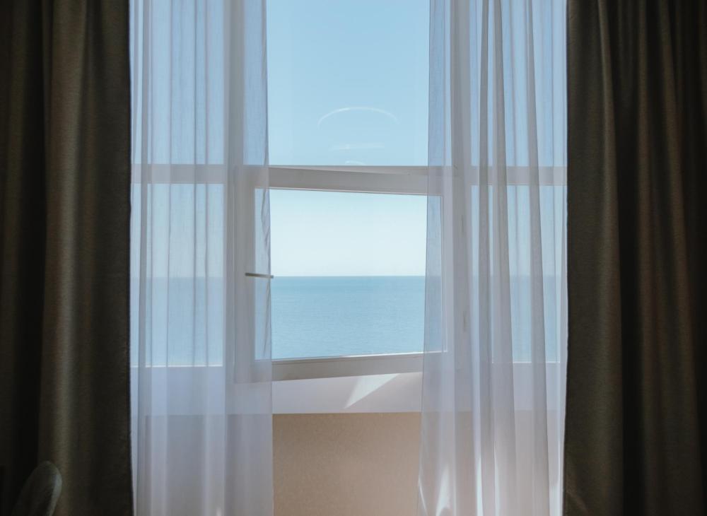 Большая двуспальная кровать, кресло-кровать Ванная, телевизор, сплит-система, холодильник, принадлежности для душа, фен Окна в пол, панорамный вид на море
