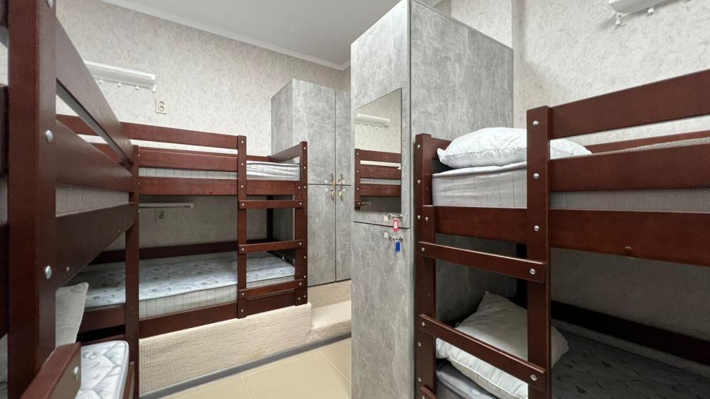 Нижнее койко-место в шестиместном общем номере с тремя двухъярусными кроватями. Предоставляется постельное белье и полотенца. Общие удобства на этаже.