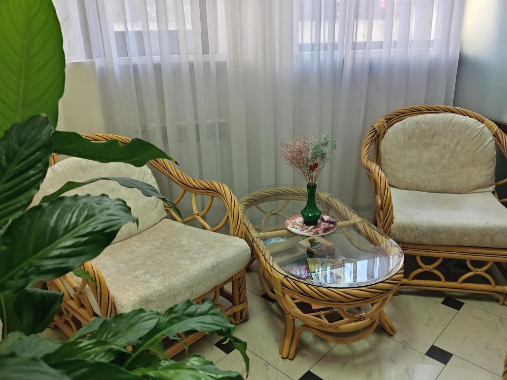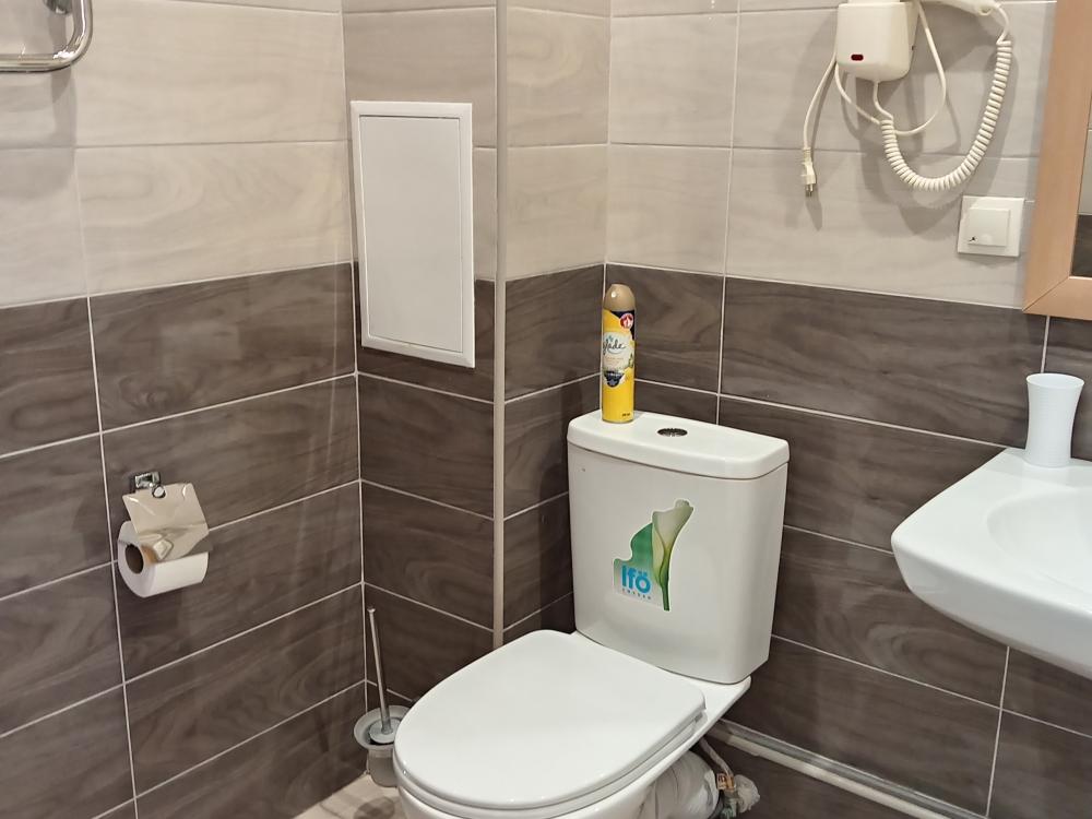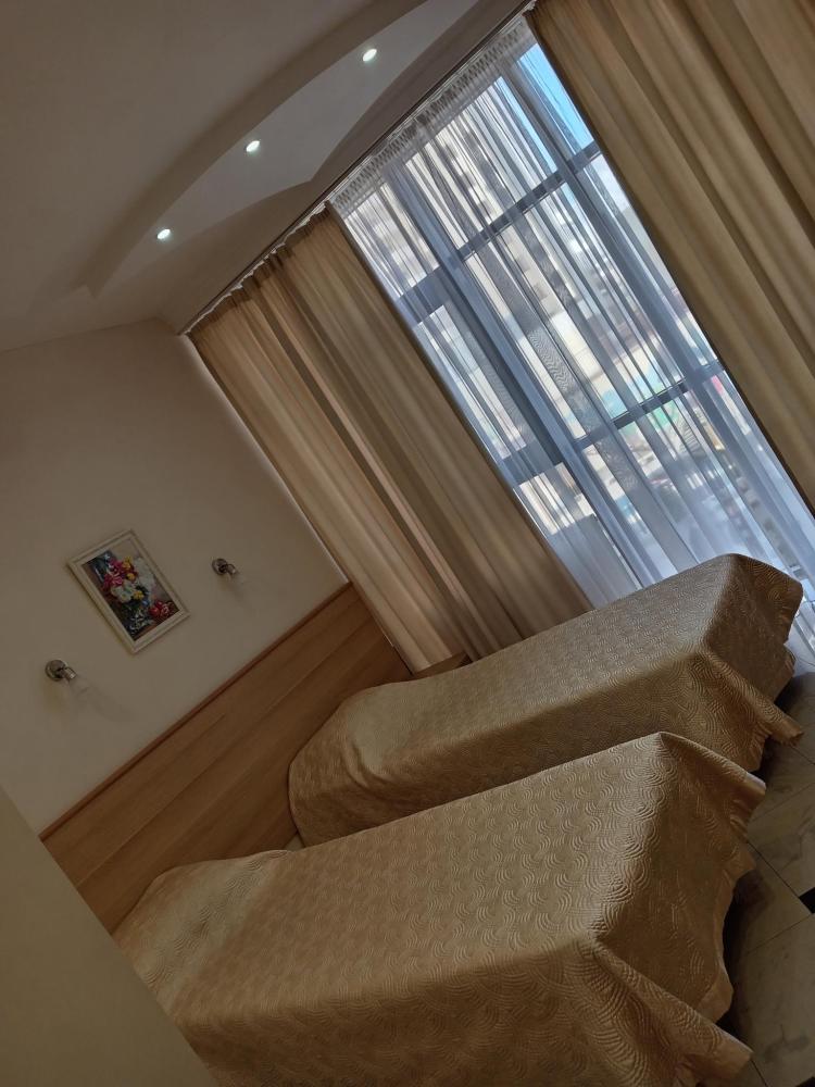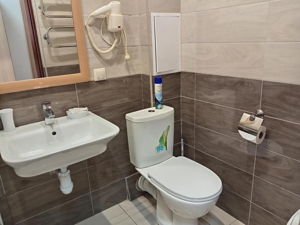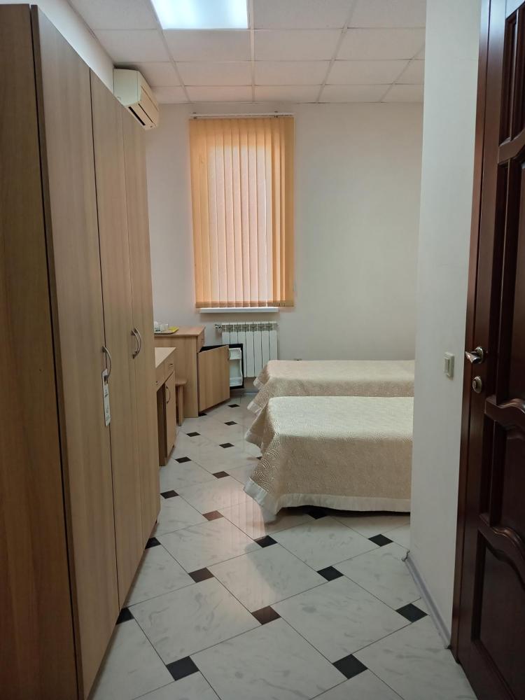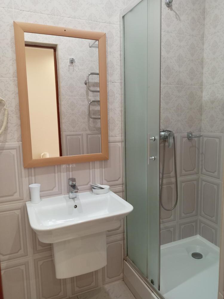 В номере есть 2 односпальные кровати, а также диван, который может служить дополнительным местом. Количество номеров-1 номер. Номер площадью 20 кв.м. Подходит для размещения двух или трех гостей. Номера в гостинице оформлены в светлых тонах, оснащены новой мебелью: 2 односпальные кровати, размер 90*200, прикроватные тумбочки, туалетный столик, письменный стол, шкаф, зеркало, светильники. Все номера имеют кондиционер, чайник, холодильник и телевизор с плоским экраном, транслирующий спутниковые каналы. Ванная комната укомплектована феном и набором туалетных принадлежностей. В распоряжении гостей всех номеров собственная ванная и санузел. В номерах предусмотрена система противопожарной безопасности.