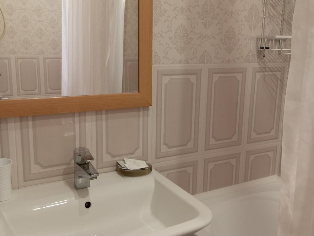 Номера площадью 16-19 кв.м. Подходит для размещения двух гостей. Номера данной категории в гостинице оформлены в светлых тонах, оснащены новой мебелью: кровати односпальные, размер 90*200, прикроватные тумбочки, туалетный столик, письменный стол, шкаф, зеркало, светильники. Все номера имеют кондиционер, чайник, холодильник и телевизор с плоским экраном, транслирующий спутниковые каналы. Ванная комната укомплектована феном и набором туалетных принадлежностей. В распоряжении гостей всех номеров собственная ванная комната с санузлом и ванной. В номерах предусмотрена система противопожарной безопасности