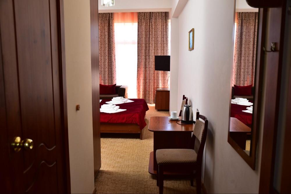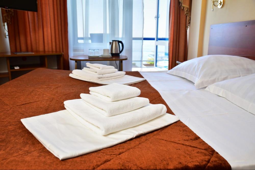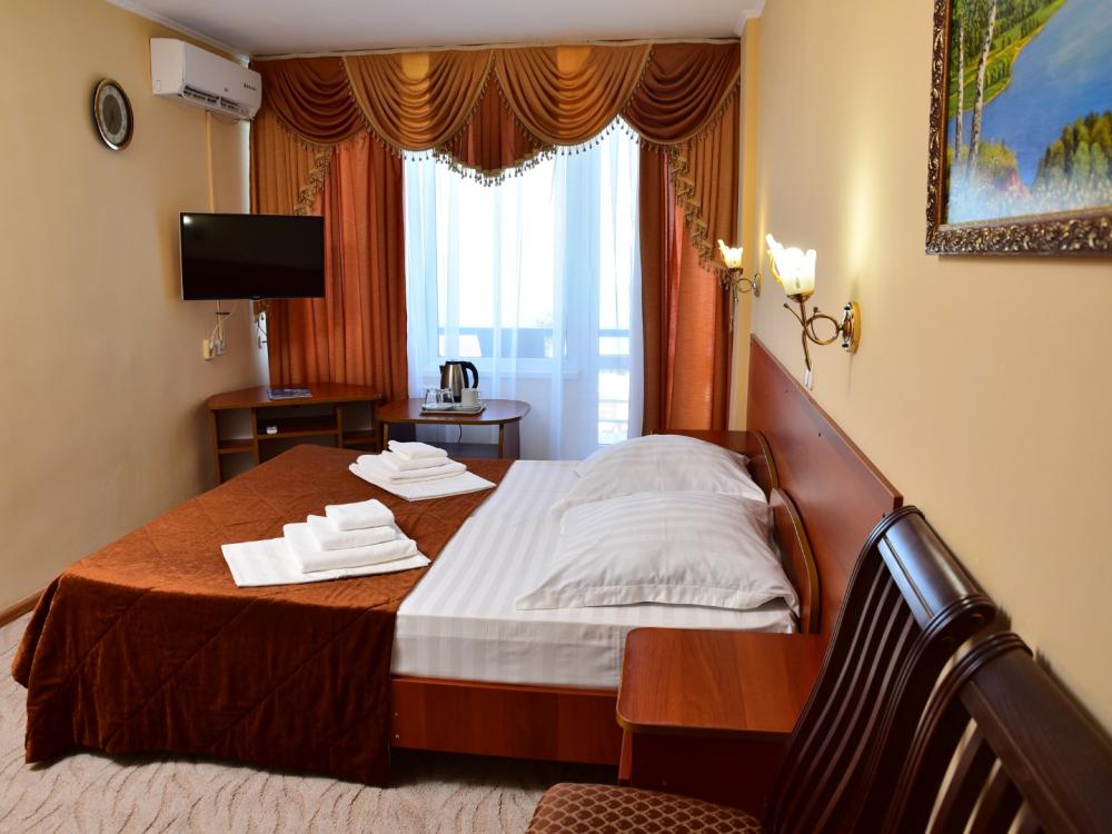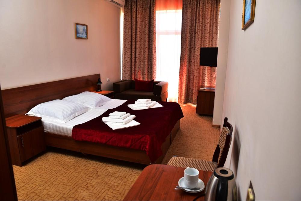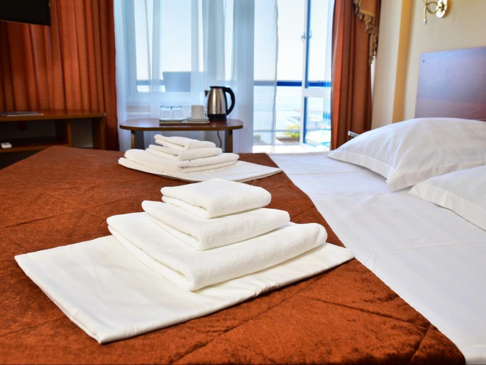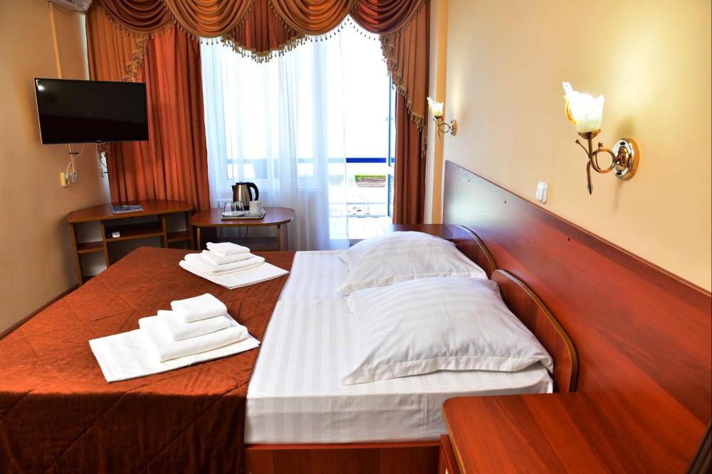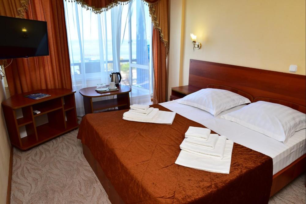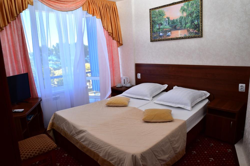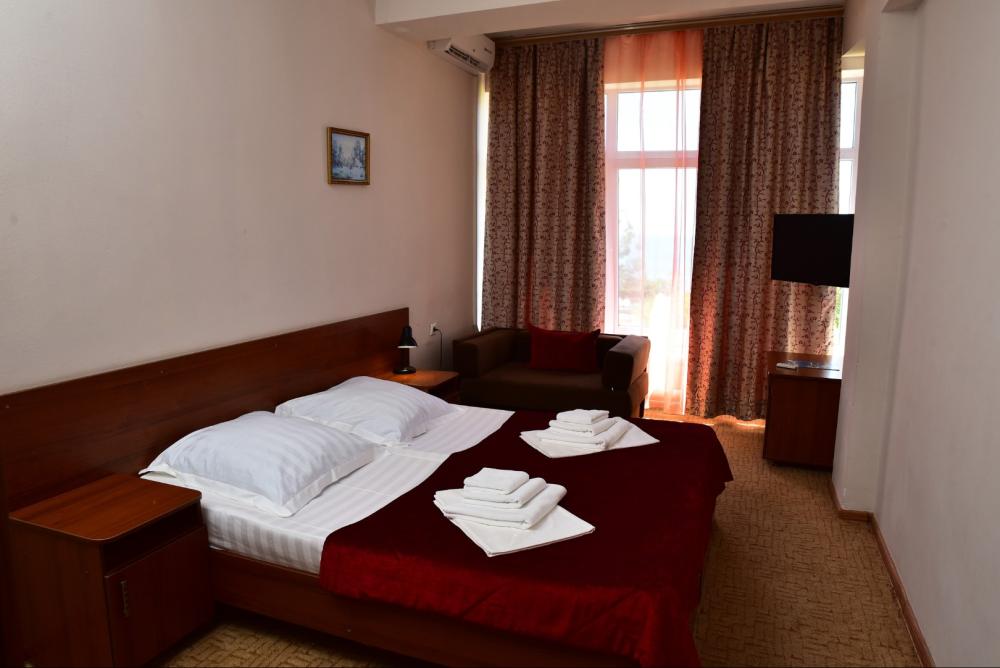 Однокомнатные двухместные номера оборудованы телевизором, кондиционером, холодильником, мебелью, санузлом (ванна/душ). В номере предусмотрено дополнительное место (раскладное кресло кровать). Номер с видом на море.