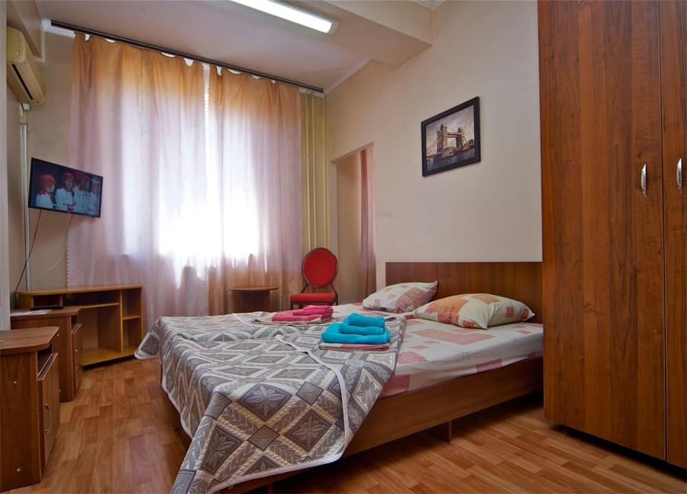 Однокомнатные 2-х местные номера оборудованы телевизором, холодильником, кондиционером или вентилятором, умывальником. Санузел/душ на этаже. Номера с видом в сторону моря или в сторону Дендрария.