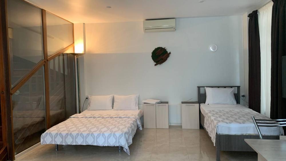 рехэтажный коттедж в тихом и благоустроенном районе в центре Сочи. В распоряжении гостей : бесплатный WI-FI, два парковочных места в собственном дворе, охраняемый огороженный двор. На территории дома есть огороженная территория, мангал, фруктовый сад, беседка, терасса (веранда). В доме 3 комнаты, из них 3 спальни. Дом вмещает до 7 гостей. Площадь 122 кв. м. В доме есть двуспальная кровать, односпальная кровать, диван (2 места), раскладушка (1 место), кроватка для ребенка, постельные принадлежности утюг, телевизор, жк-телевизор, обогреватель, гладильная доска, кабельное тв, кондиционер интернет wi-fi, балкон. На комфортной кухне есть электроплита, столовые приборы, набор посуды, электрочайник, микроволновая печь, холодильник. В ванной есть сушилка для белья, теплый пол, фен, стиральная машинка, душевая кабина, полотенца