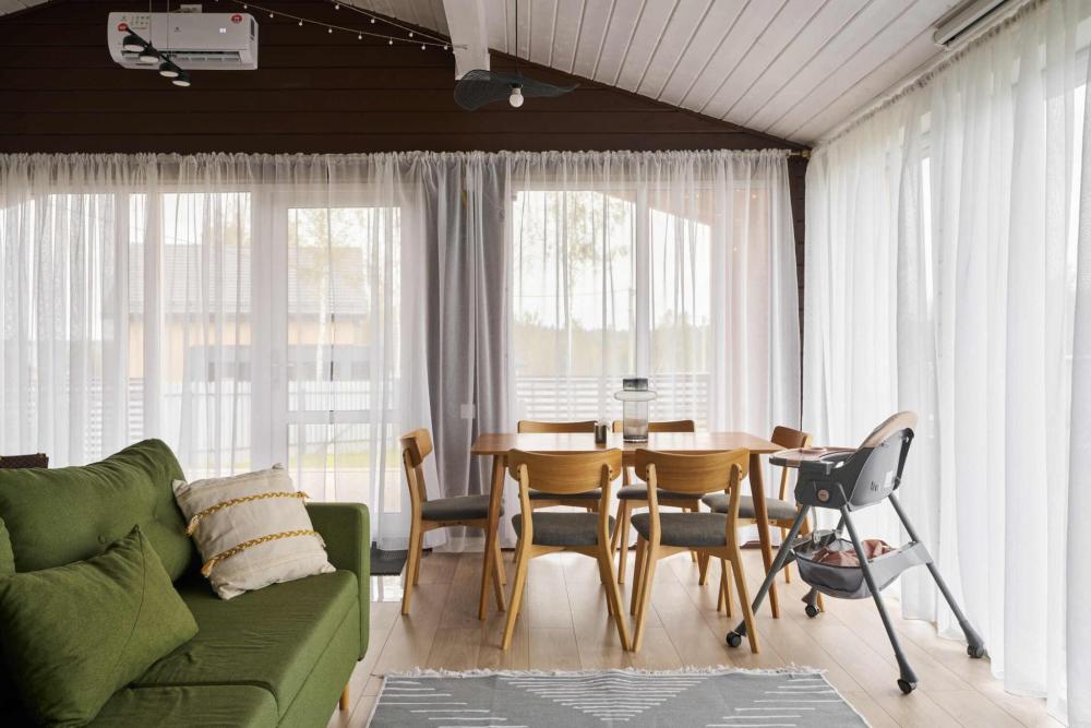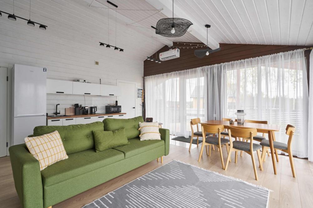 В доме:2 спальни с кроватями 160×200.Детская комната с 1,5-спальным диваном. Просторная кухня-гостиная с диваном-кроватью.Проектор для уютных зимних вечеров. Санузел.Большая терраса с мебелью. Свежие полотенца и постельное бельё, посуда, техника, базовые принадлежности. Тёплый свет, чистота и комфорт — идеально для тех, кто хочет тишины, уюта и настоящего отдыха.